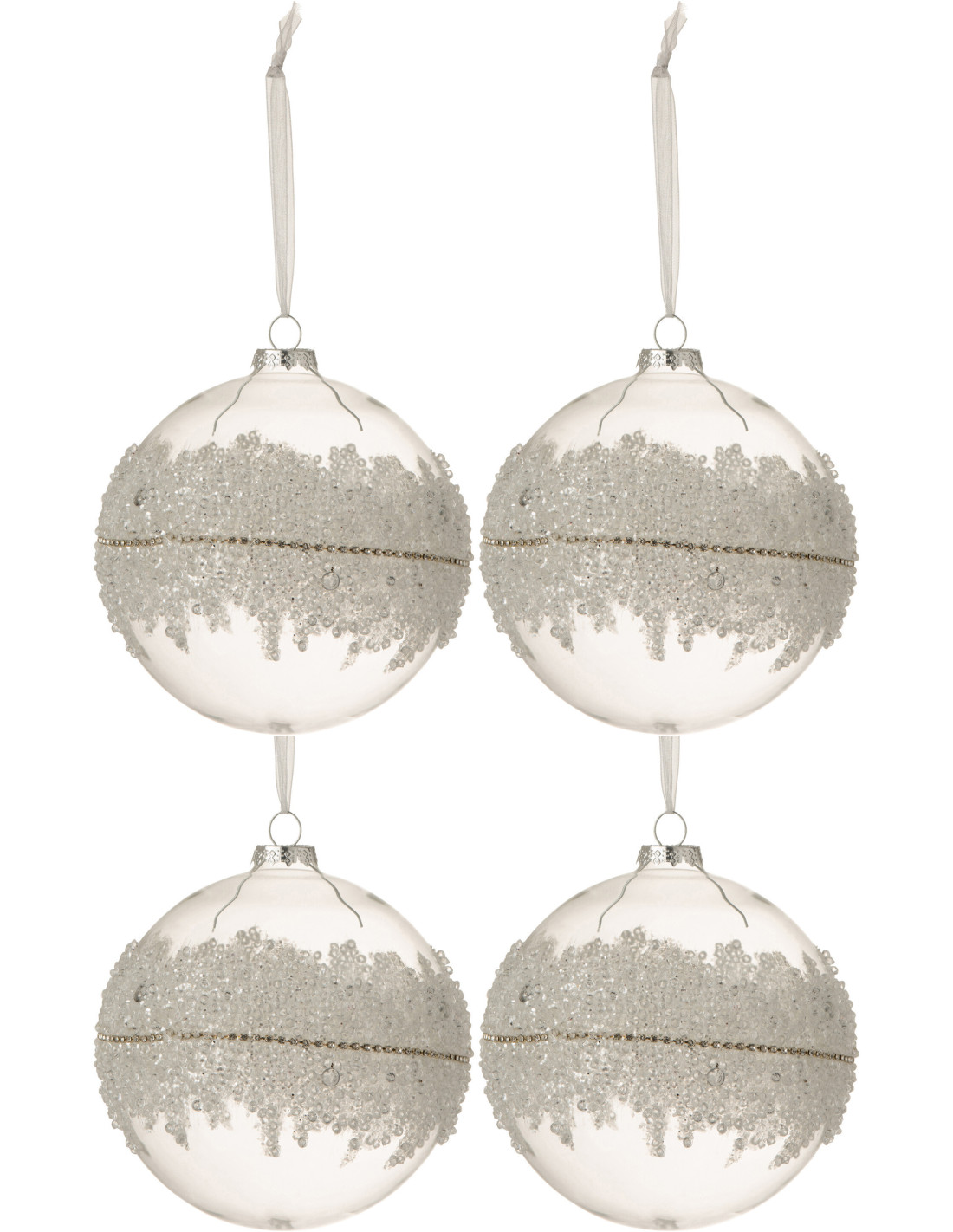 Boule de Noël XL en Verre Transparent Motif givré (Lot de 4)