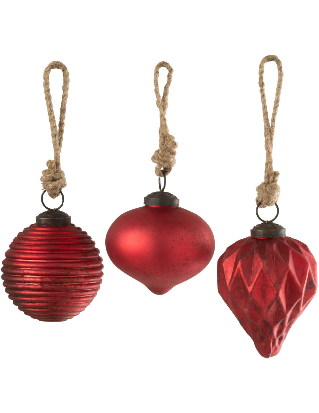 Boules de Noël vintage 7 cm en Verre Rouge Oxydé Obscyra (Lot de 3)