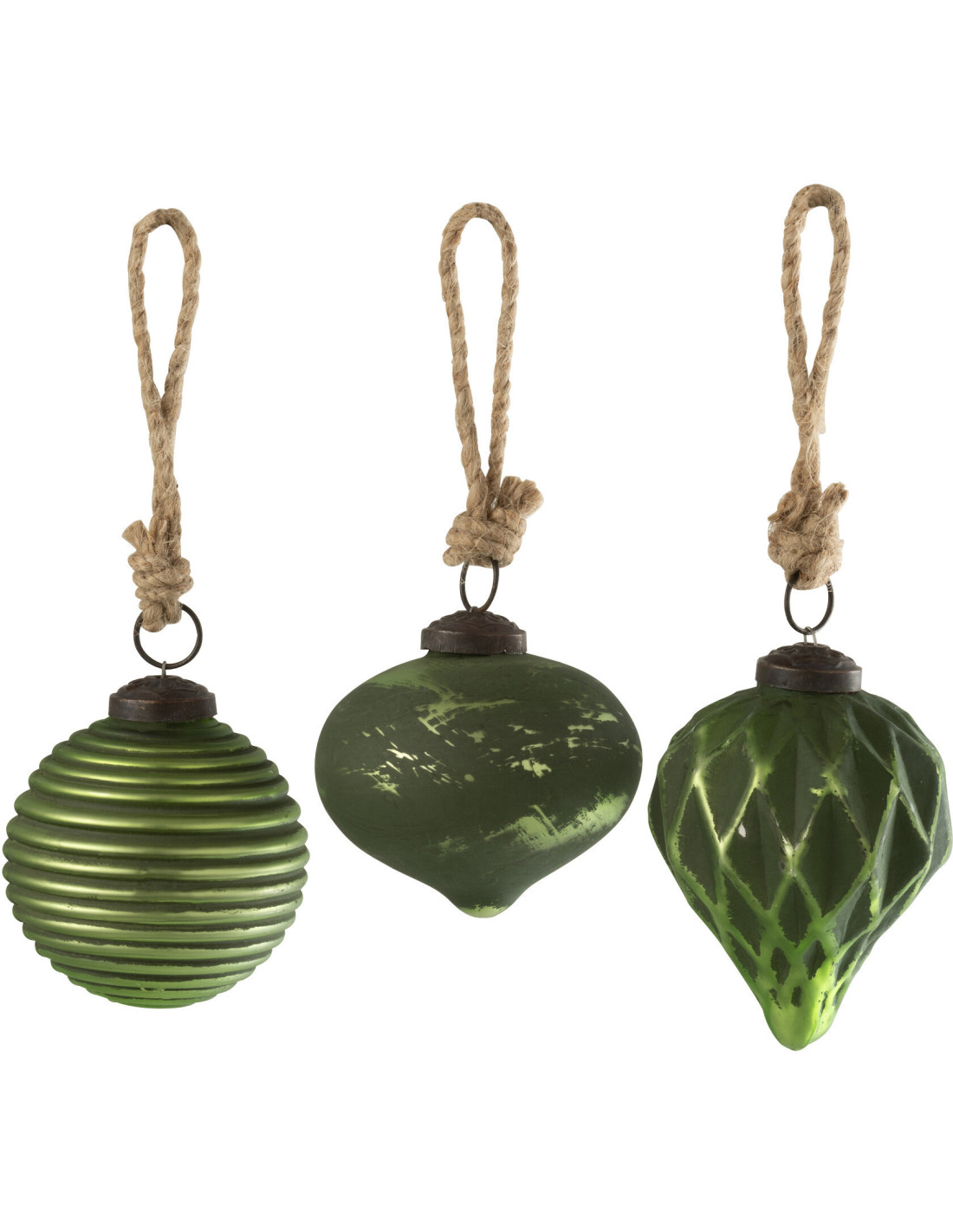 Boules de Noël vintage 7 cm en Verre Vert Oxydé Obscyra (Lot de 3)