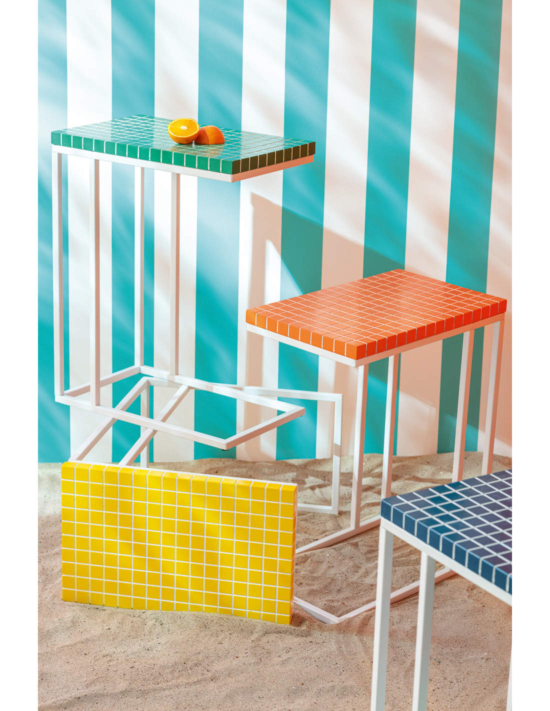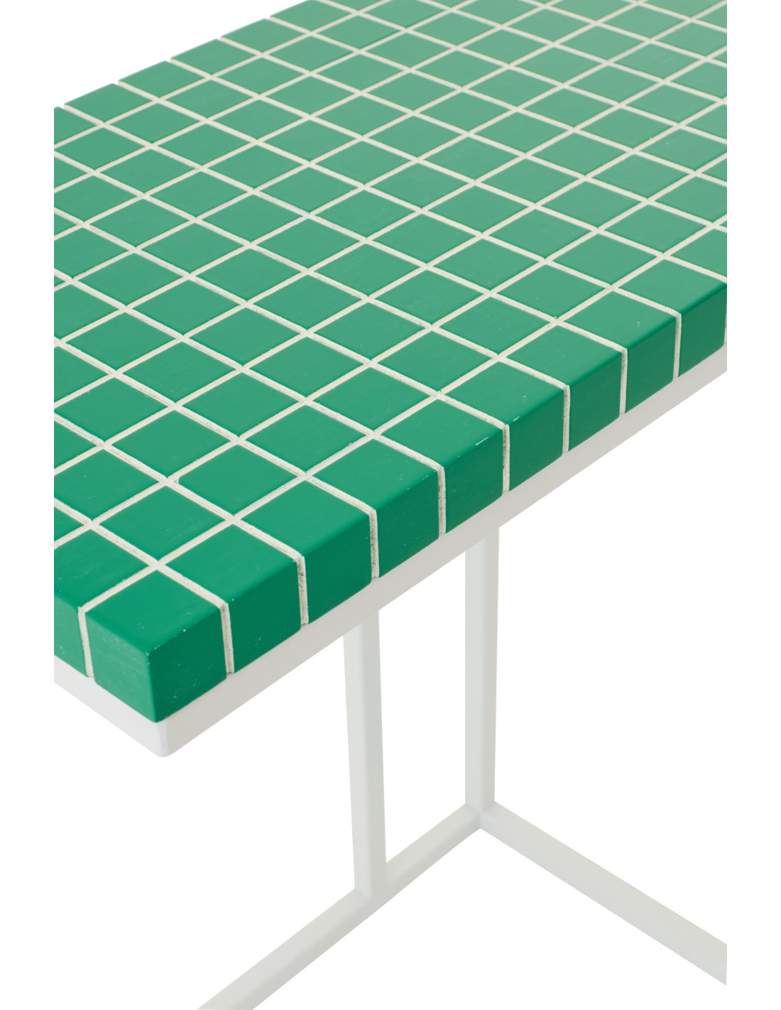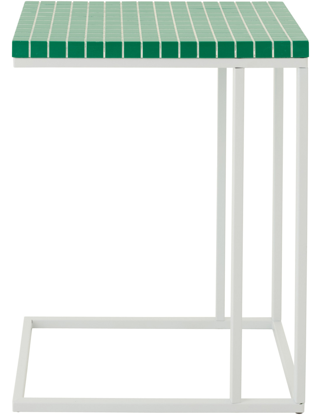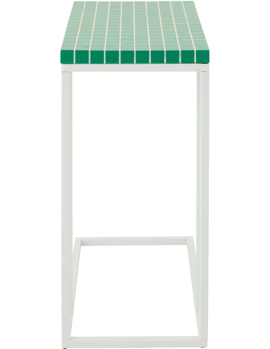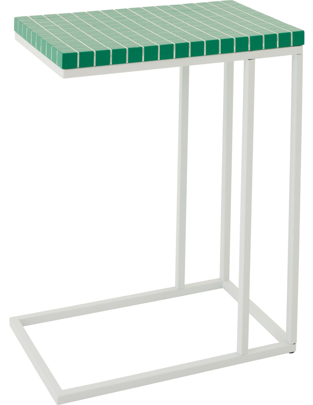Bout de canapé design bord de mer Rectangulaire 47 cm Métal Bois MDF Vert Blanc Motif carreaux