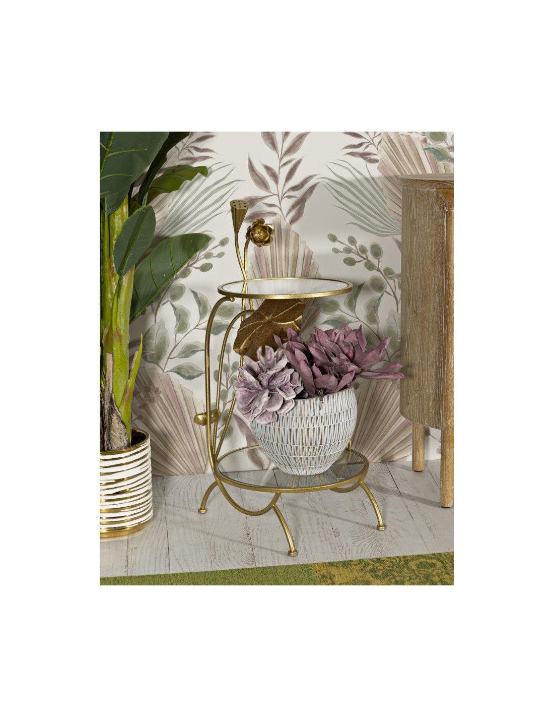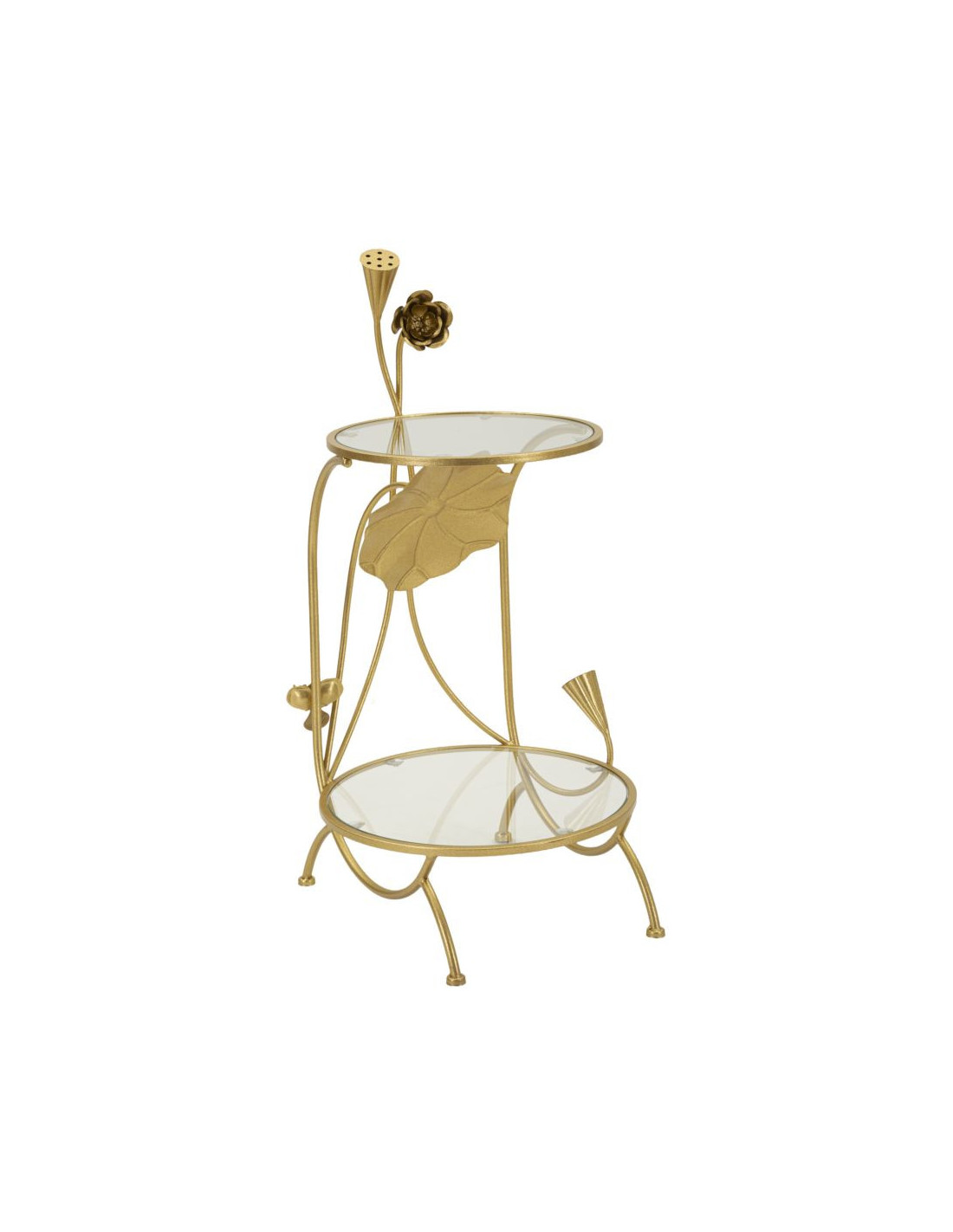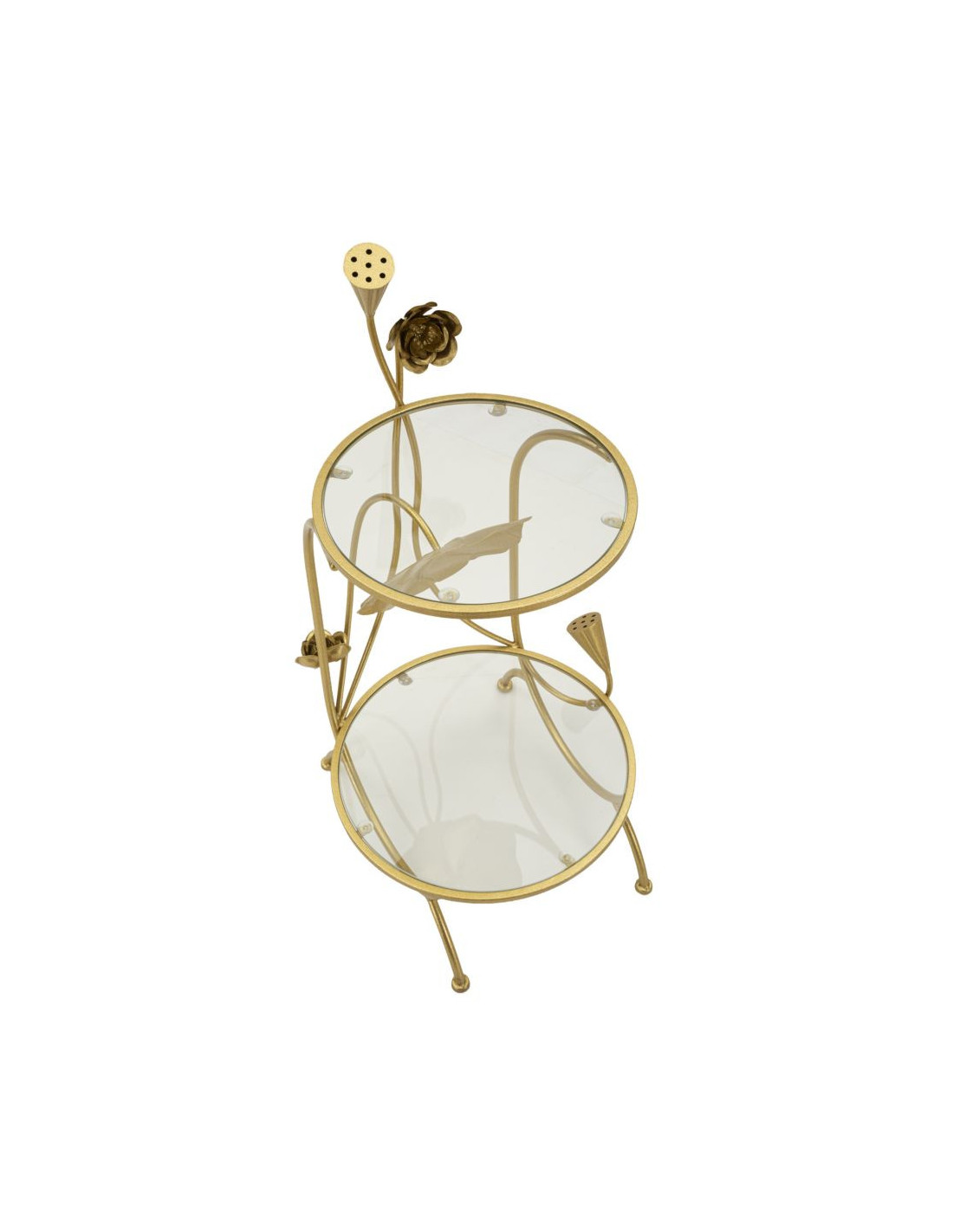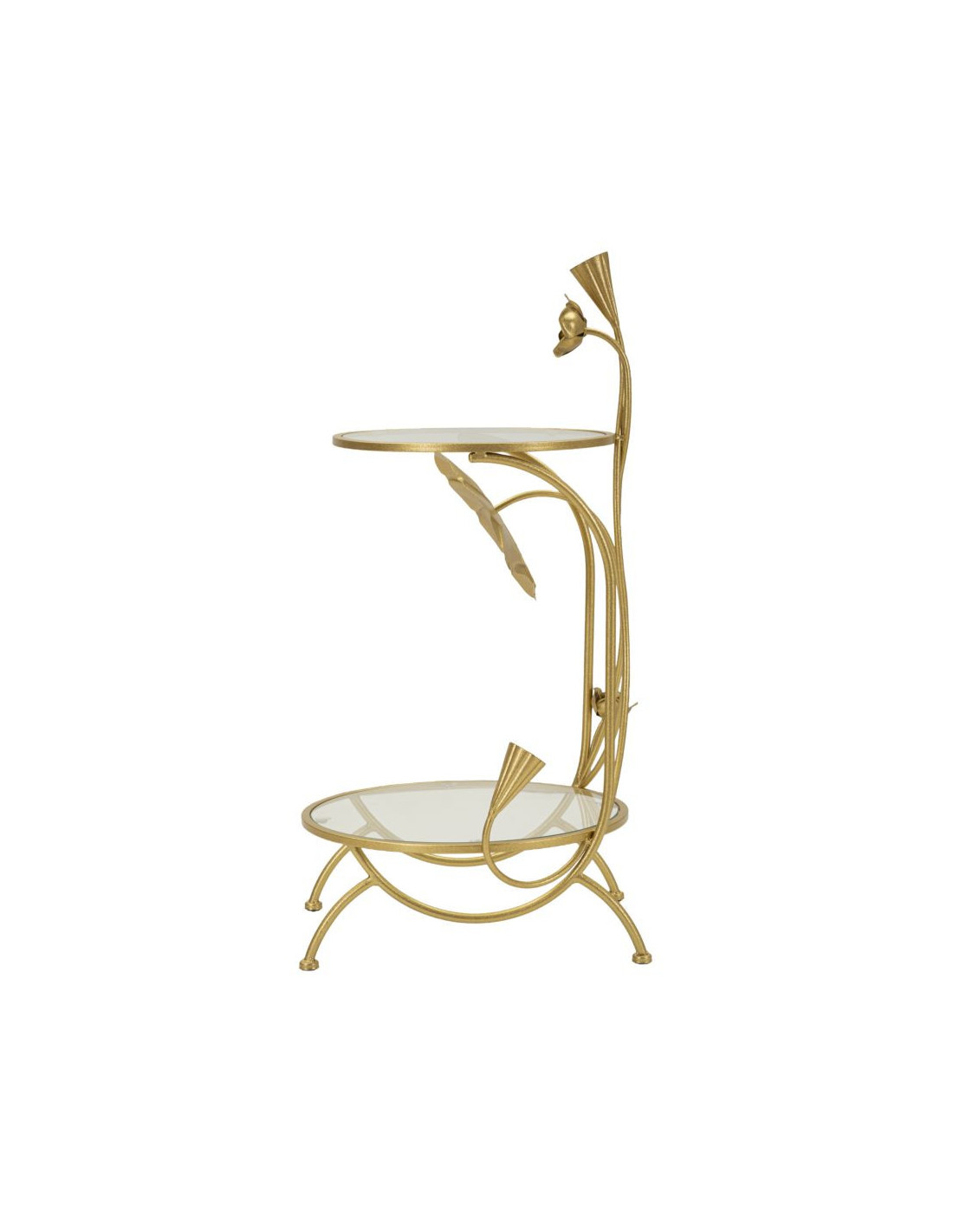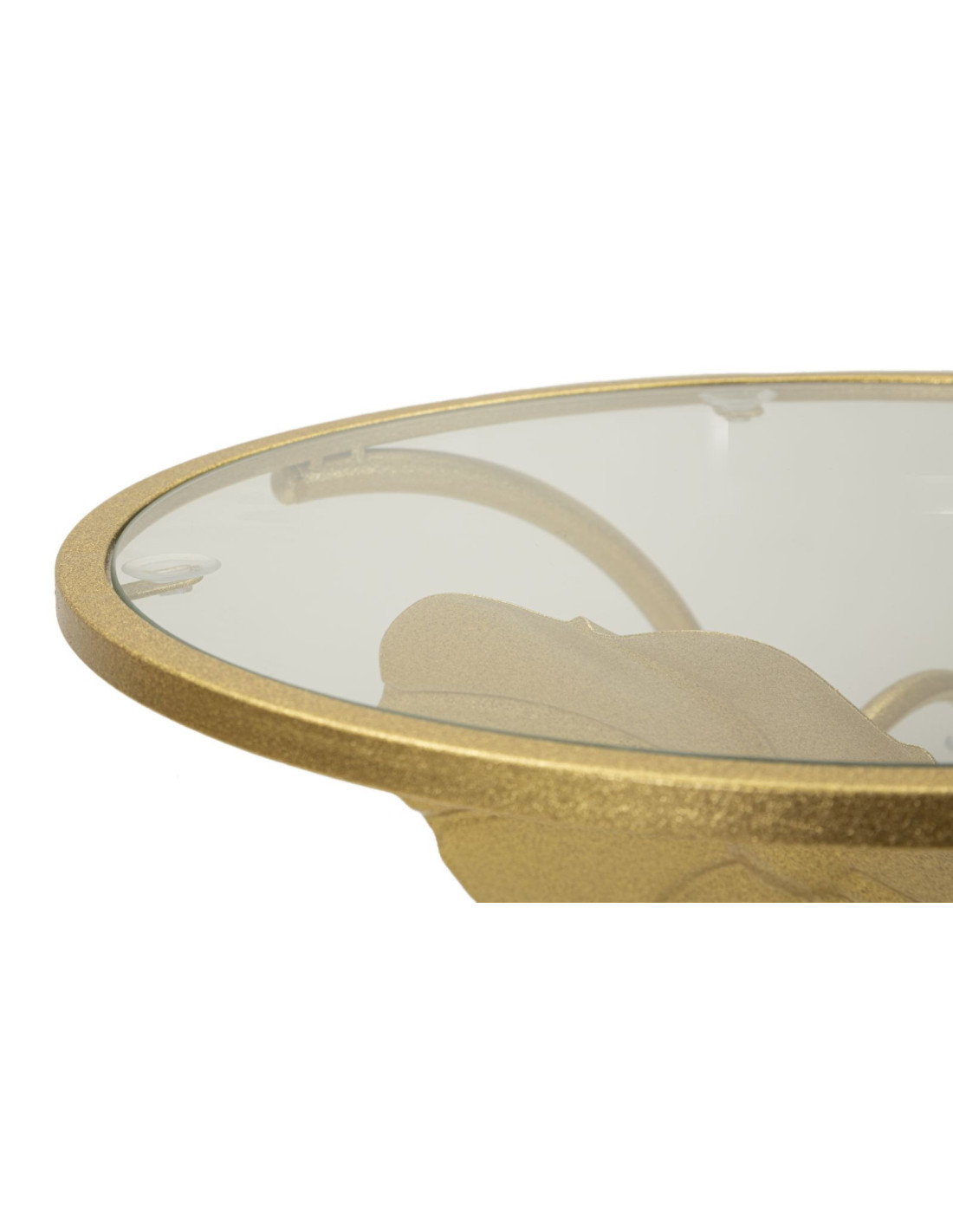 Bout de canapé moderne Rond en Métal Doré Verre Bois Effet marbre Sofy