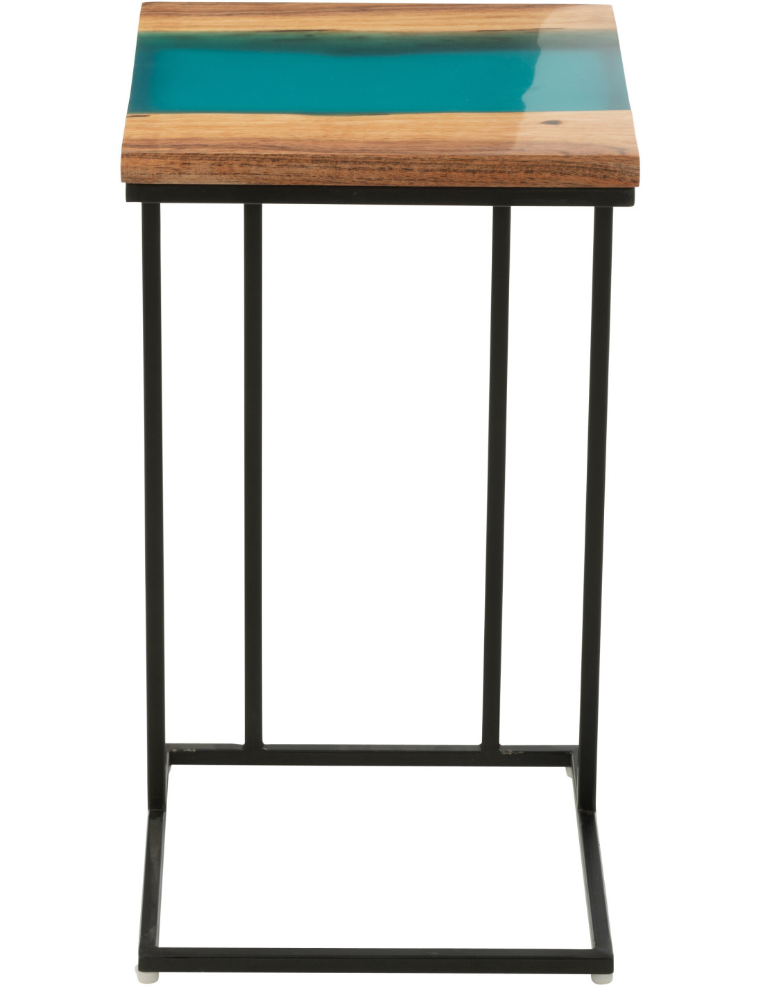 Bout de canapé original Carré en Bois d'acacia Naturel Résine Noir Métal Noir Noaïra