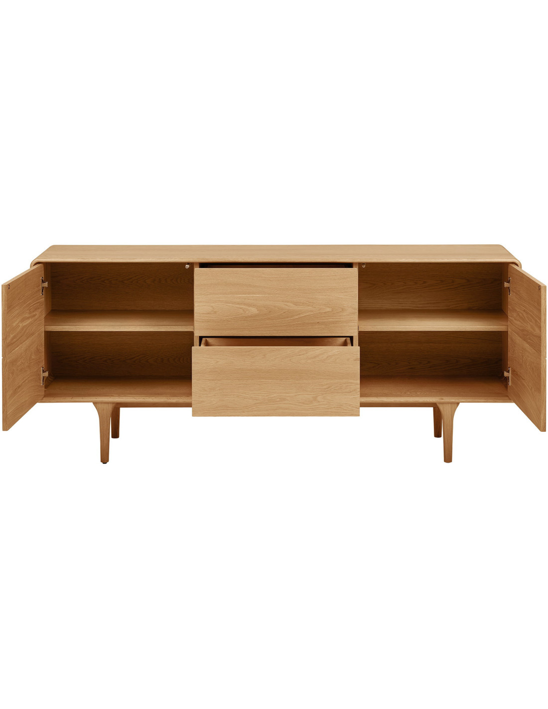 Le buffet Darwin se distingue par sa configuration intelligente. Les deux tiroirs centraux permettent de ranger les petits objets du quotidien avec facilité. Les portes situées aux extrémités offrent un espace plus vaste pour accueillir vaisselle, linge ou accessoires. Cette organisation rend chaque usage fluide. Elle évite le désordre. Elle facilite l'accès aux objets. Elle optimise le rangement. Elle s'adapte à vos habitudes. Elle structure votre intérieur. Elle simplifie votre quotidien. Elle apporte une vraie logique d'usage.
