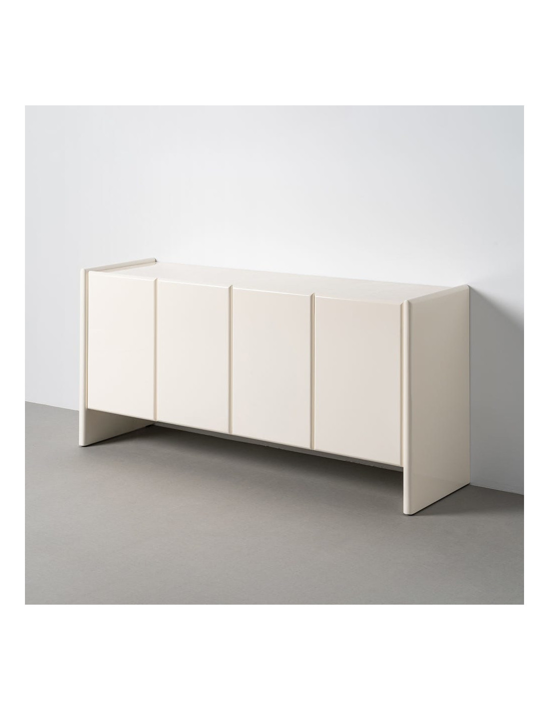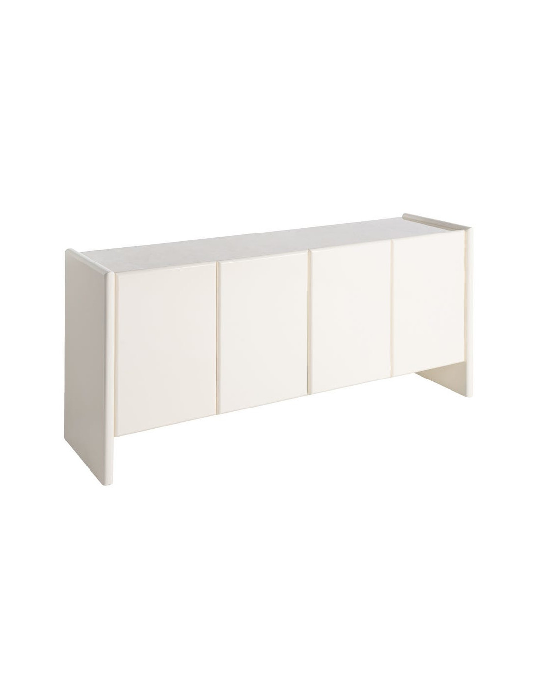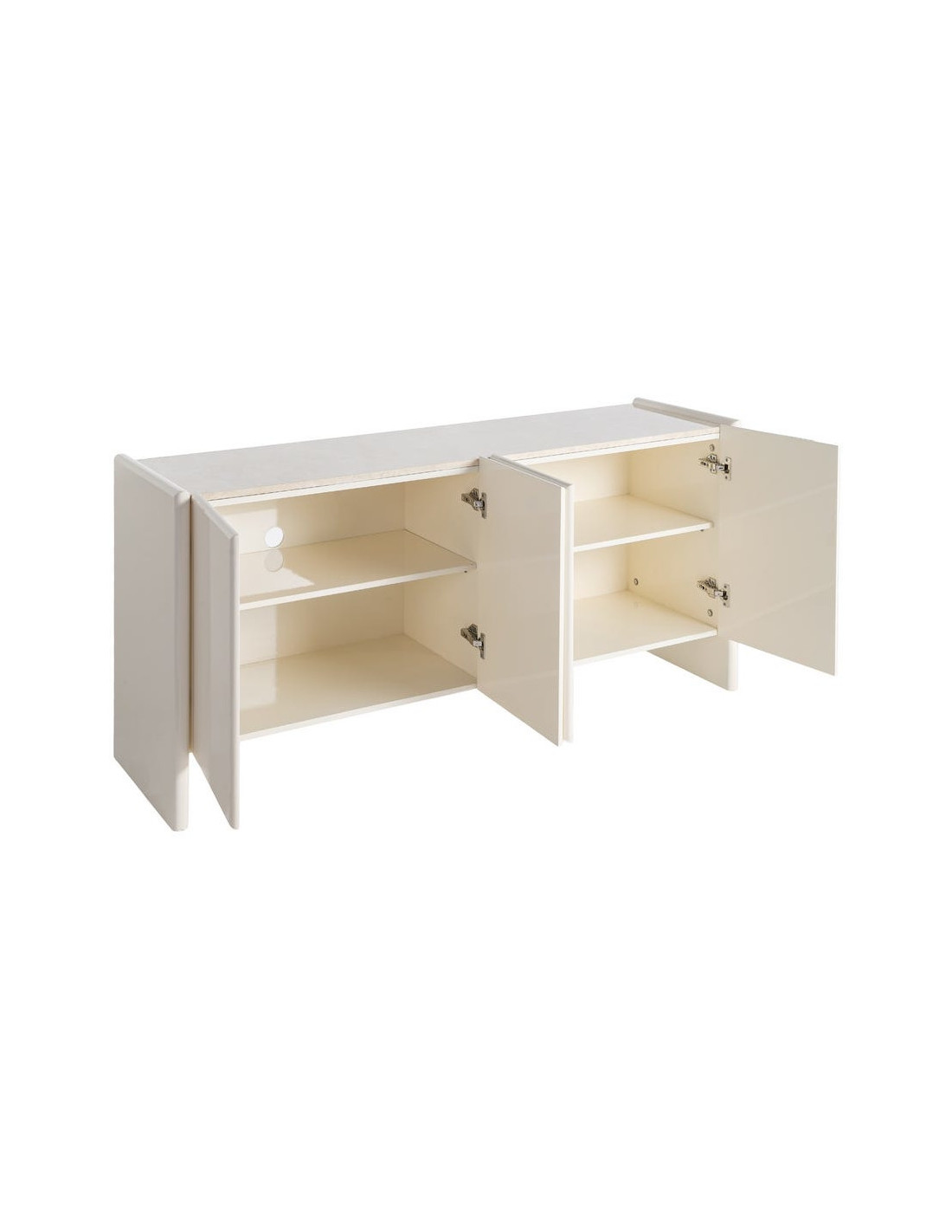 Buffet design Bas 4 portes 163 cm Bois MDF Blanc crème Laqué Marbre Blanc Monéo