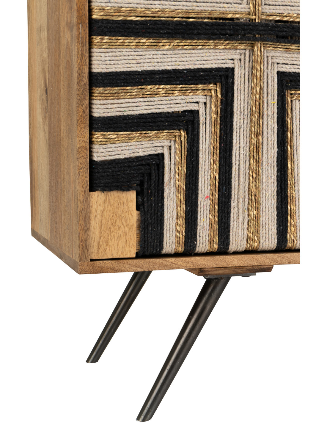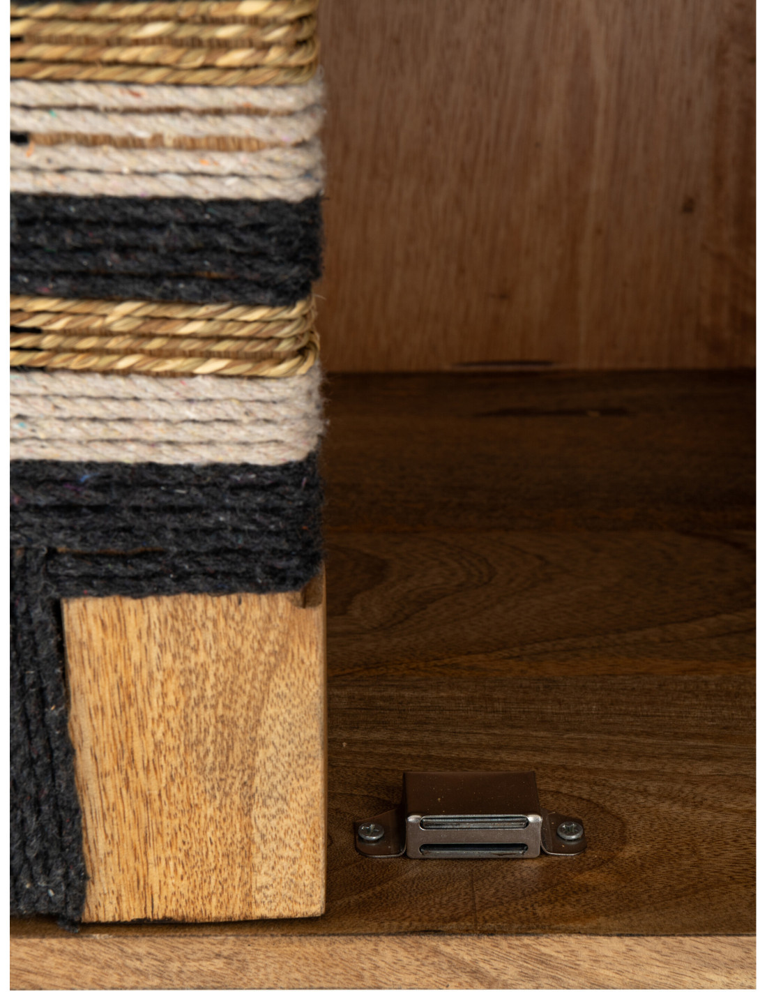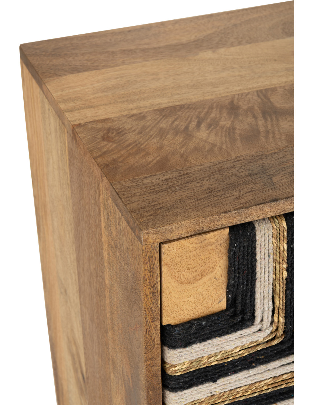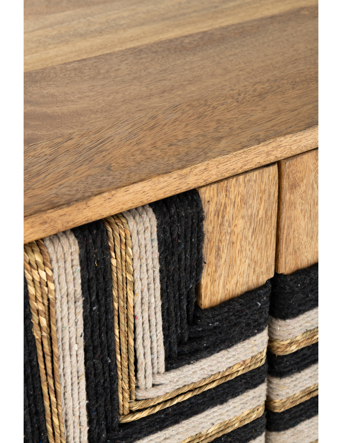 Buffet design ethnique chic Bas 2 portes 92 cm Bois de manguier Naturel Noir Fils tissés Weve