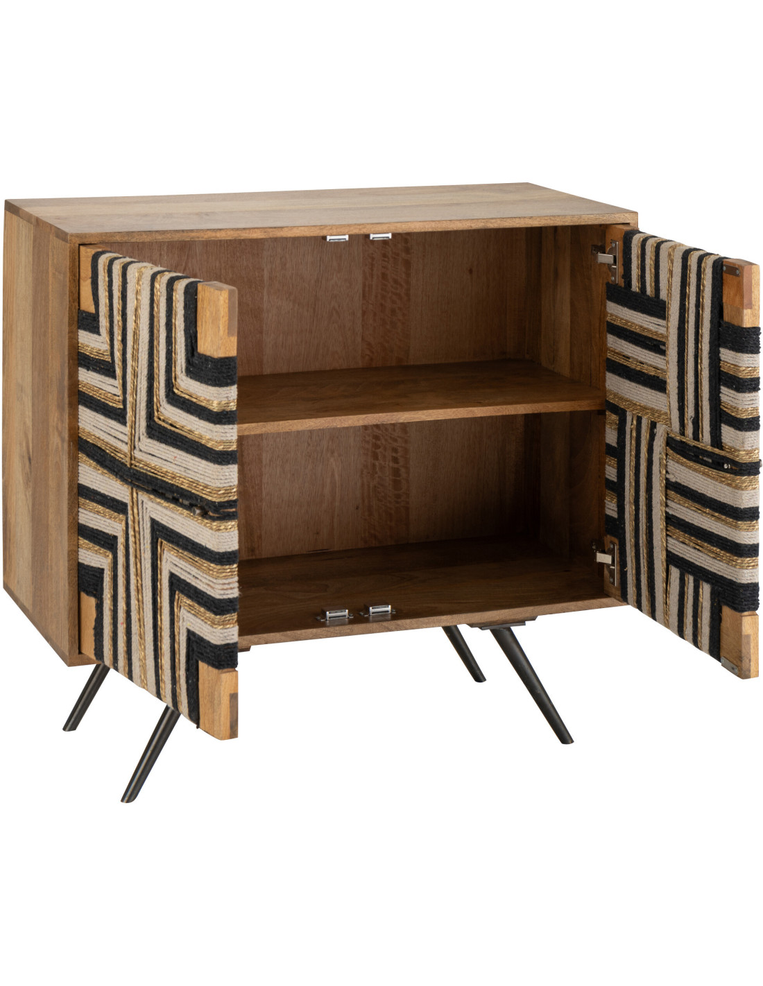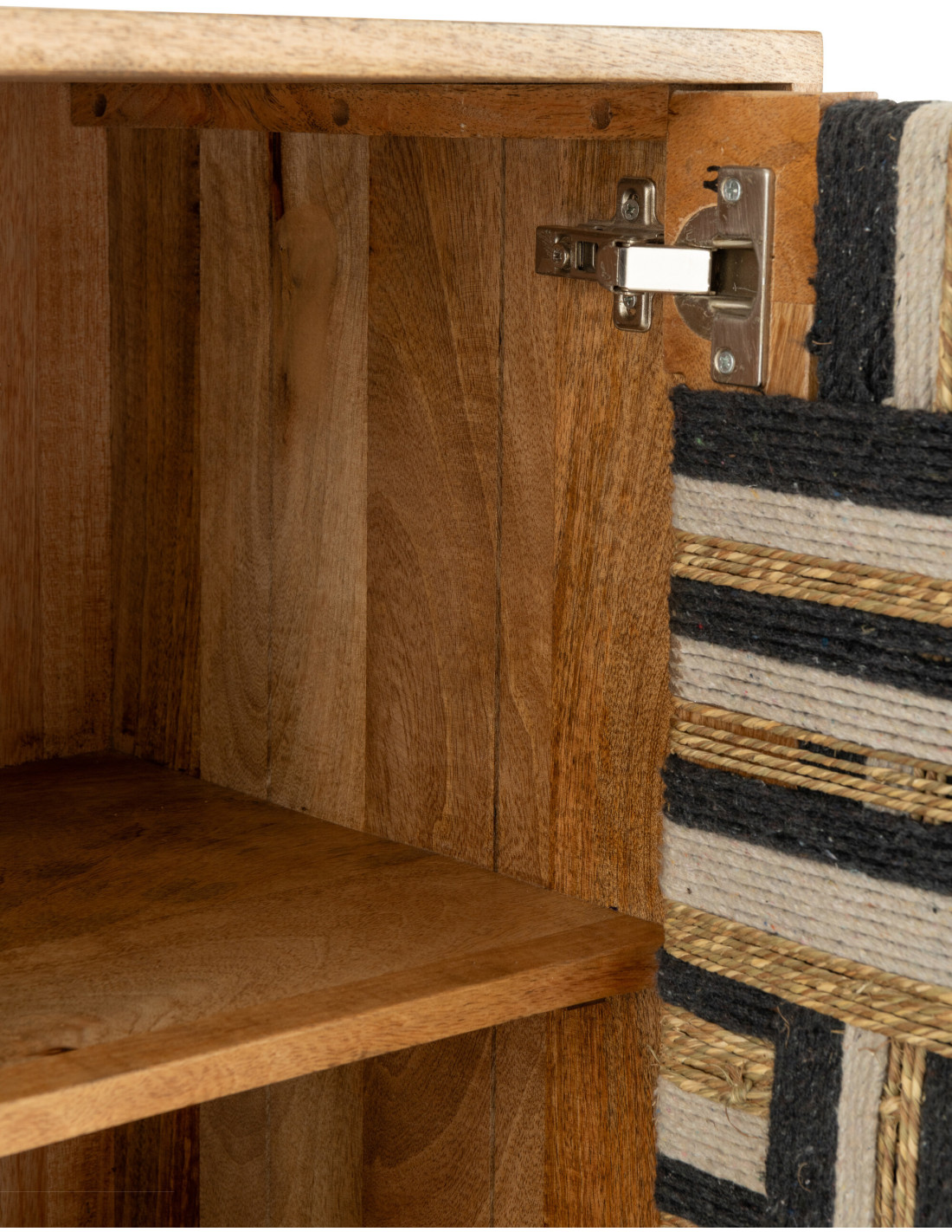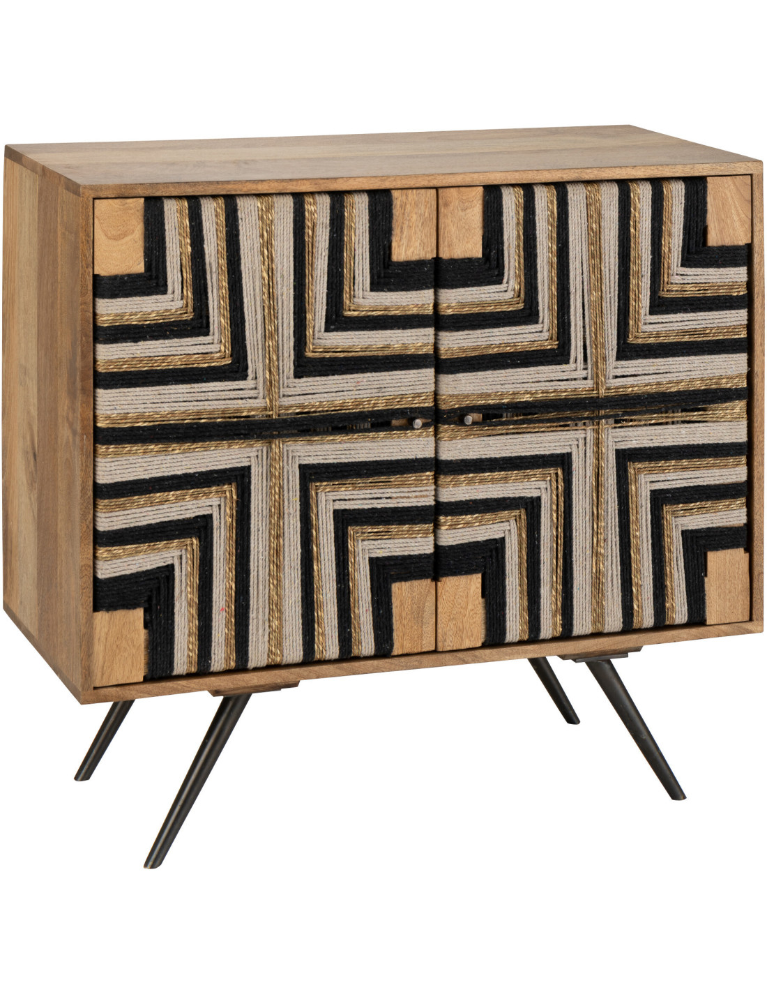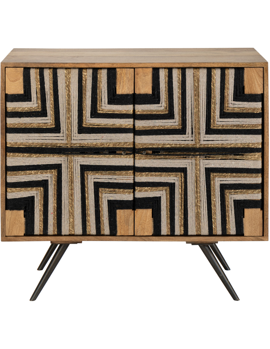 Buffet design ethnique chic Bas 2 portes 92 cm Bois de manguier Naturel Noir Fils tissés Weve