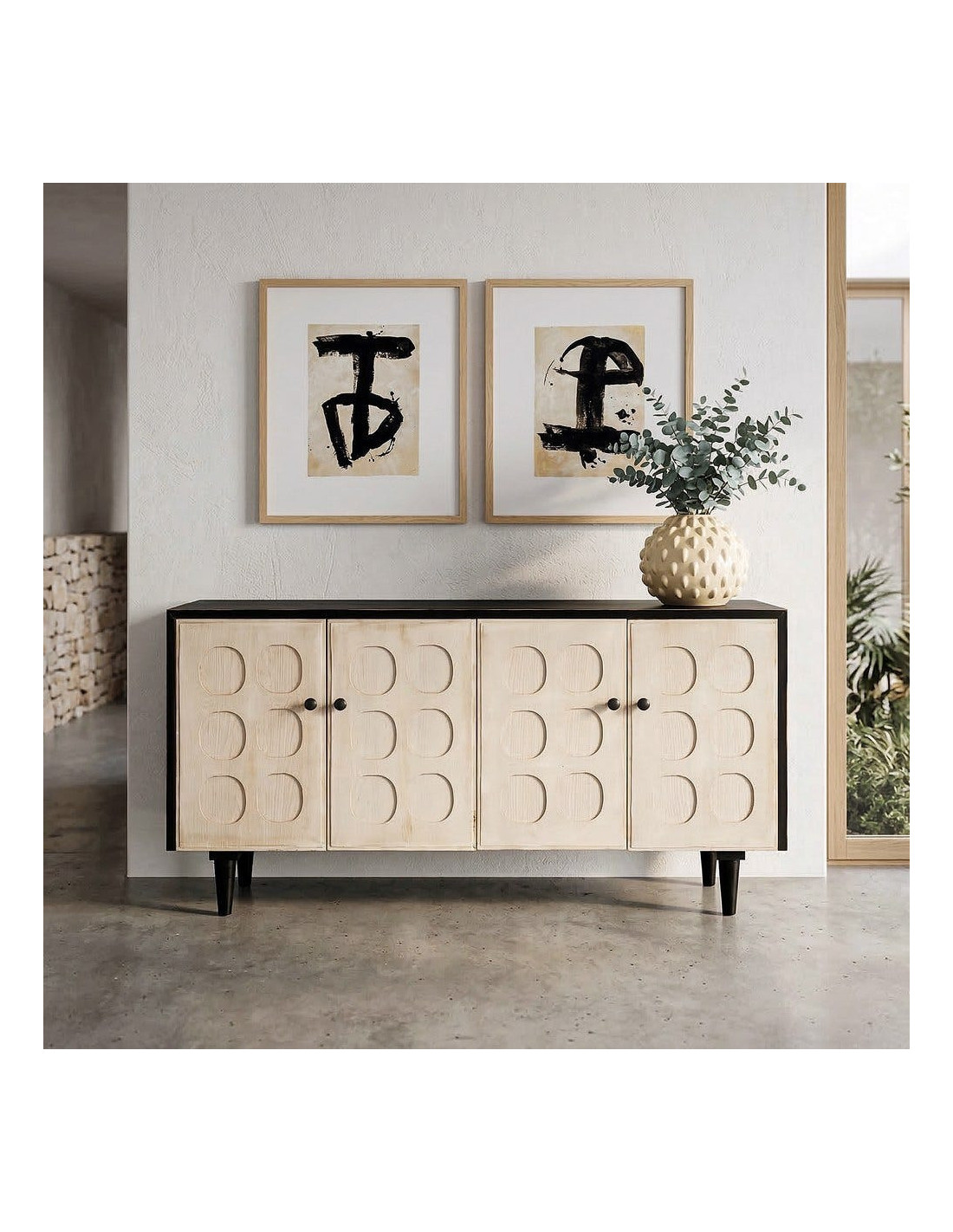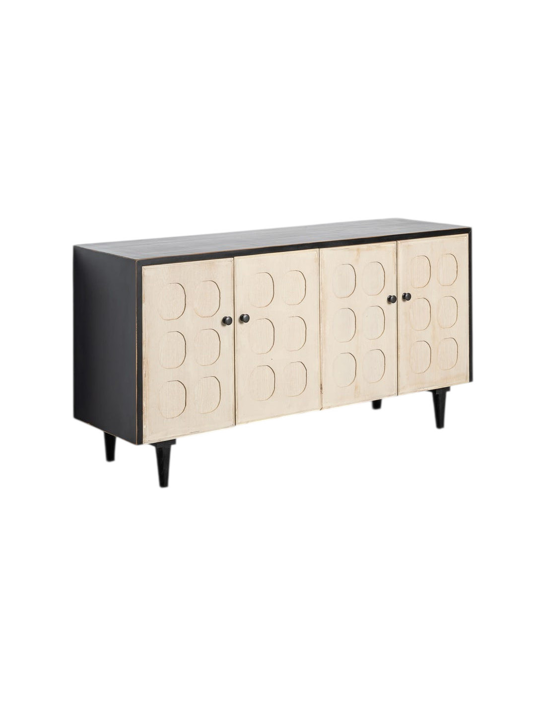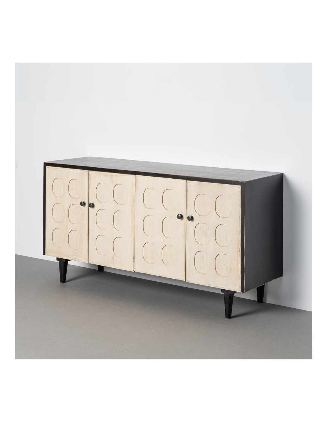 Buffet Enfilade art déco graphique Bas 4 portes Bois recyclé Noir Beige Vieilli Ornelyana