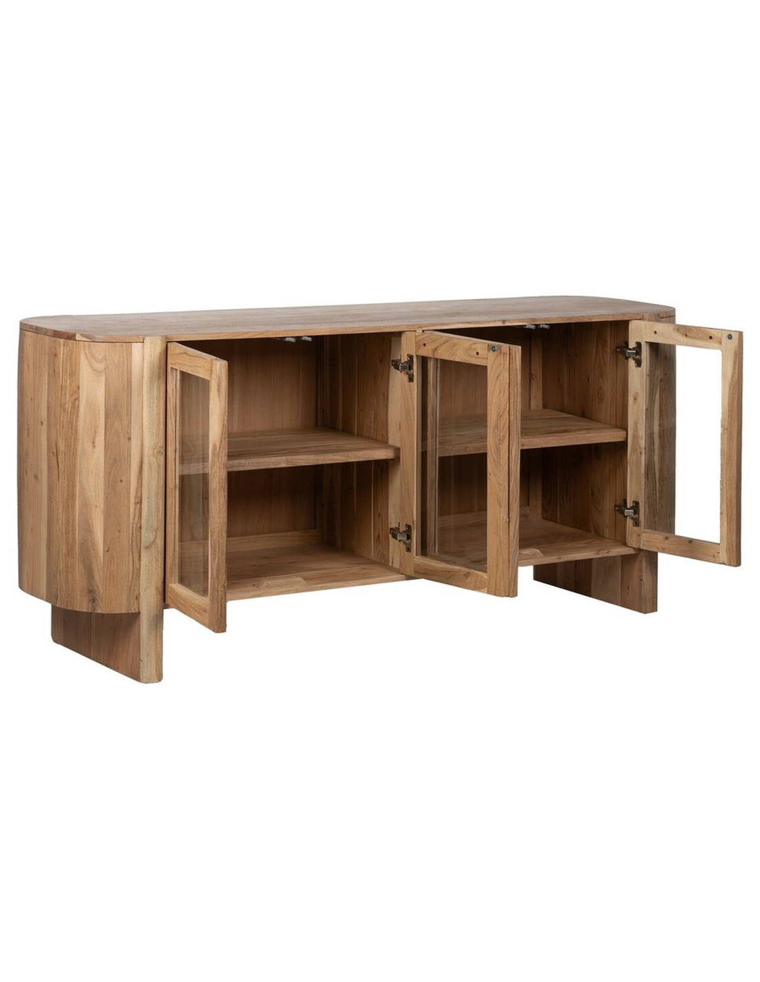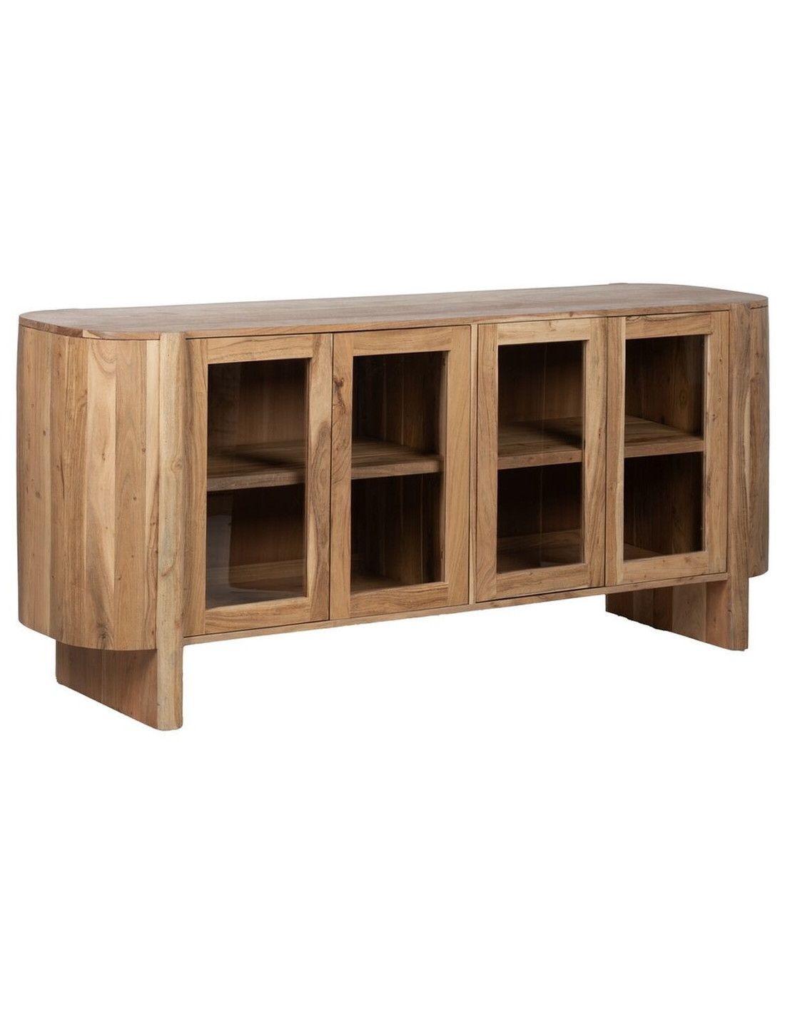 Buffet Enfilade moderne Bas 4 portes en Bois d'acacia Naturel Verre Transparent Creel