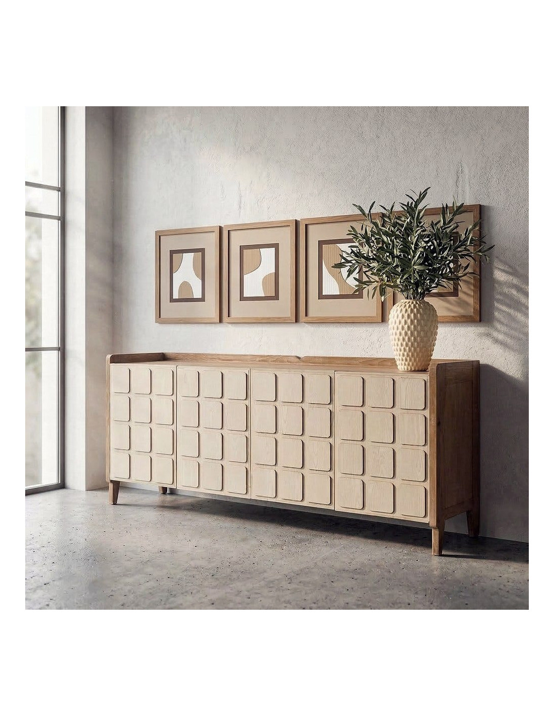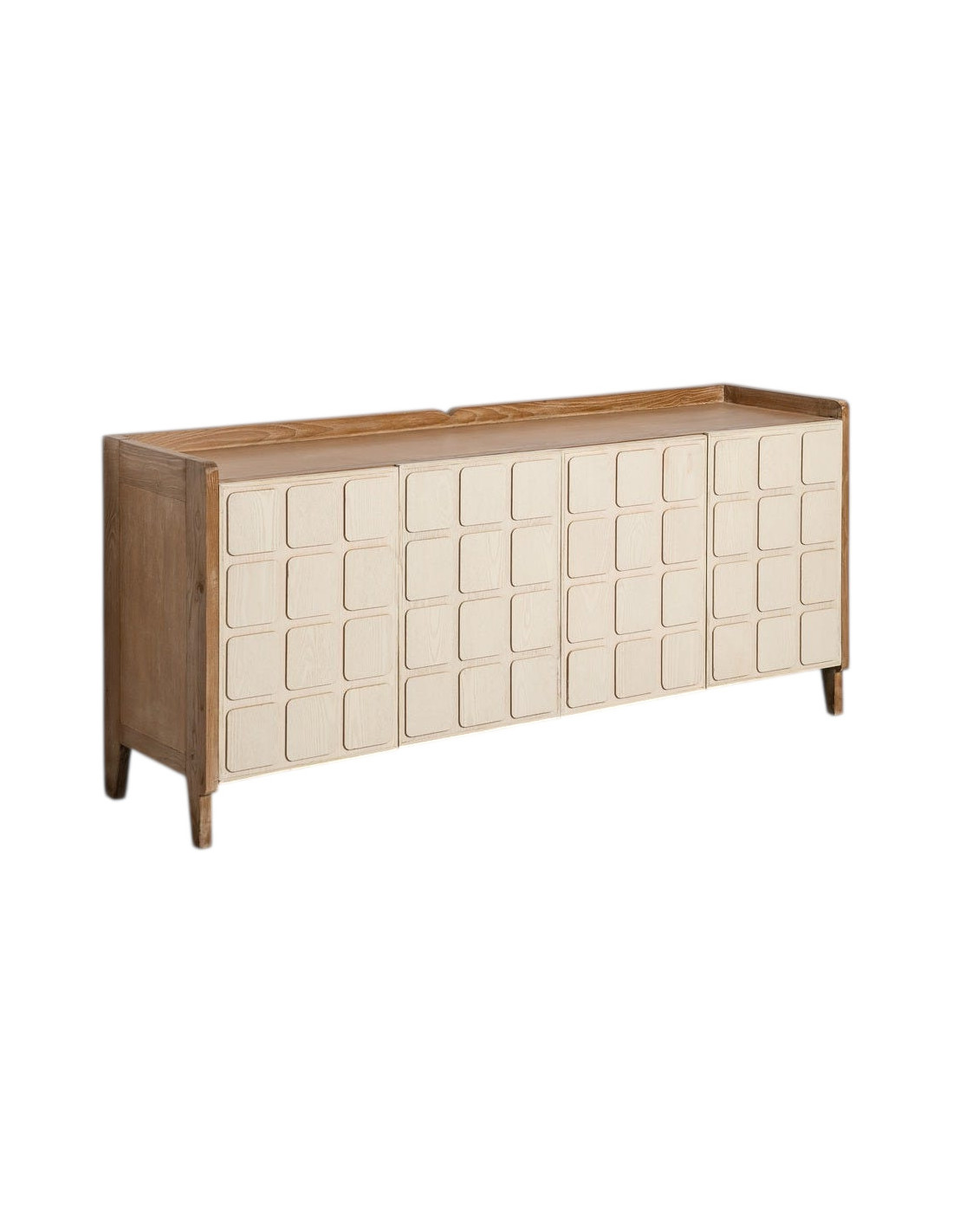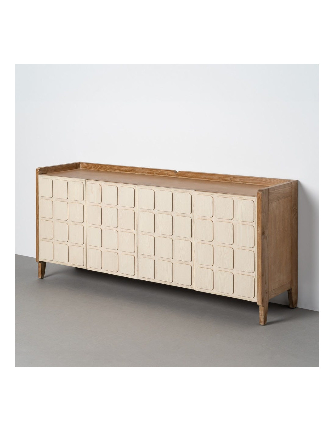 Buffet Enfilade rétro scandinave Bas 4 portes Bois recyclé Naturel Beige Vieilli Motif géométrique Cubéra