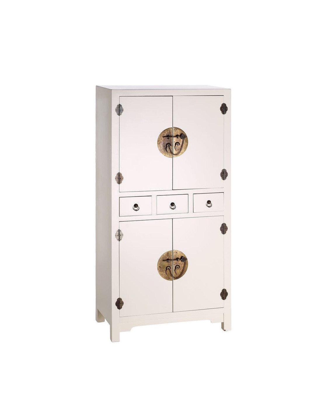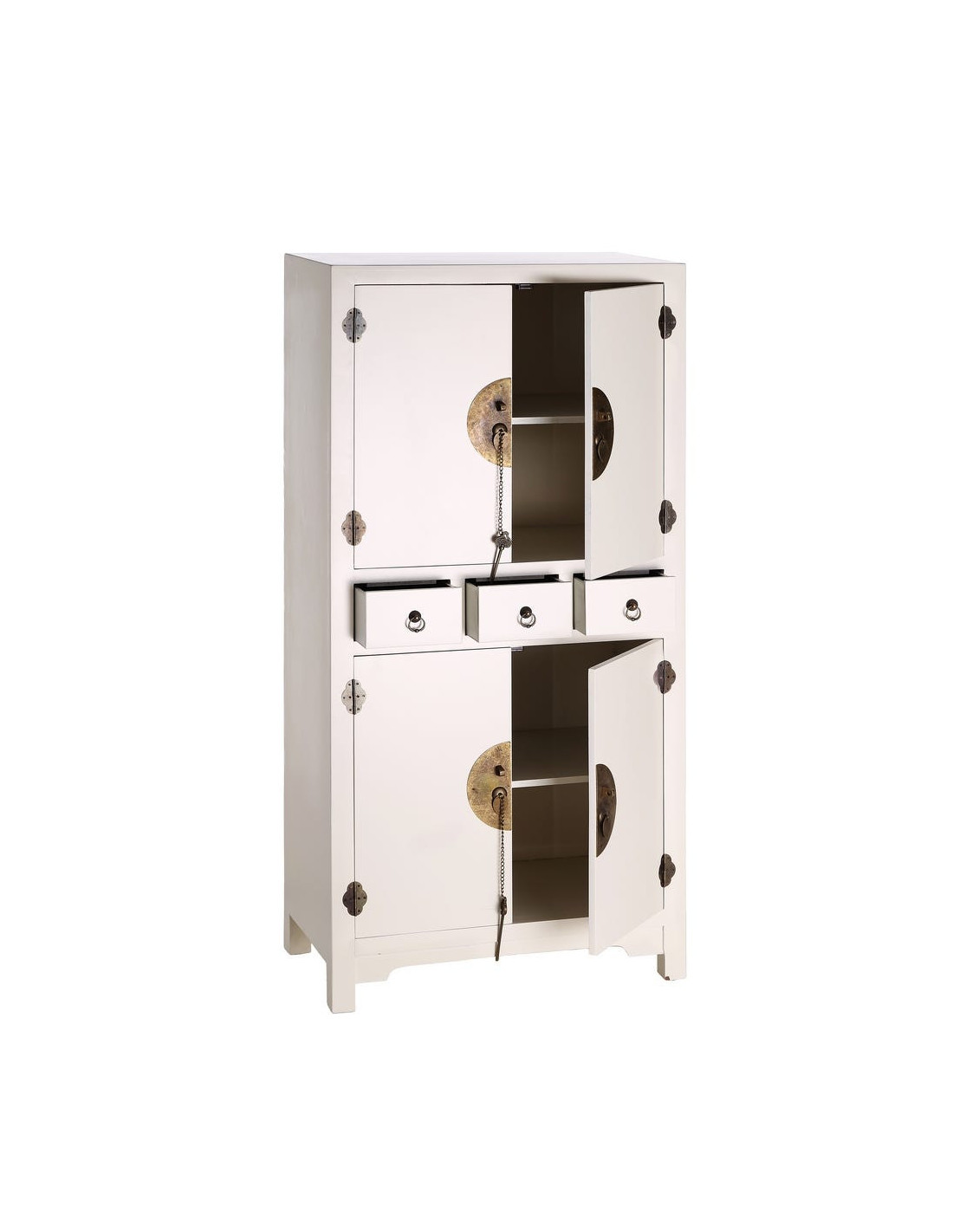 Buffet Haut 4 portes 3 tiroirs en Bois Blanc Oriente - 1