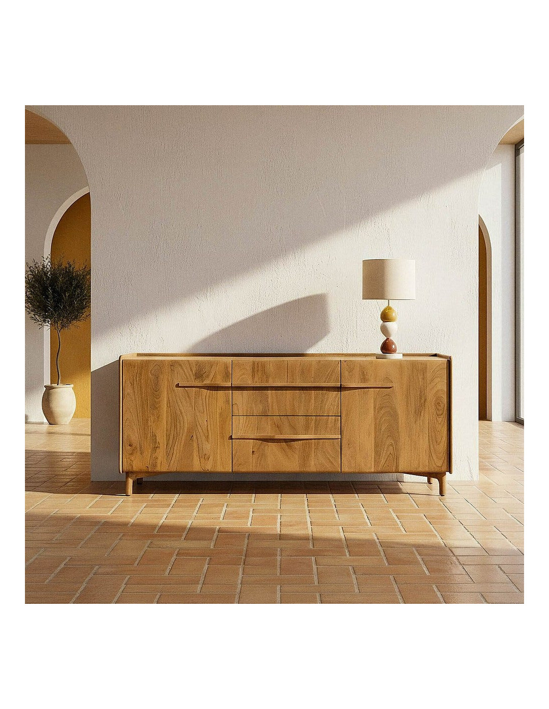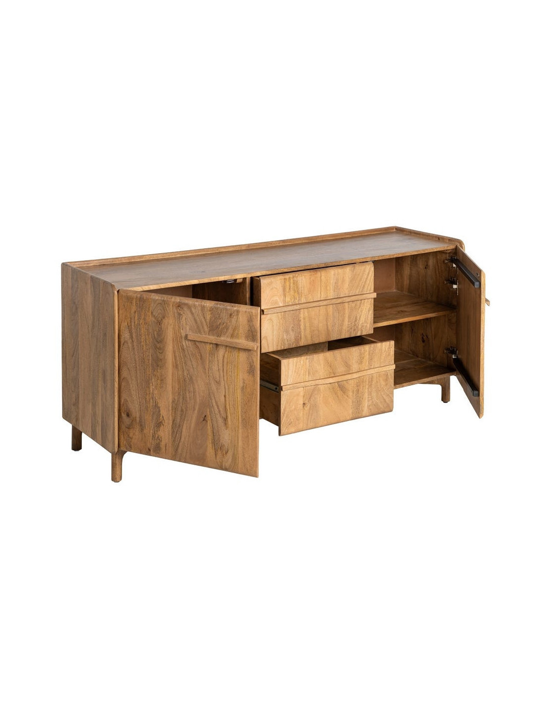 Buffet Japandi Bas 2 portes 2 tiroirs 160 cm Naturel Galt