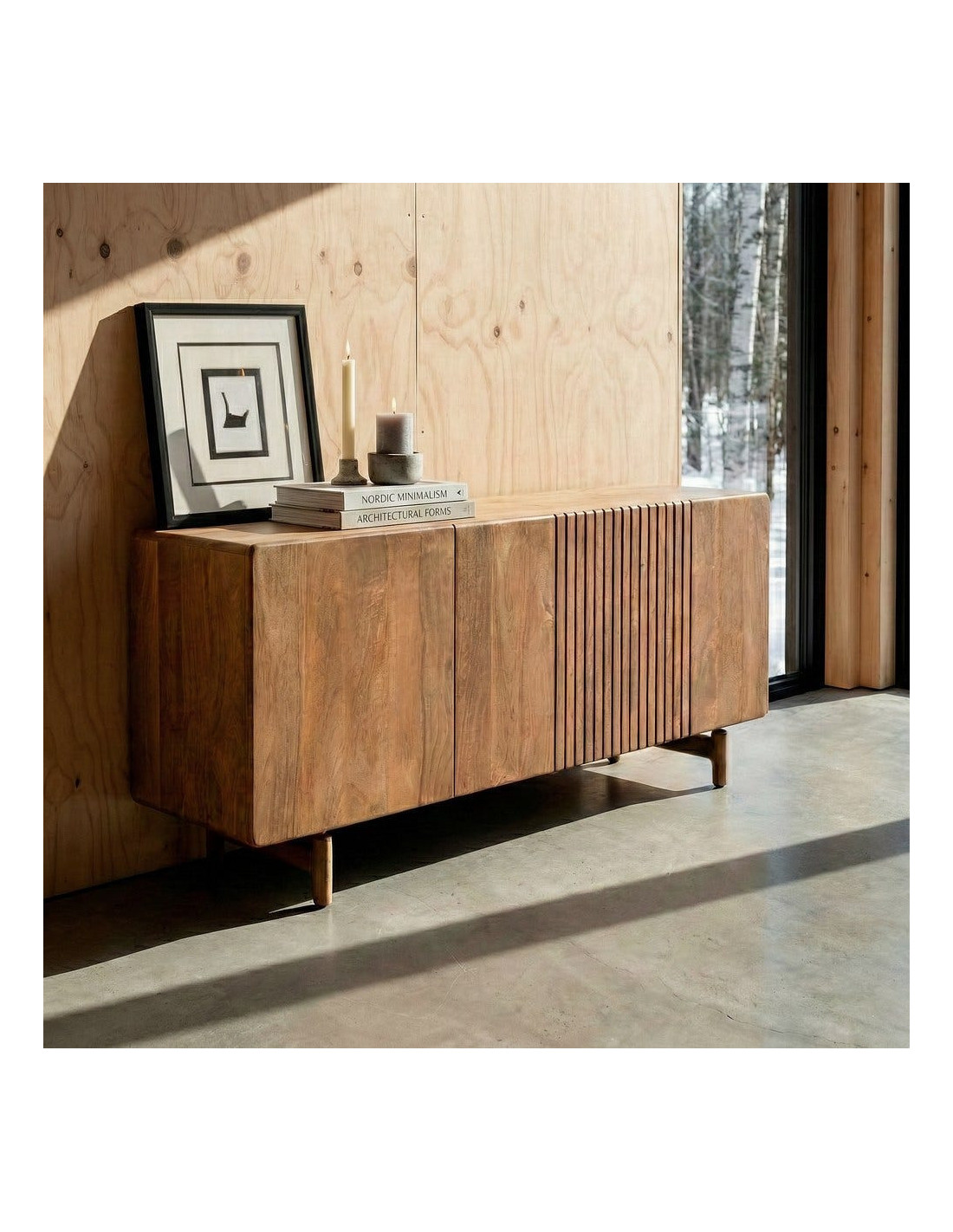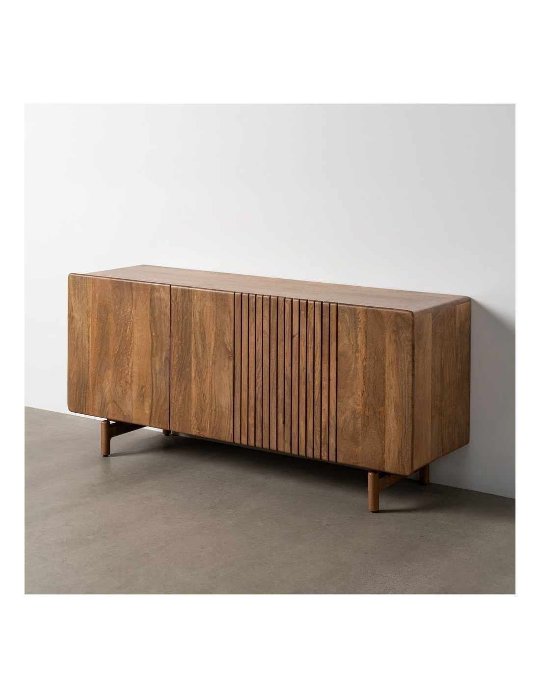 Buffet japandi minimaliste Bas 3 portes 160 cm Bois de manguier Naturel Kyvora