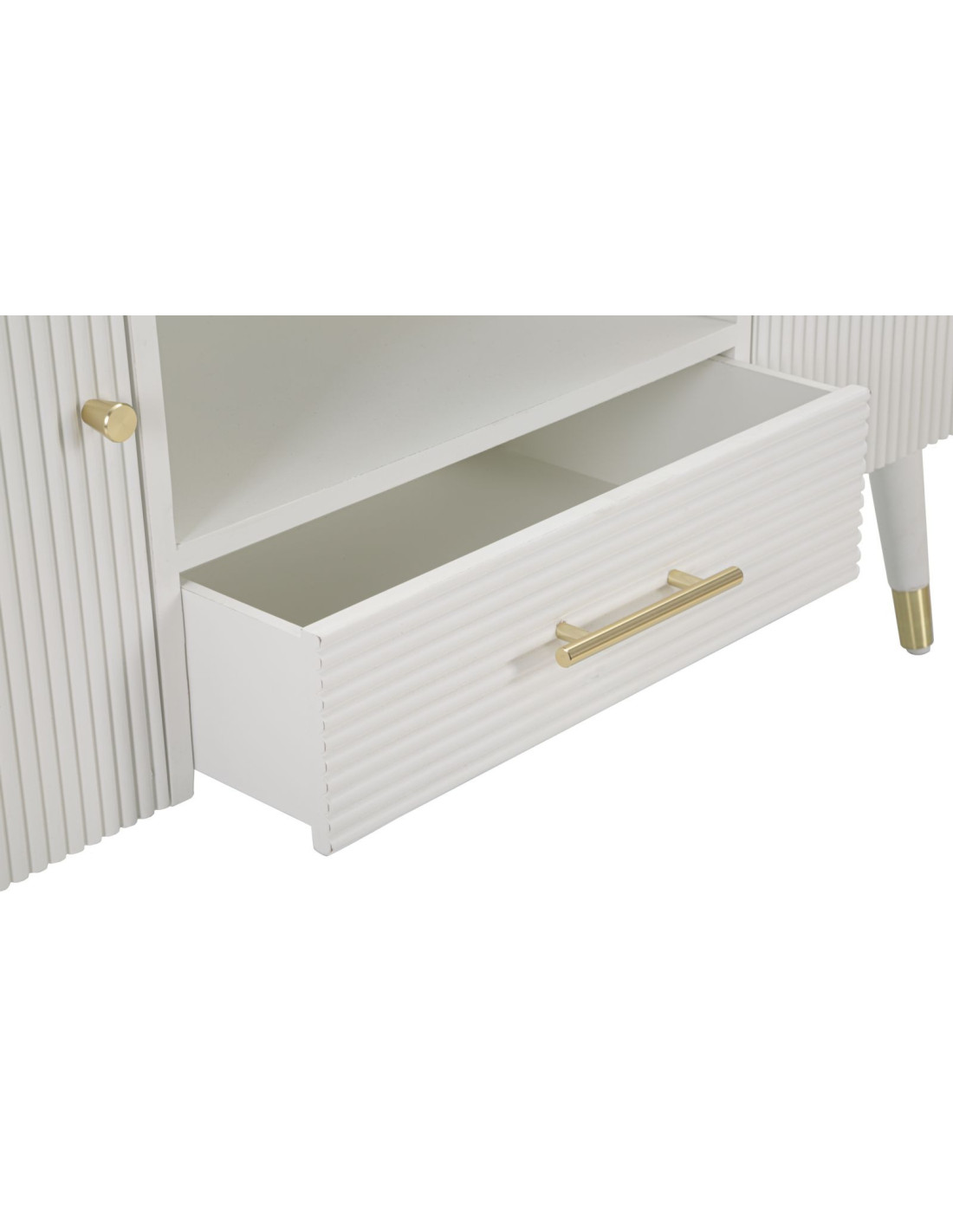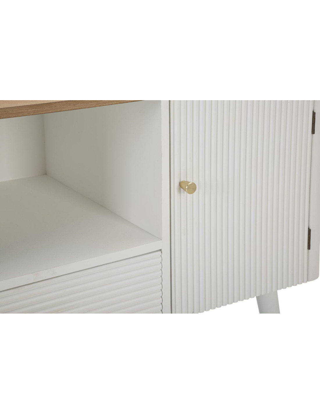 Buffet moderne 2 portes 1 tiroir 1 niche en Bois de pin Blanc Naturel Métal Doré Matera