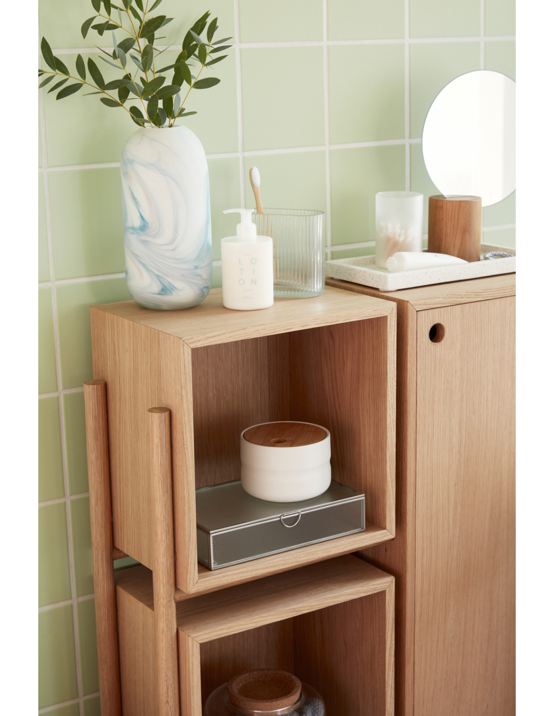 Buffet moderne Bas 1 porte 2 niches en Bois MDF Naturel Effet chêne Cube - 2