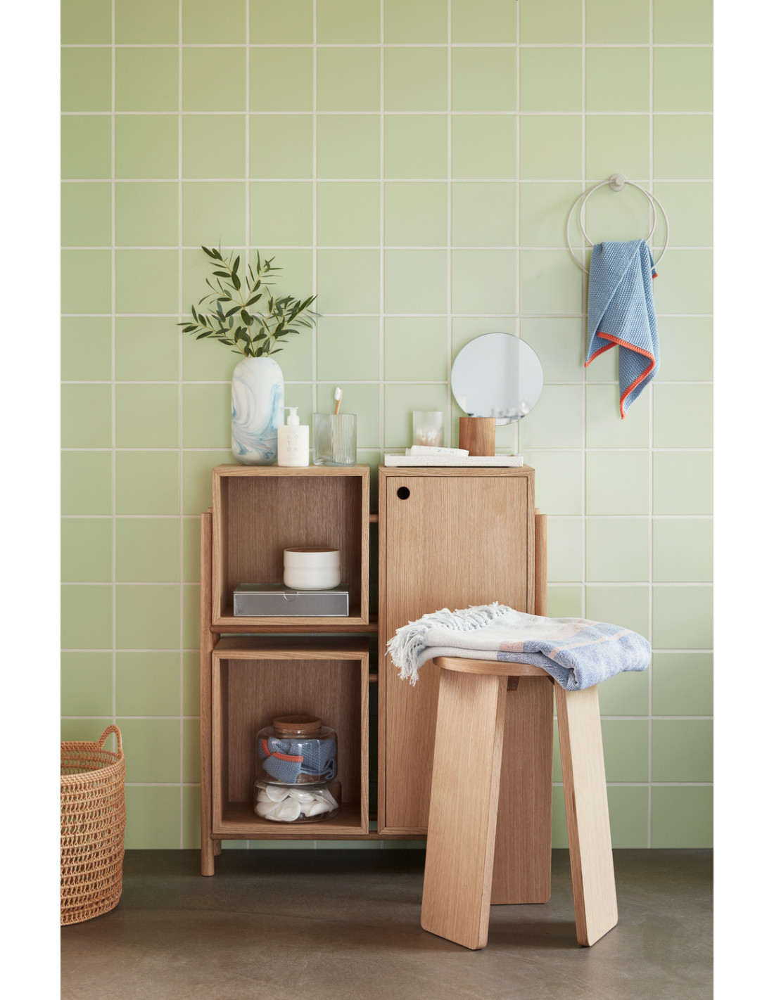 Buffet moderne Bas 1 porte 2 niches en Bois MDF Naturel Effet chêne Cube - 7