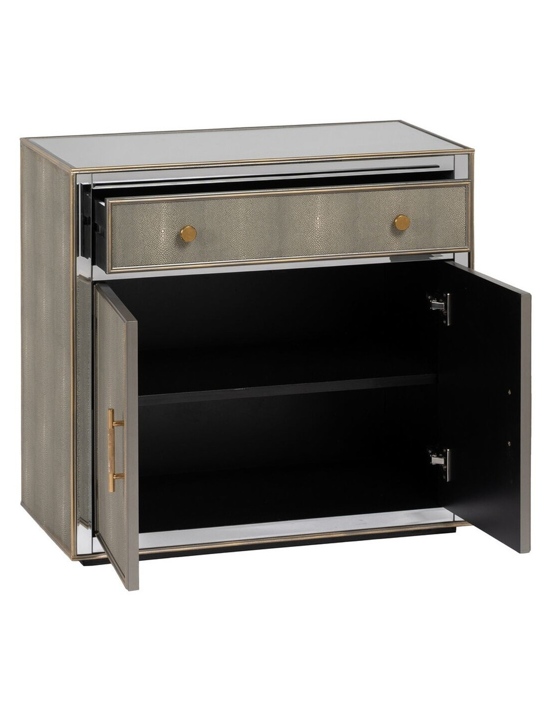 Buffet moderne Bas 2 portes 1 tiroir en Bois Gris Miroir Argenté Chloe - 1