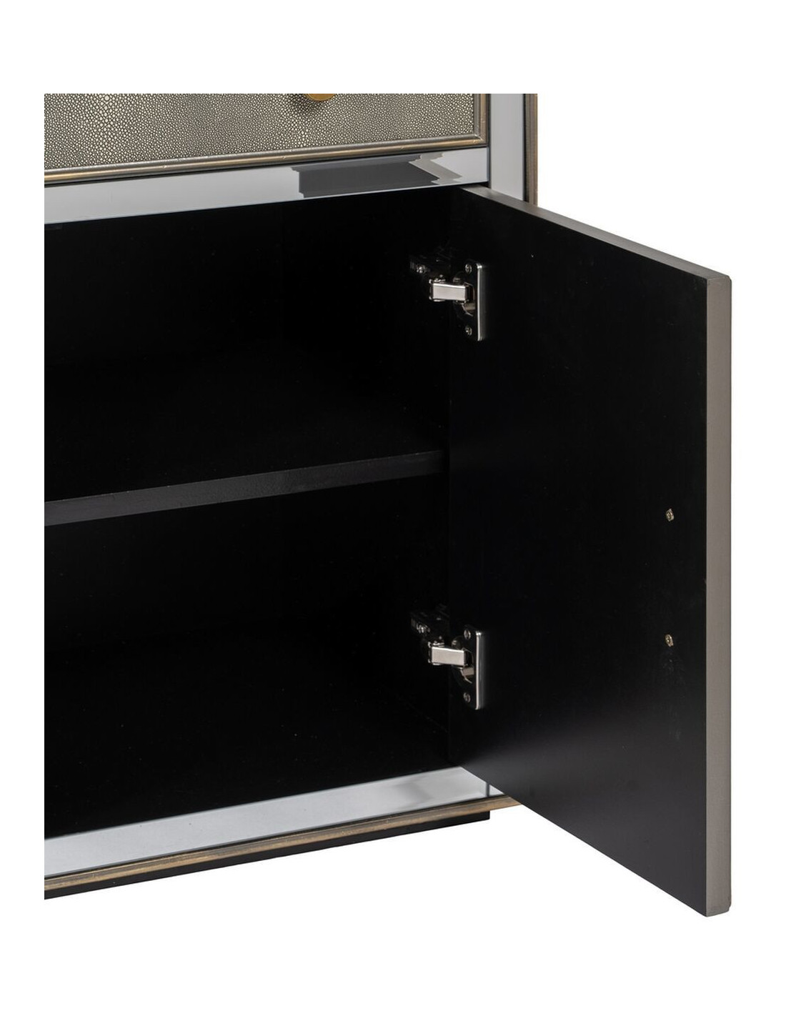 Buffet moderne Bas 2 portes 1 tiroir en Bois Gris Miroir Argenté Chloe - 6