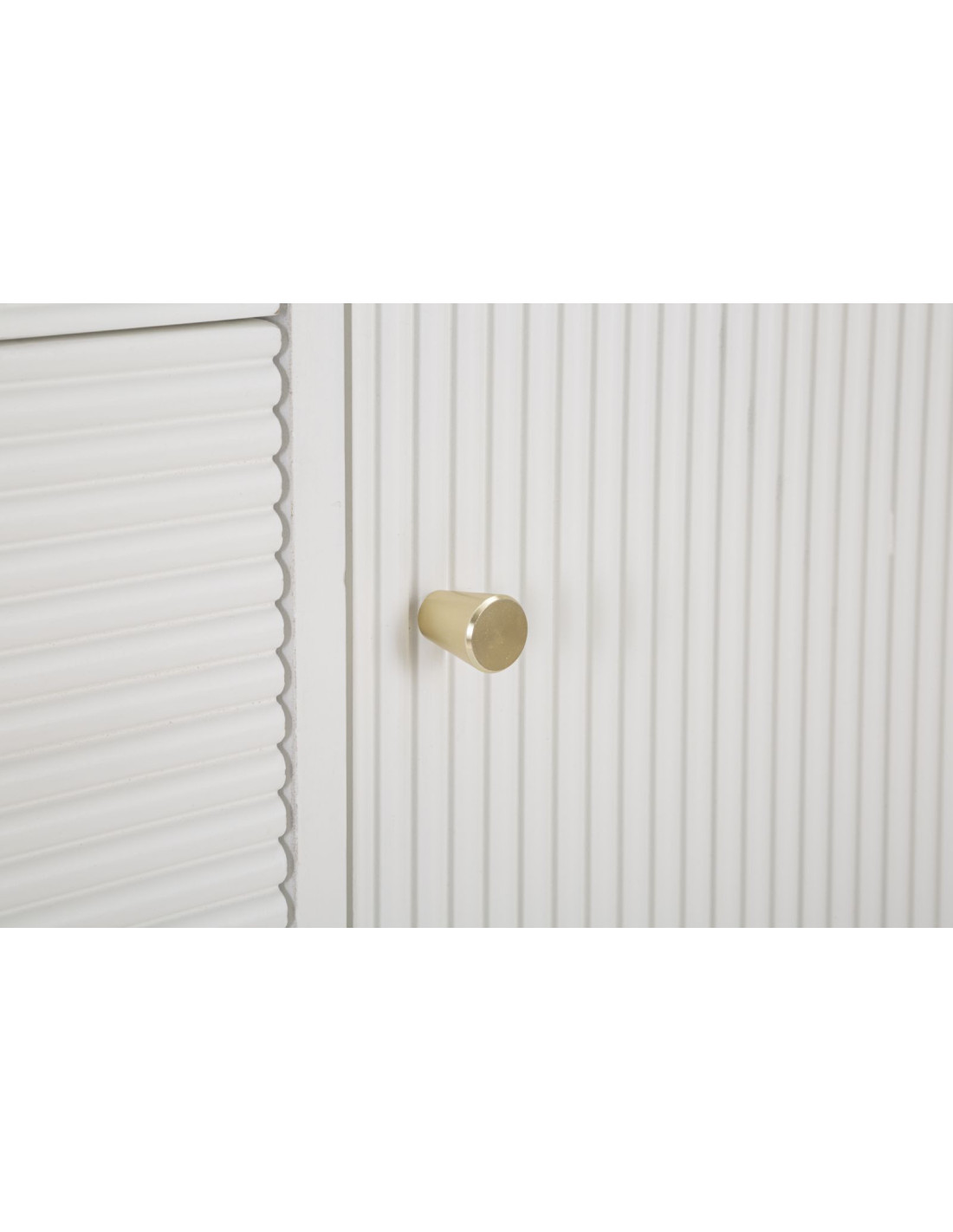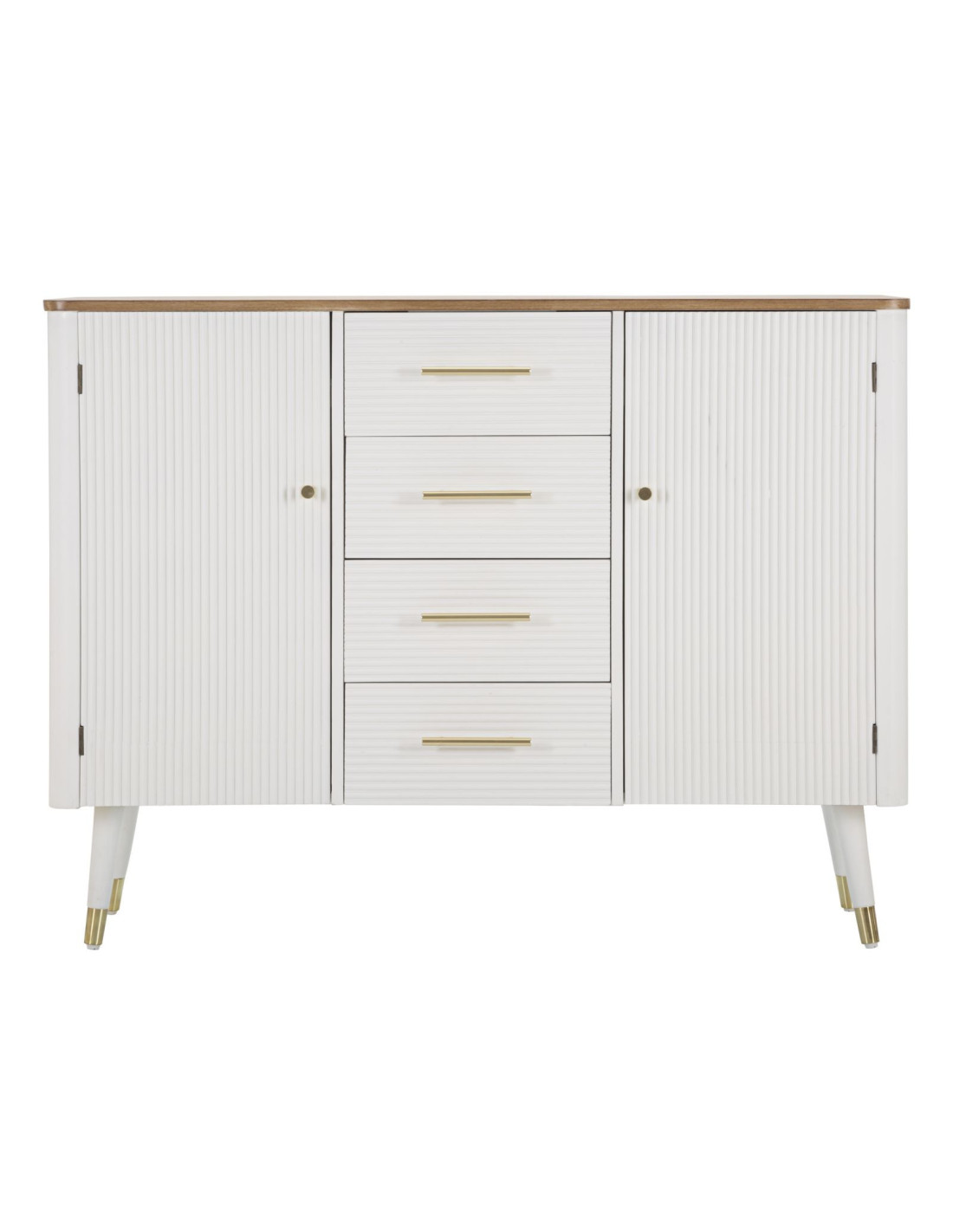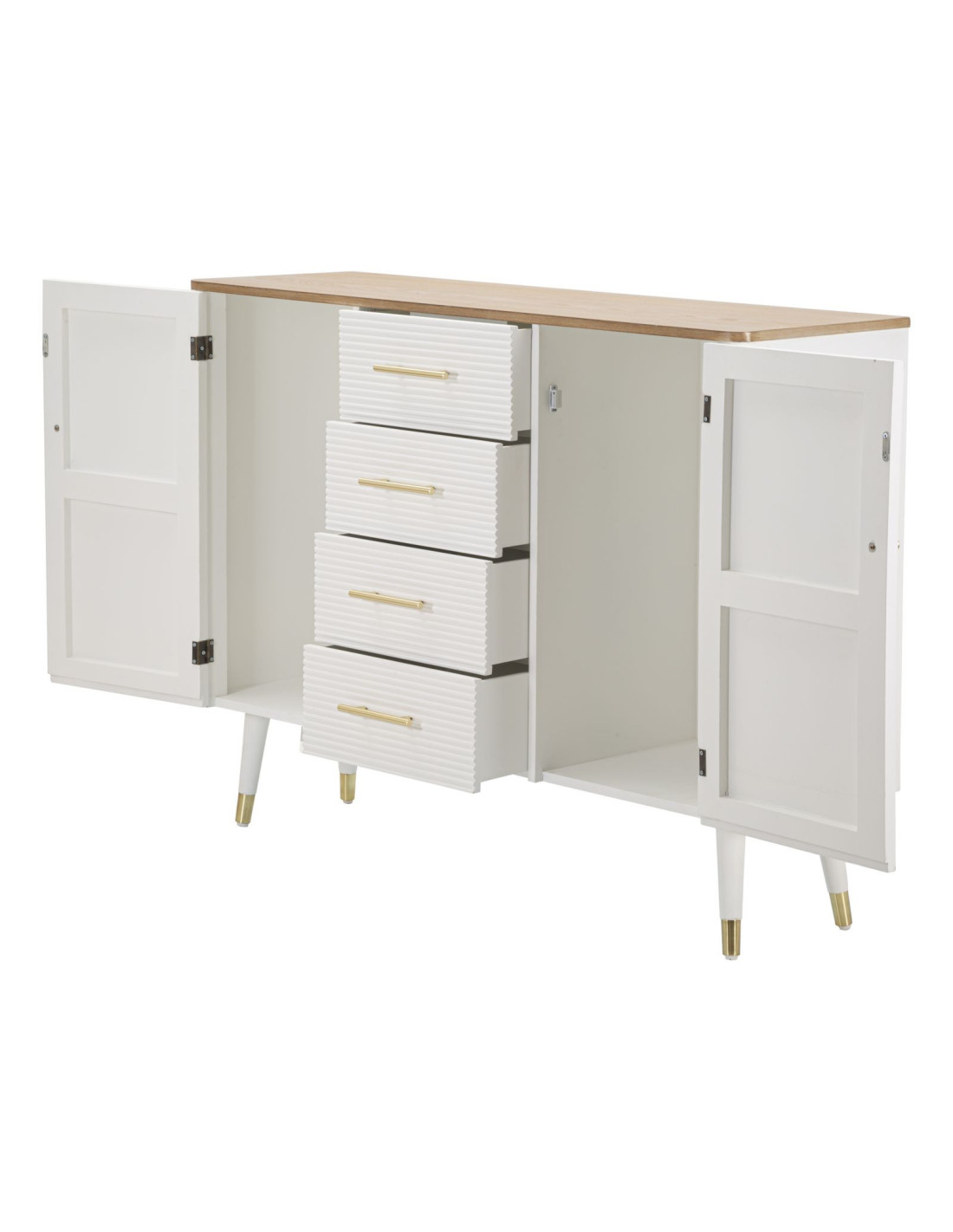 Buffet moderne Bas 2 portes 4 tiroirs en Bois de pin Blanc Naturel Métal Doré Matera