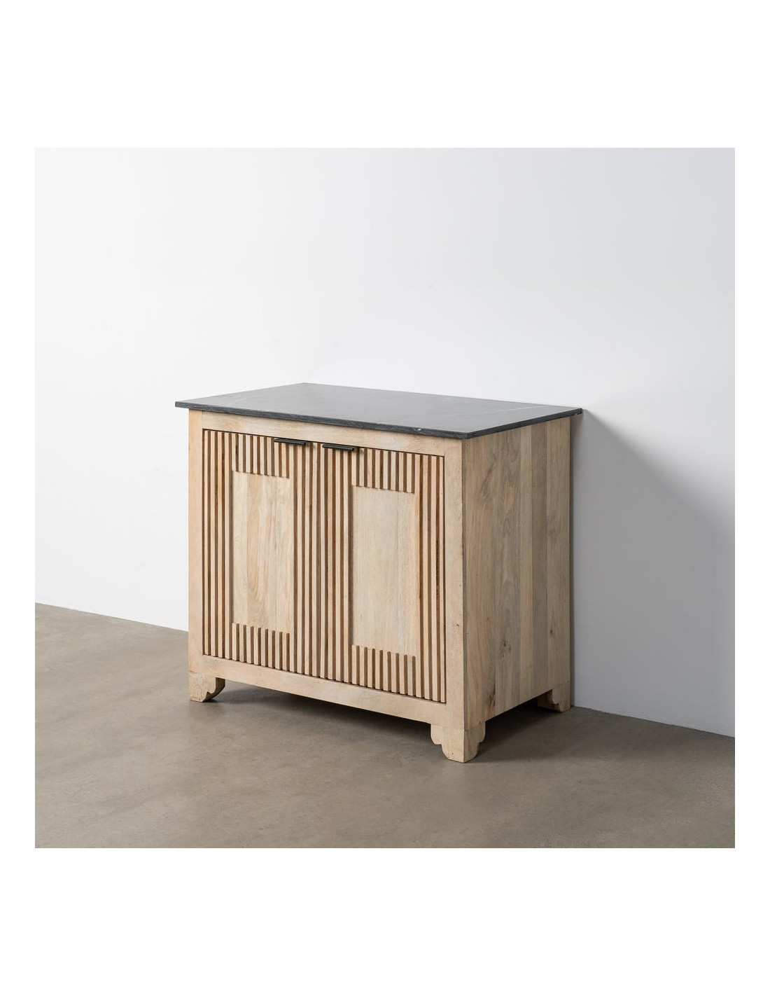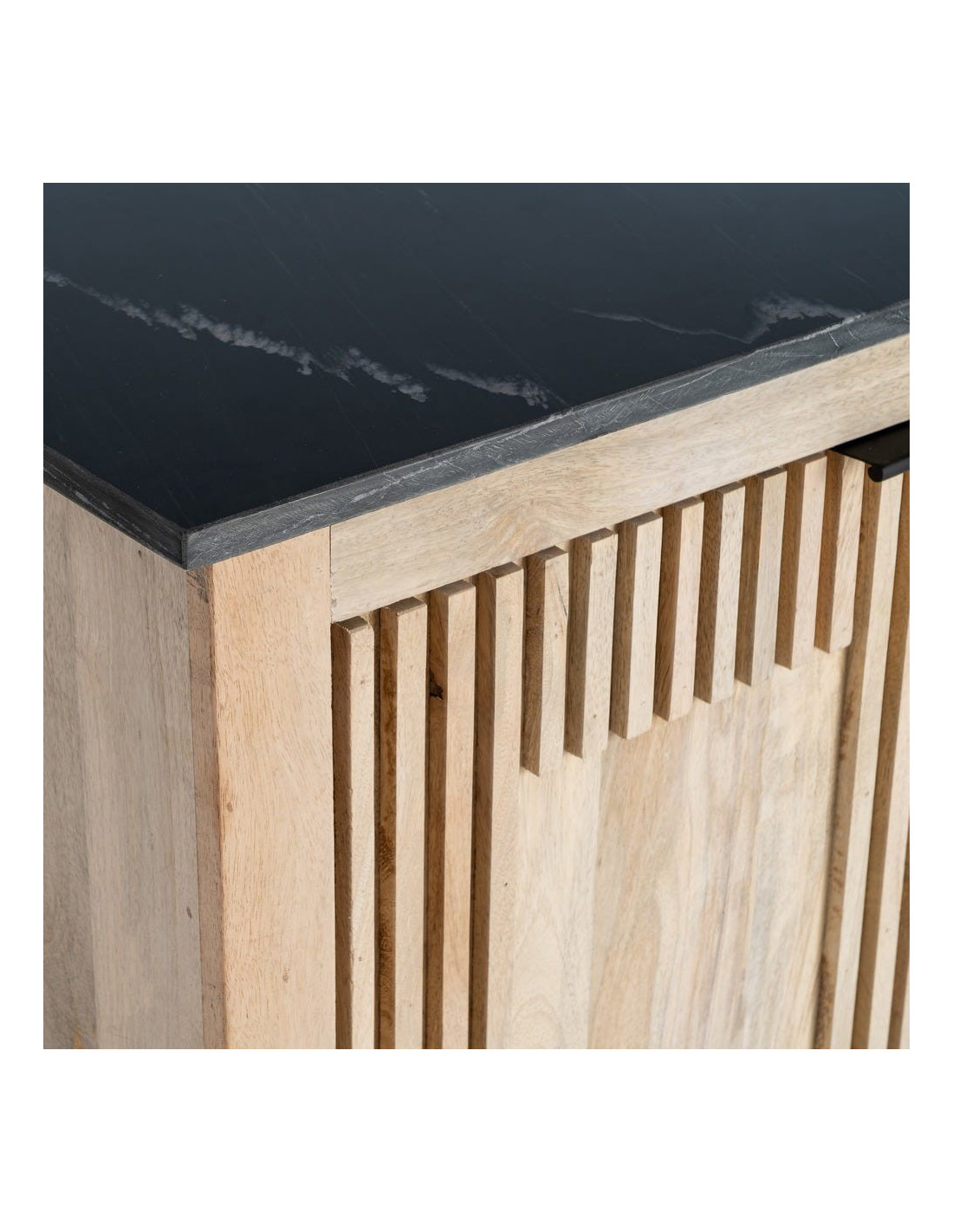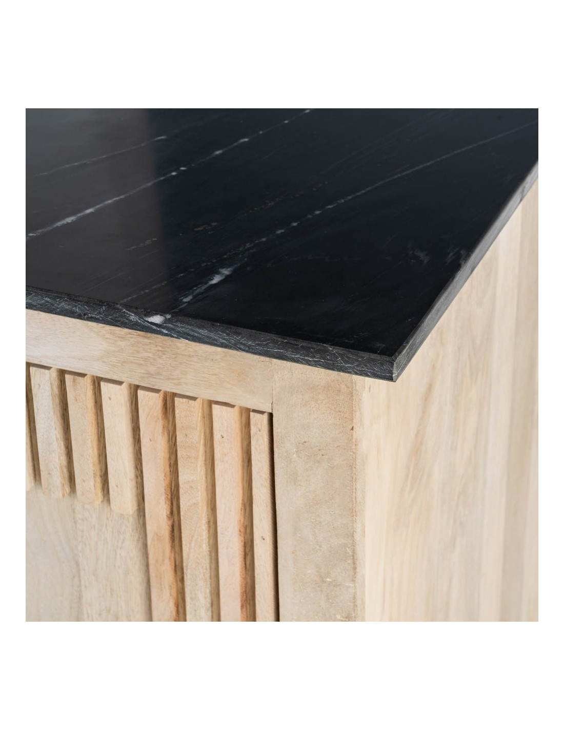 Buffet moderne chic Bas 2 portes 95 cm Marbre Noir Bois de manguier Naturel Liméro