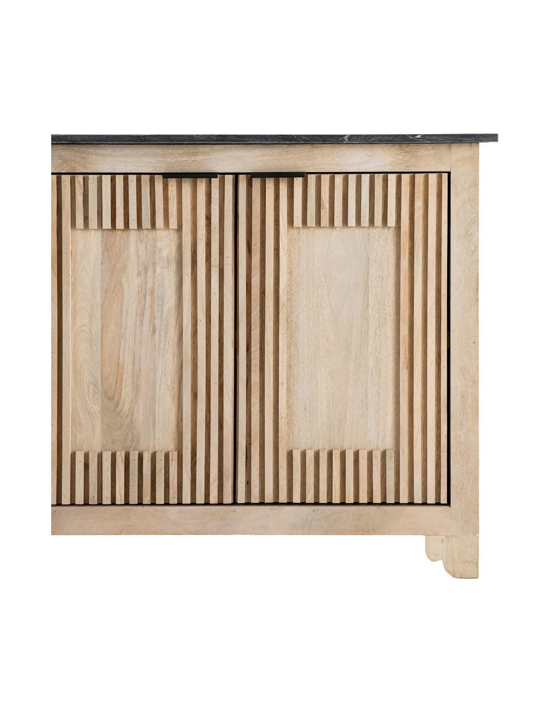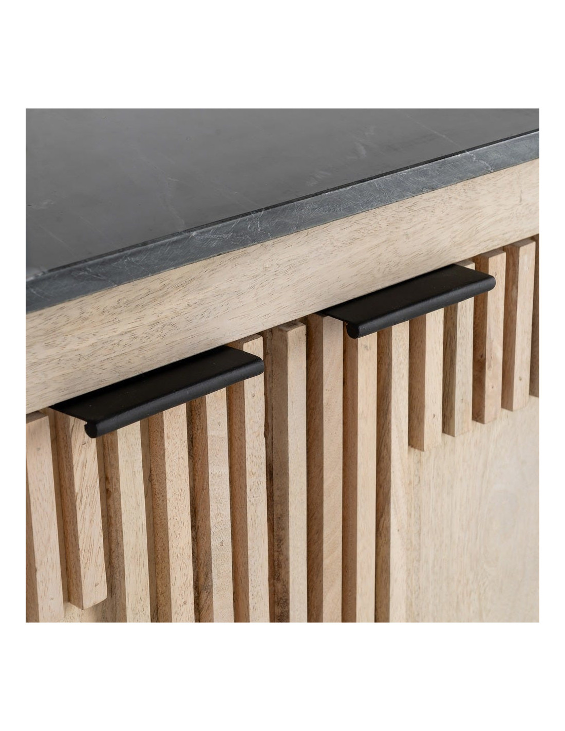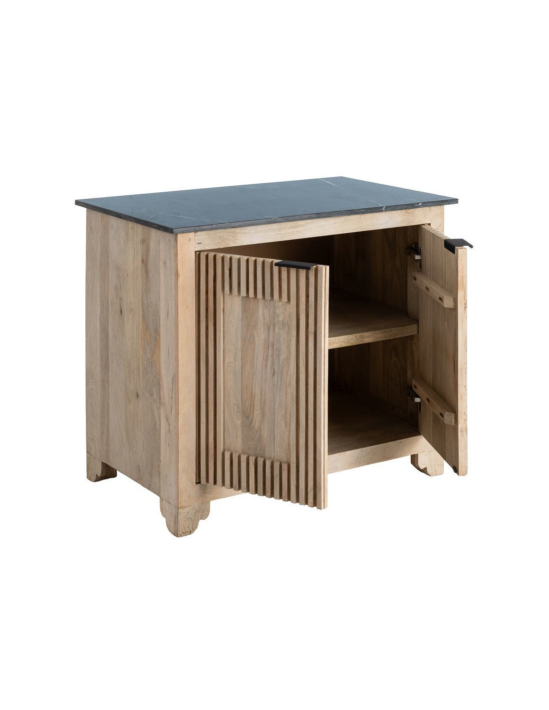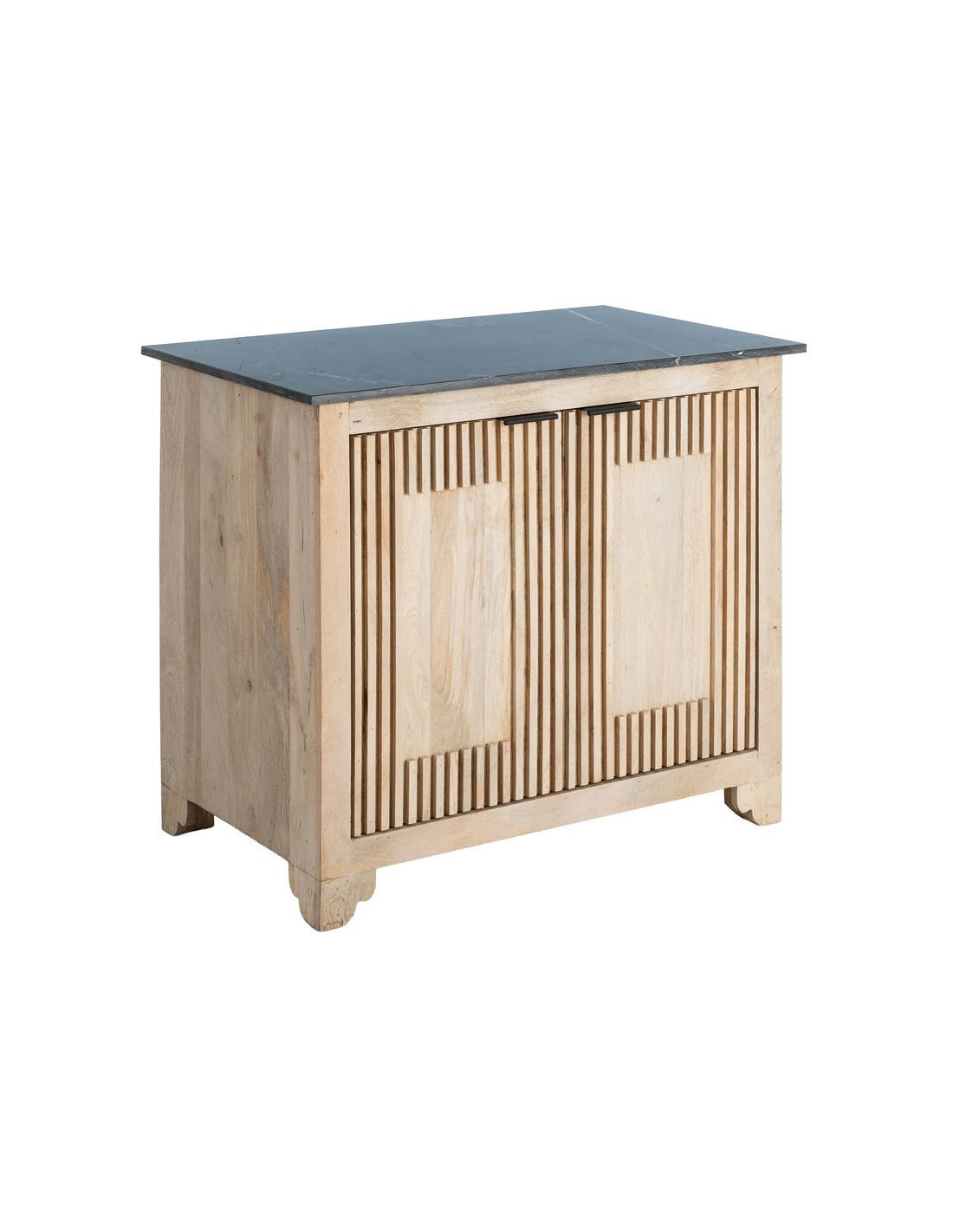 Buffet moderne chic Bas 2 portes 95 cm Marbre Noir Bois de manguier Naturel Liméro