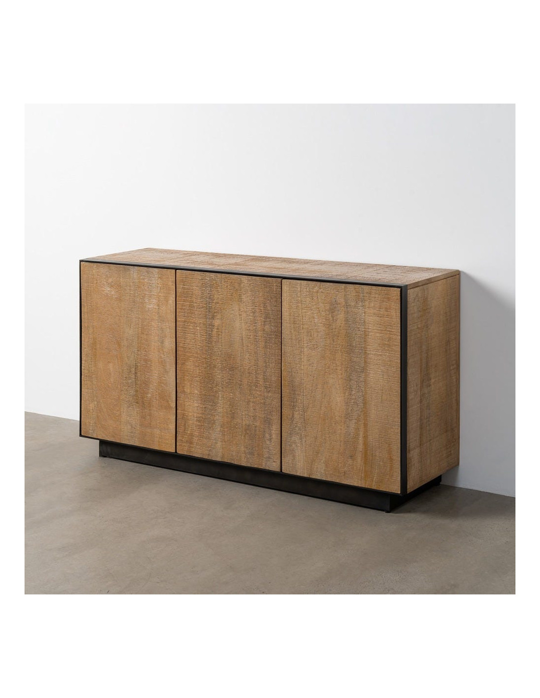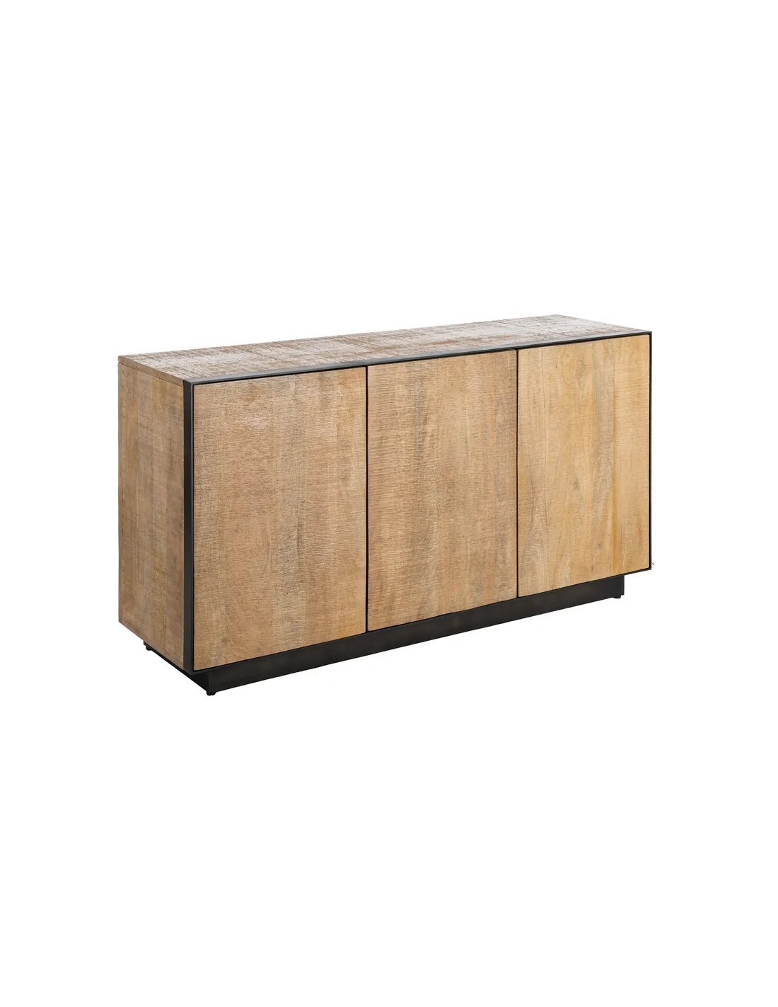 Buffet moderne chic Bas 3 portes en Bois de manguier Naturel Métal Noir Ohio - 1