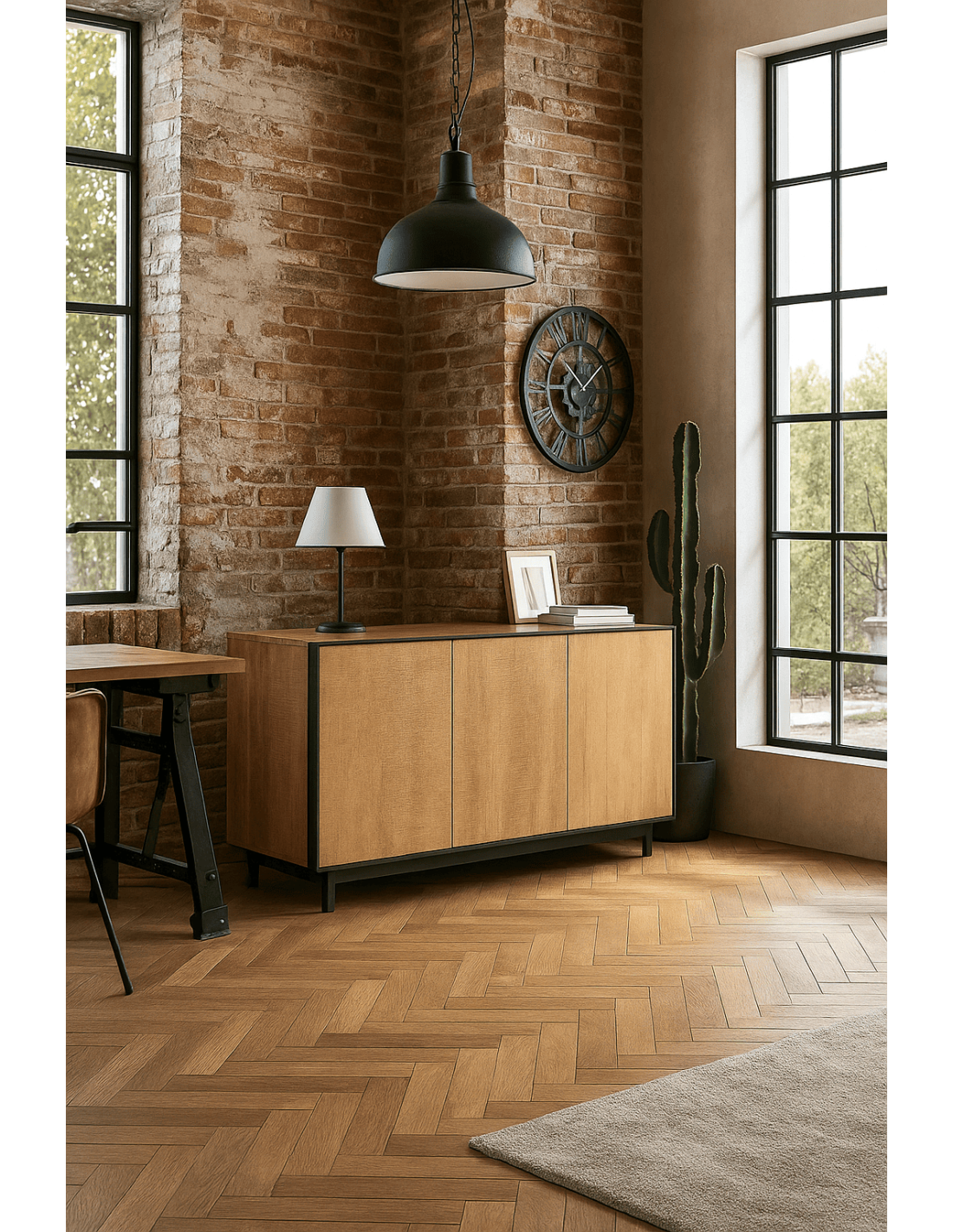 Buffet moderne chic Bas 3 portes en Bois de manguier Naturel Métal Noir Ohio