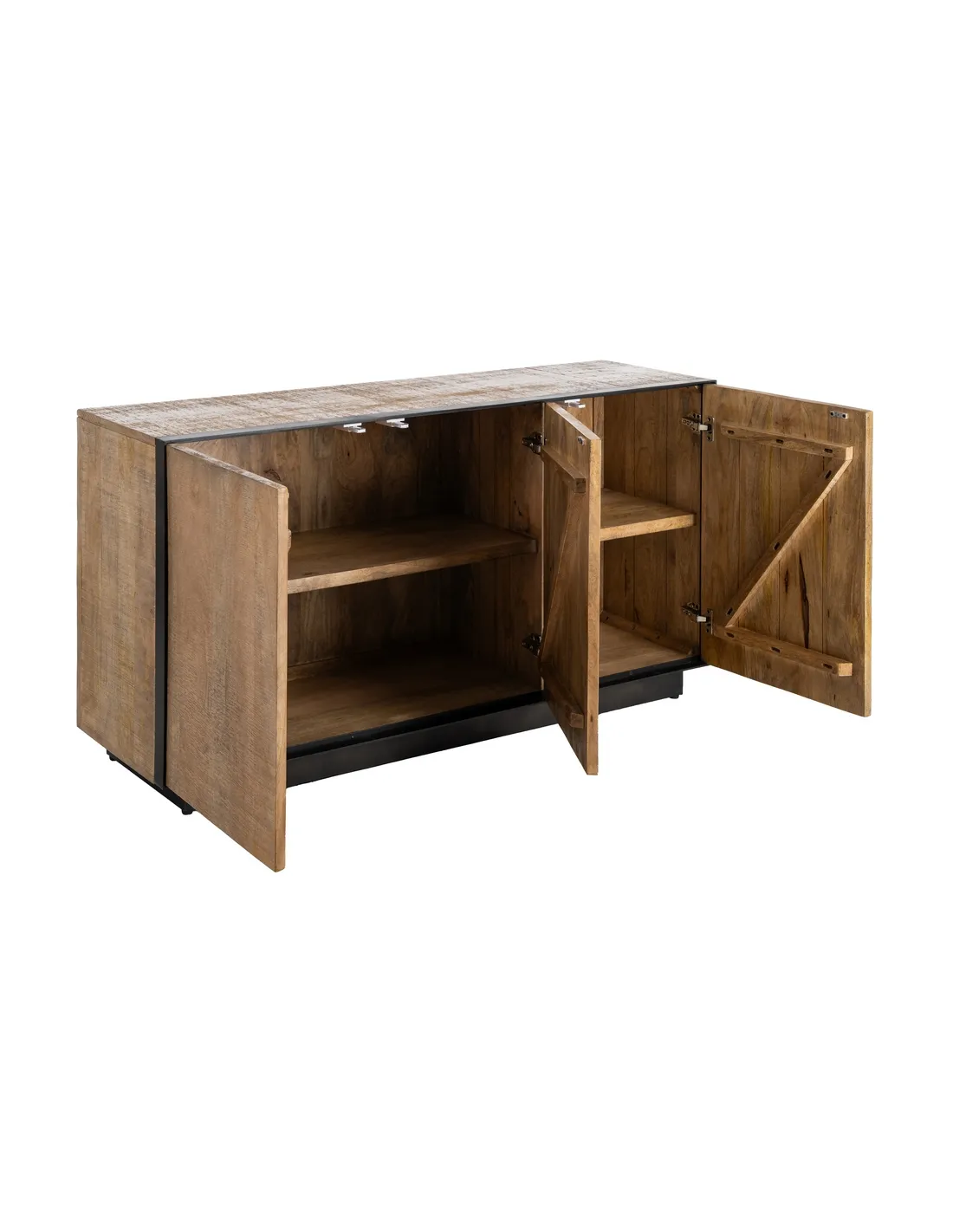 Buffet moderne chic Bas 3 portes en Bois de manguier Naturel Métal Noir Ohio - 6
