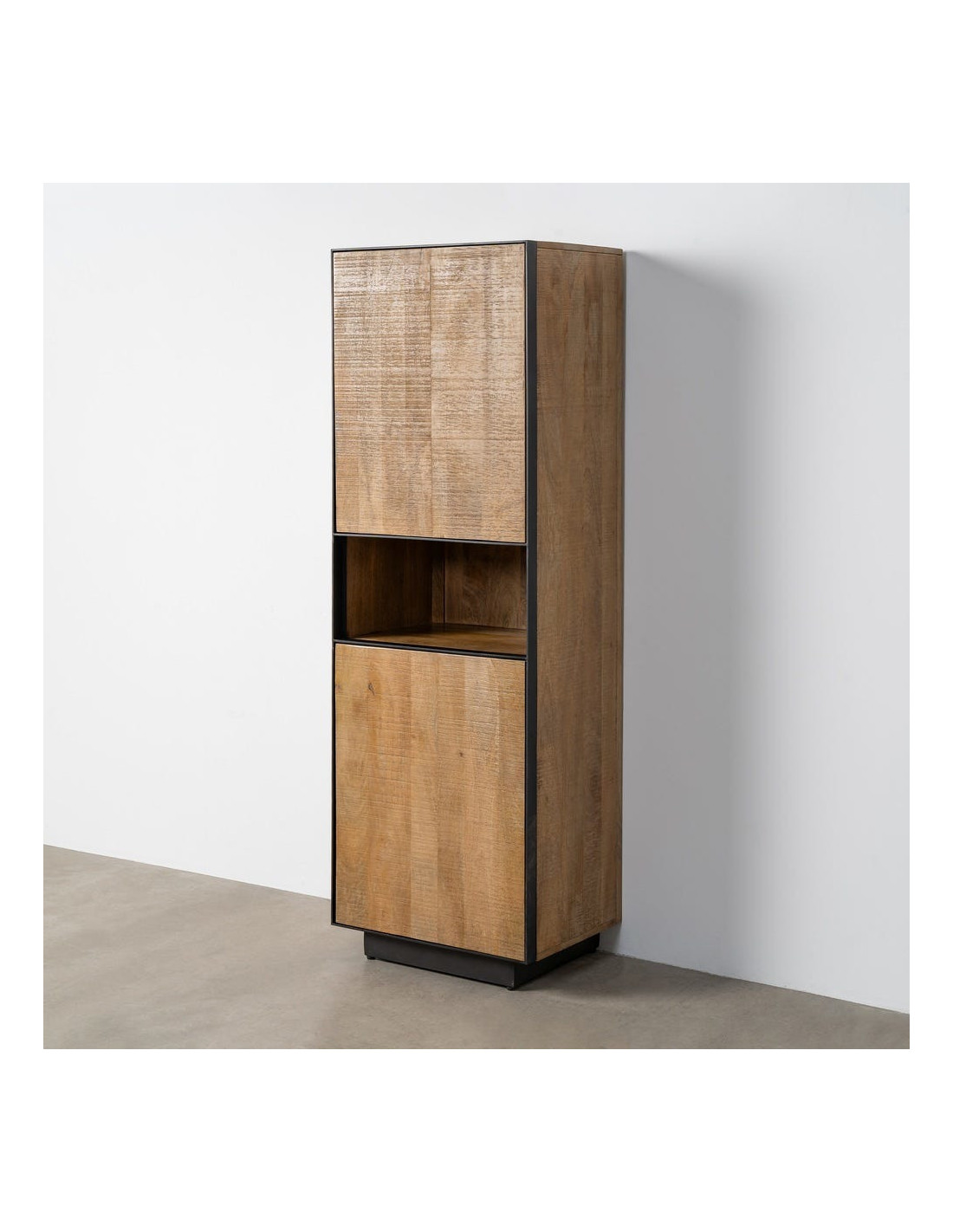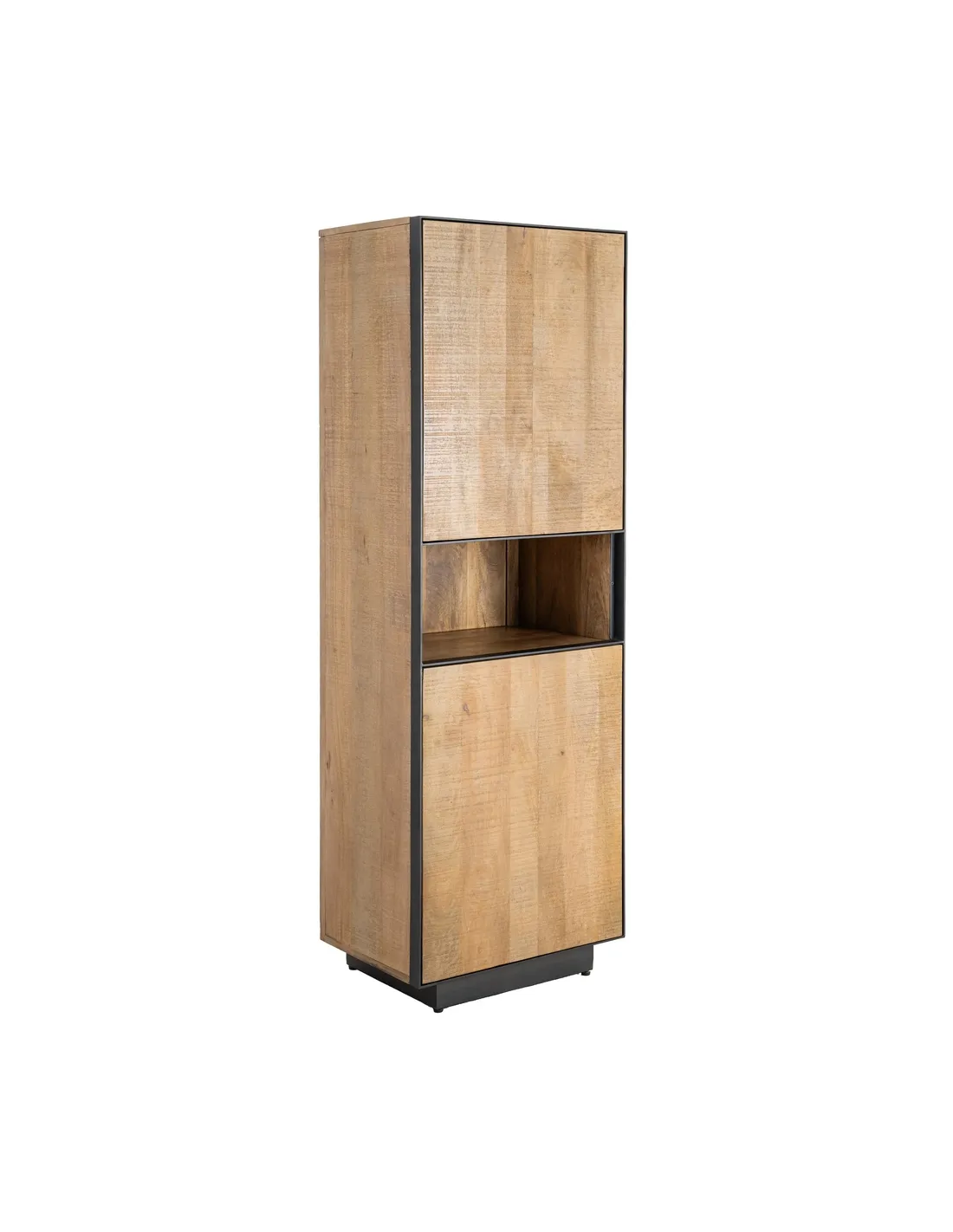 Buffet moderne chic Haut 2 portes 1 niche en Bois de manguier Naturel Métal Noir Ohio