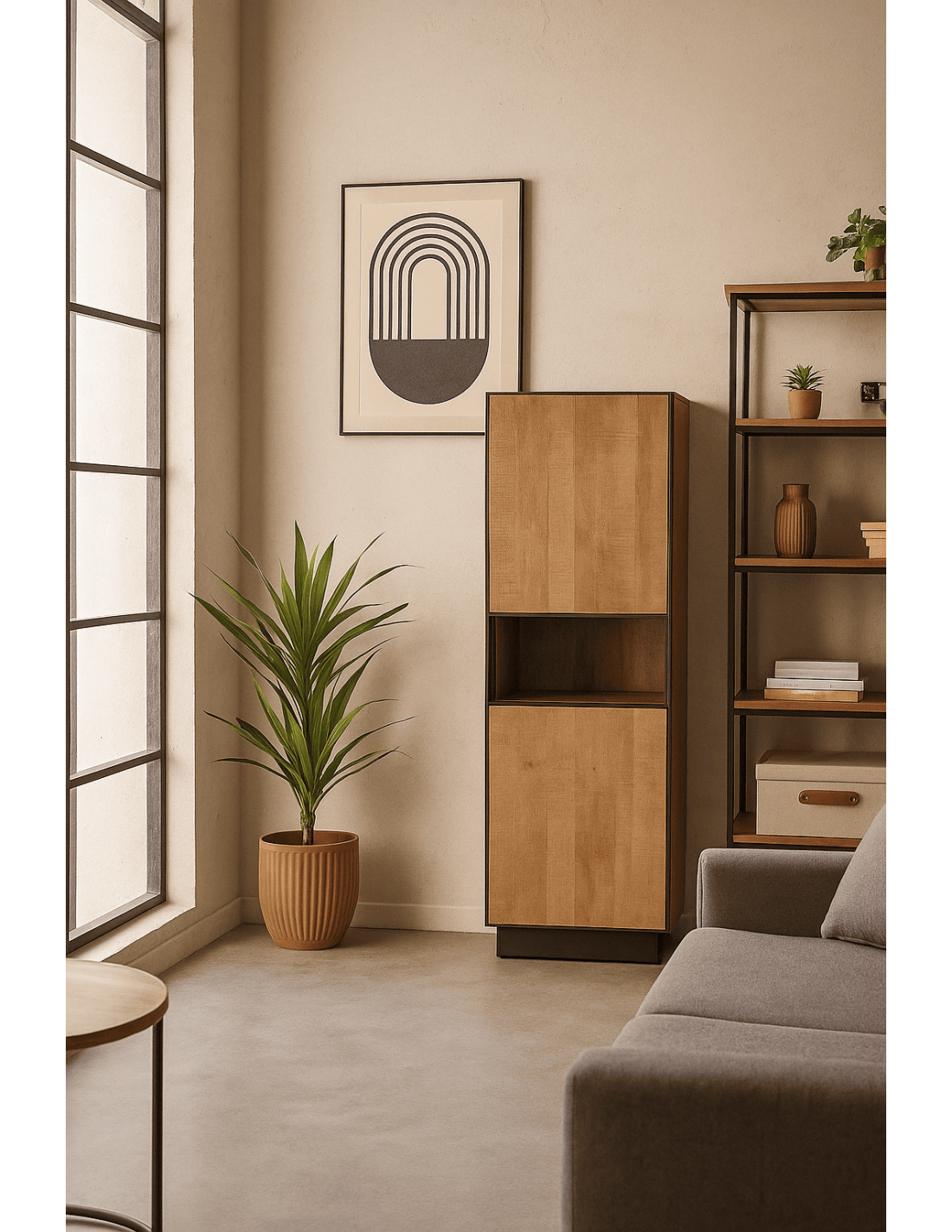 Buffet moderne chic Haut 2 portes 1 niche en Bois de manguier Naturel Métal Noir Ohio - 2