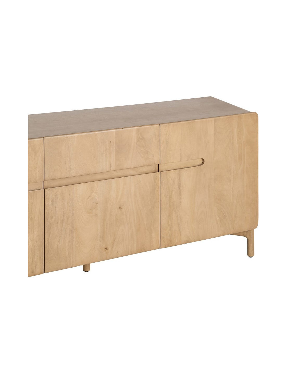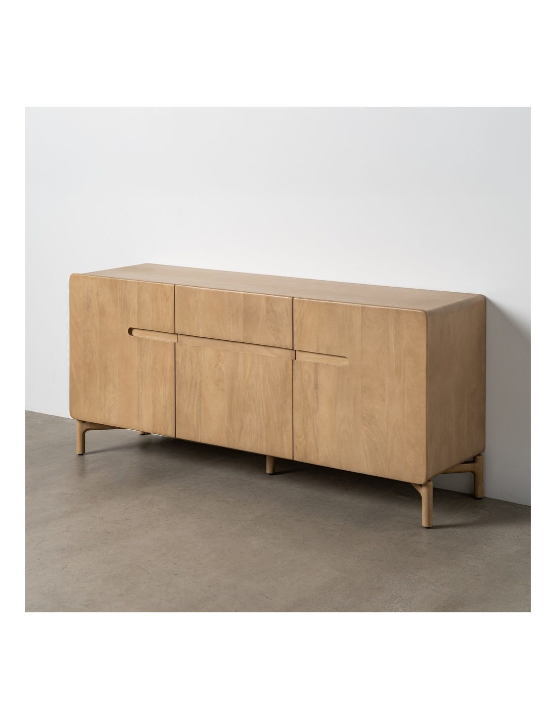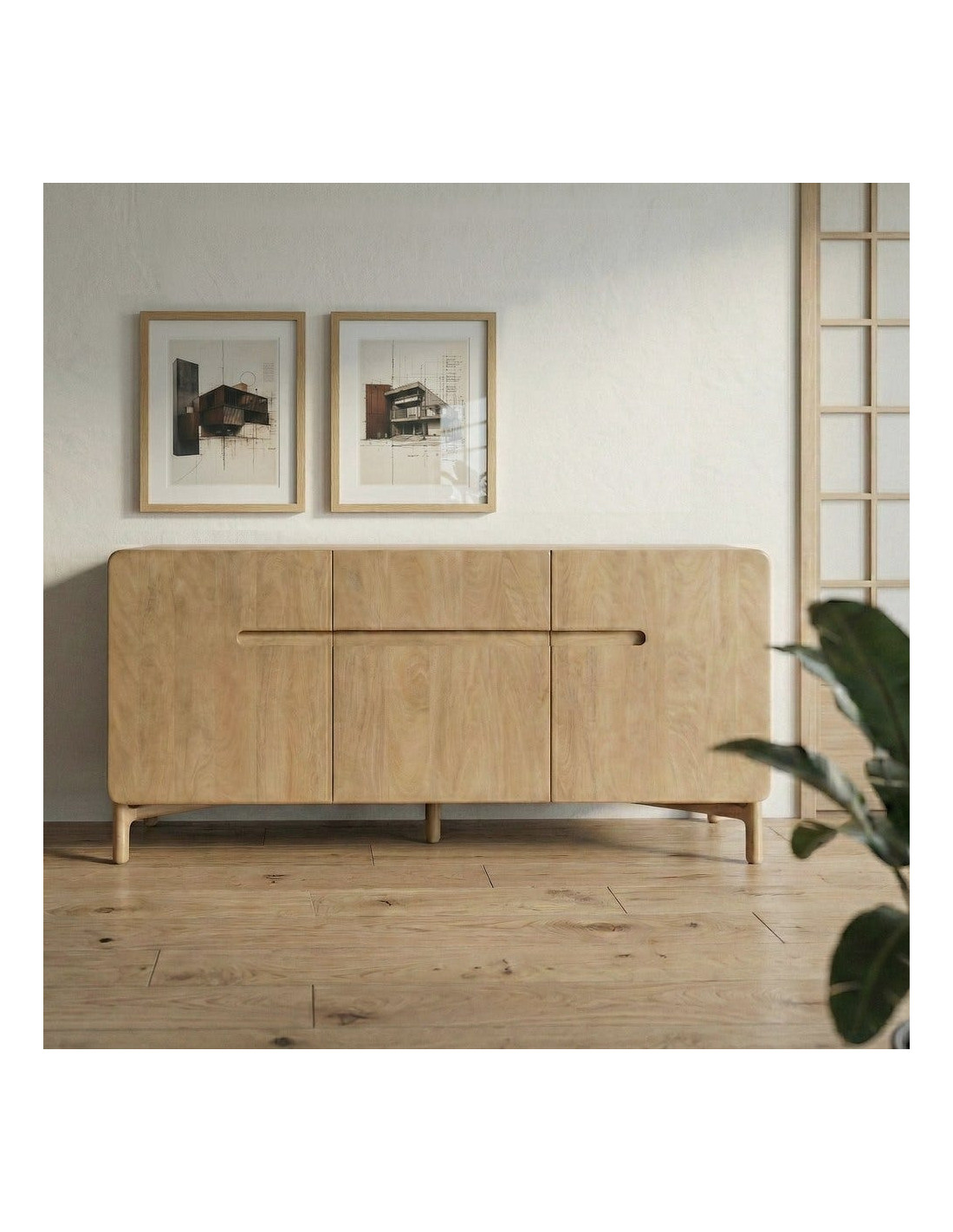 Buffet tv japandi minimaliste lignes douces Bas 3 portes 160 cm Bois de manguier Naturel Emorio