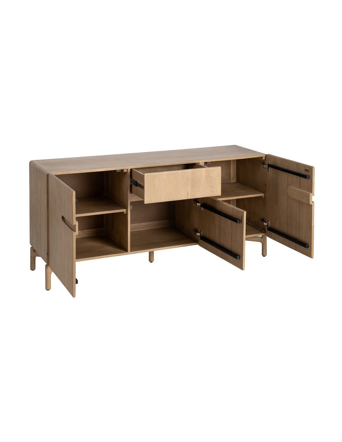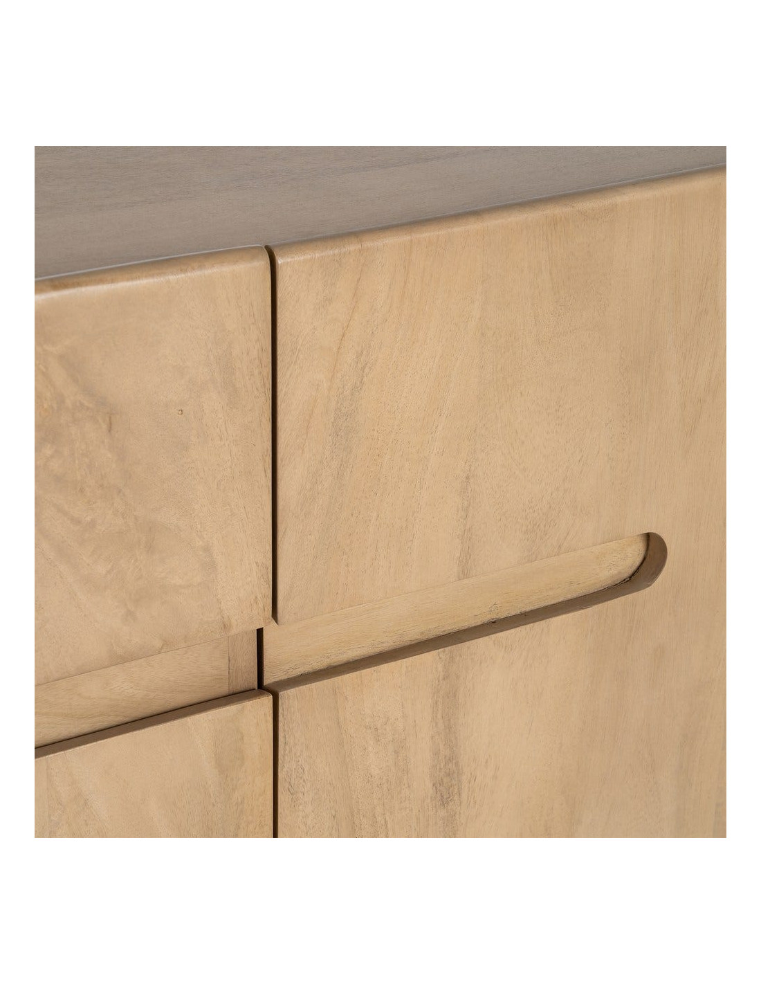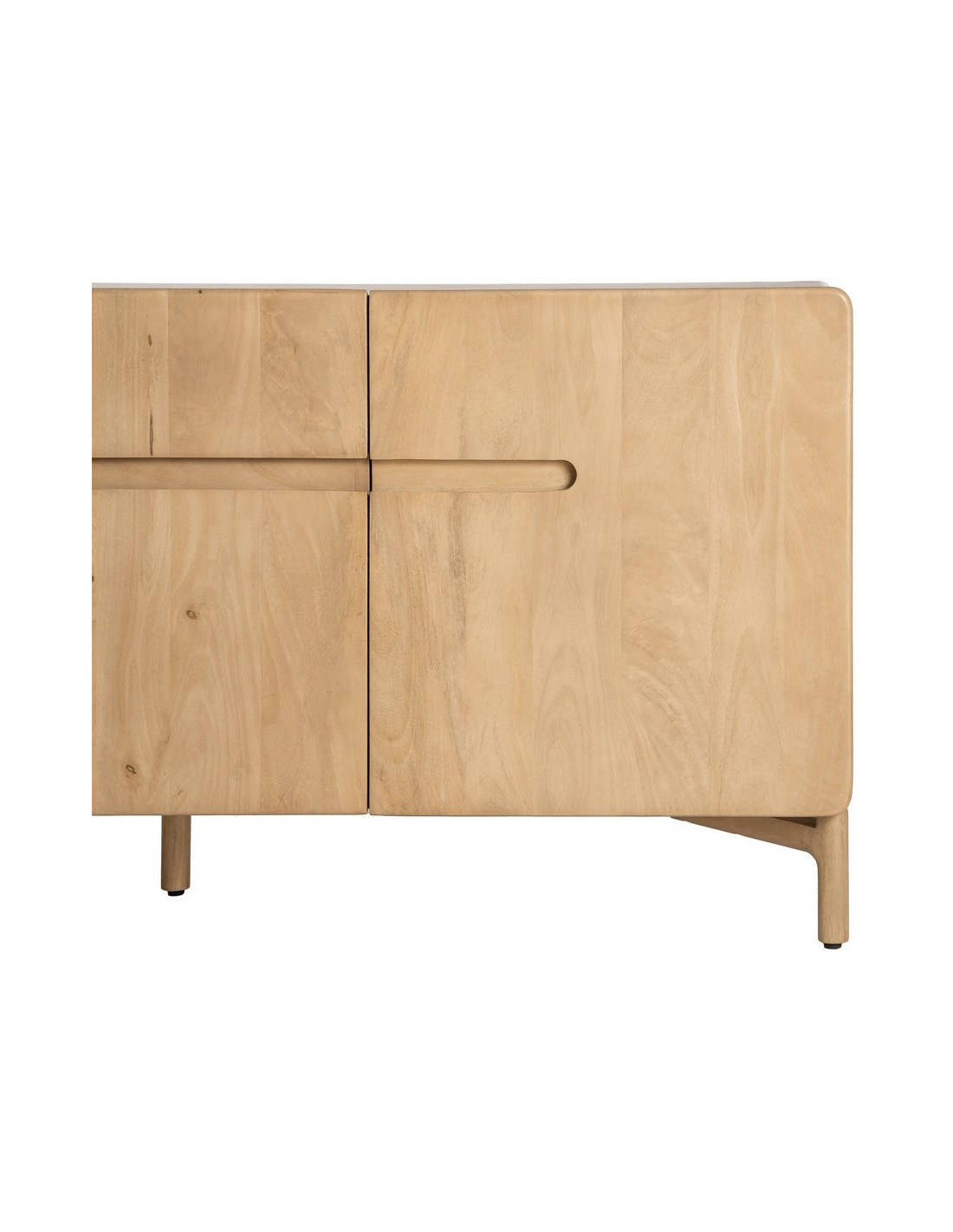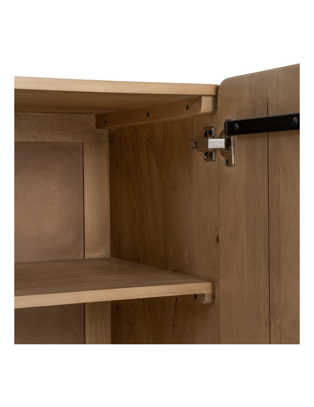 Buffet tv japandi minimaliste lignes douces Bas 3 portes 160 cm Bois de manguier Naturel Emorio