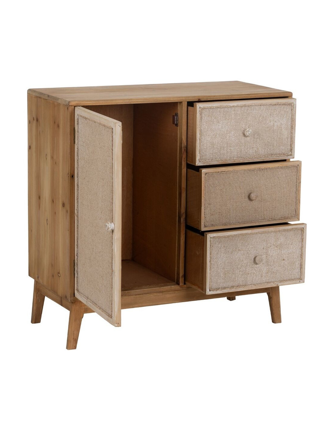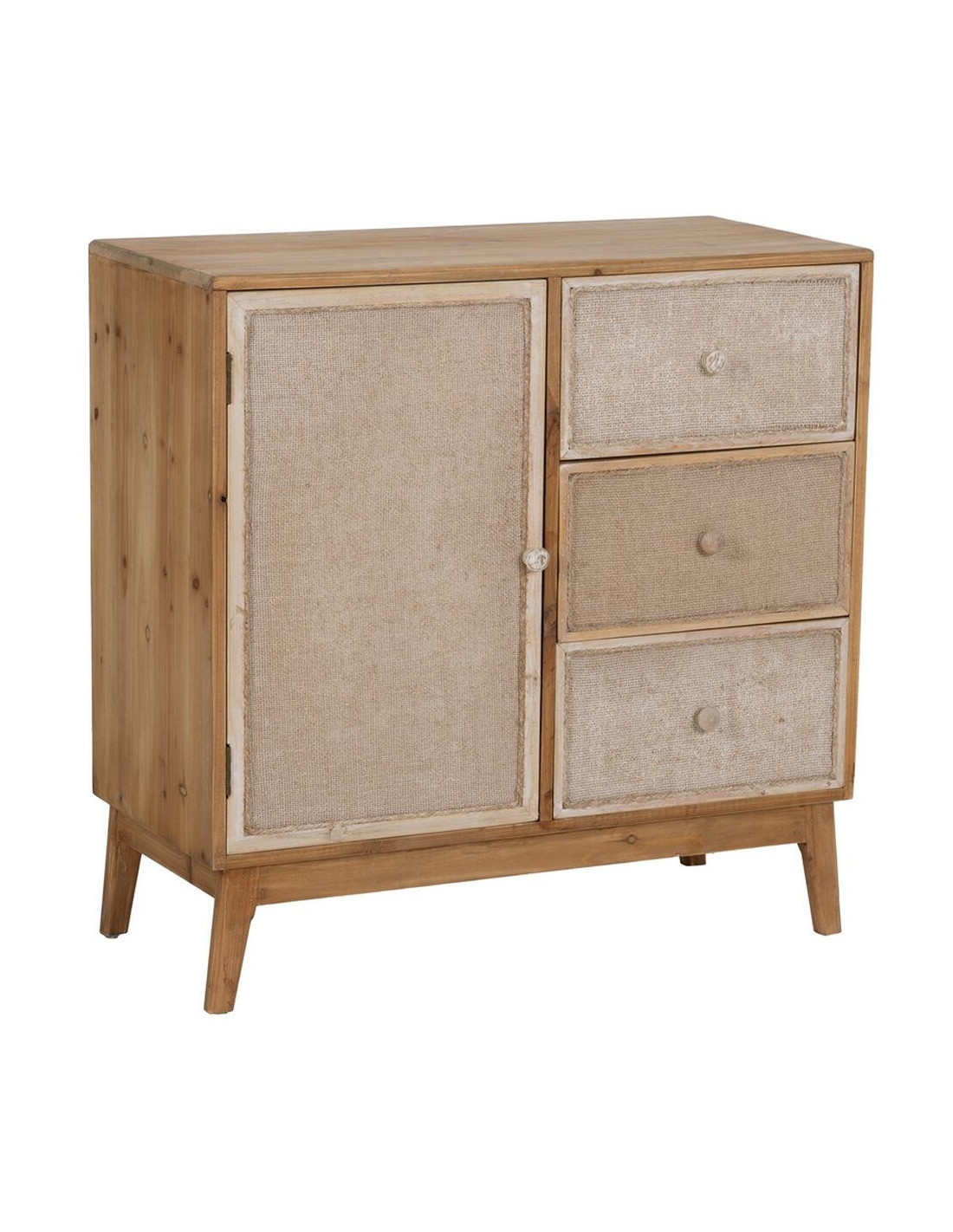Buffet vintage Bas 1 porte 3 tiroirs en Bois de sapin Naturel Beige Gerel