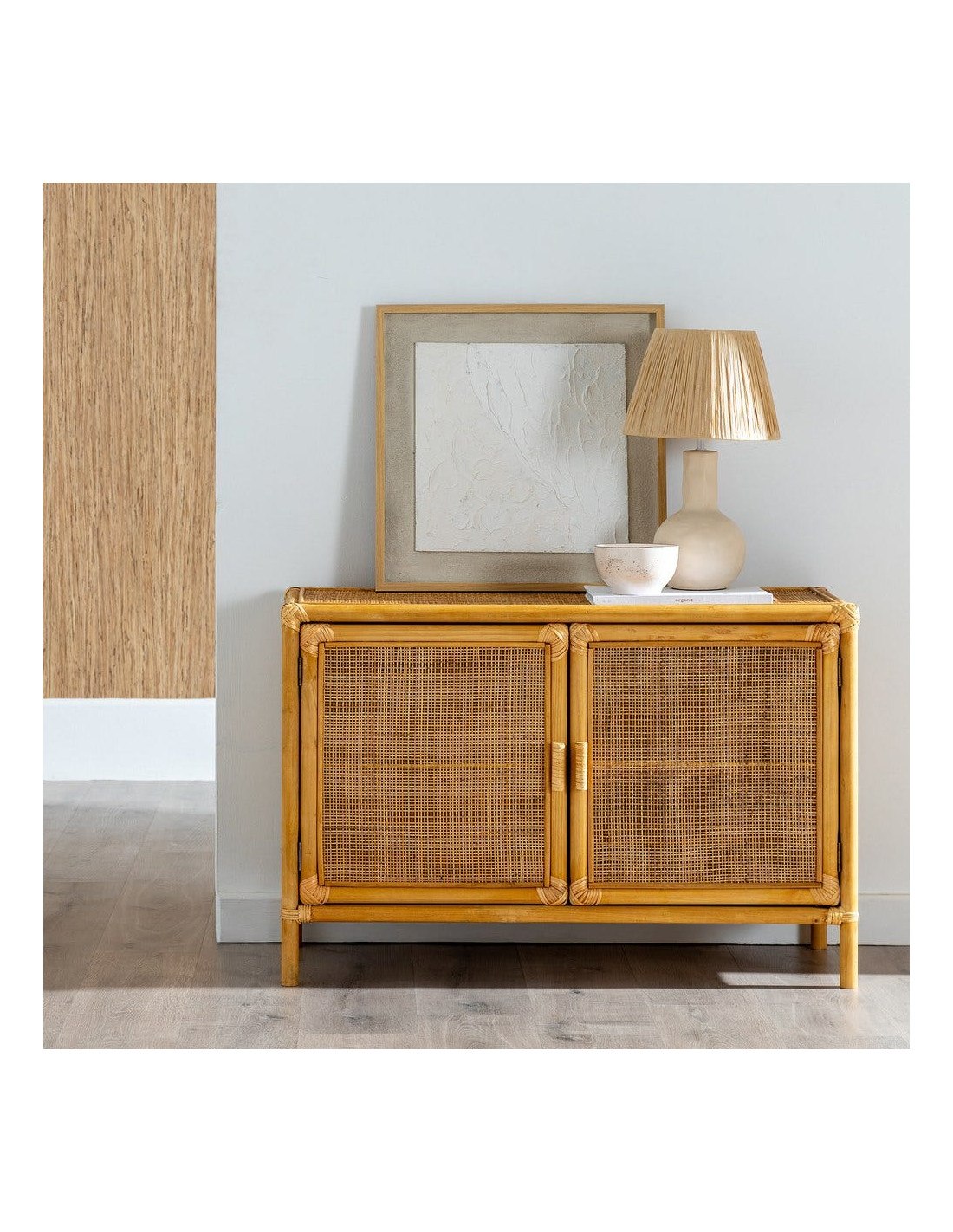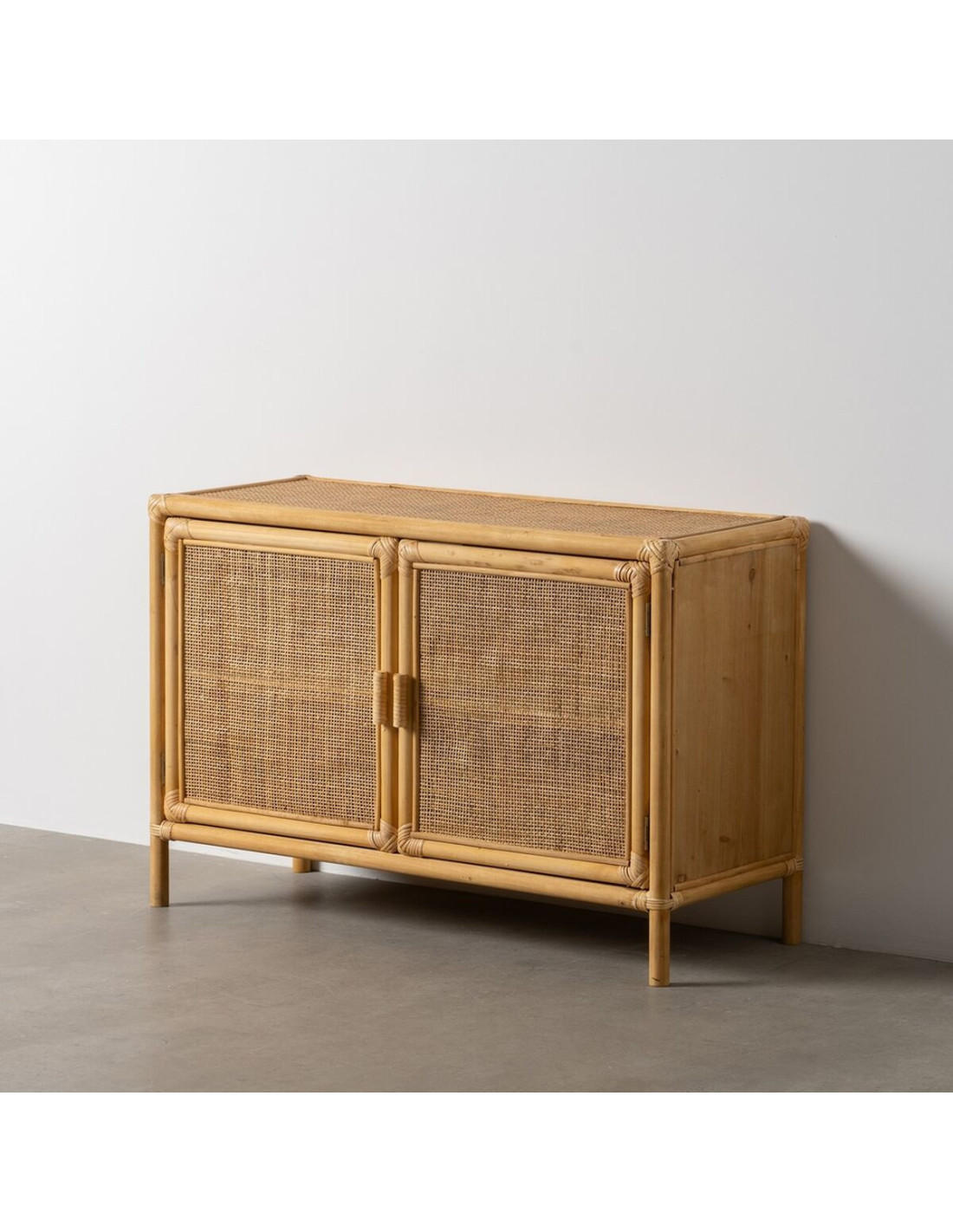 Apportez du rangement et du style à votre intérieur avec ce buffet bas en rotin naturel, à la fois fonctionnel et décoratif.
