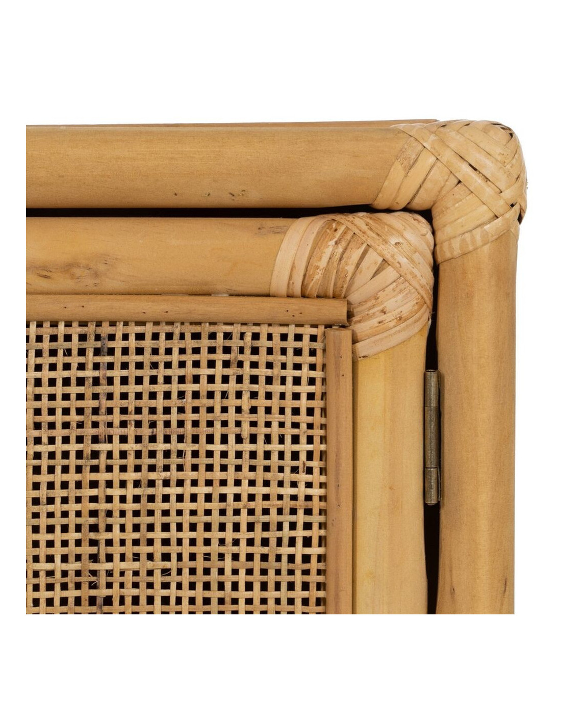Les deux portes en cannage offrent un accès facile à l’intérieur du meuble tout en conservant une esthétique légère. Avec des dimensions d’environ 45 cm de largeur pour 48 cm de hauteur chacune, elles permettent de ranger facilement vos objets sans contrainte. Le cannage laisse passer la lumière et évite l’effet massif souvent présent sur les meubles fermés. Vous bénéficiez d’un rangement discret et élégant, parfaitement adapté à un usage quotidien.