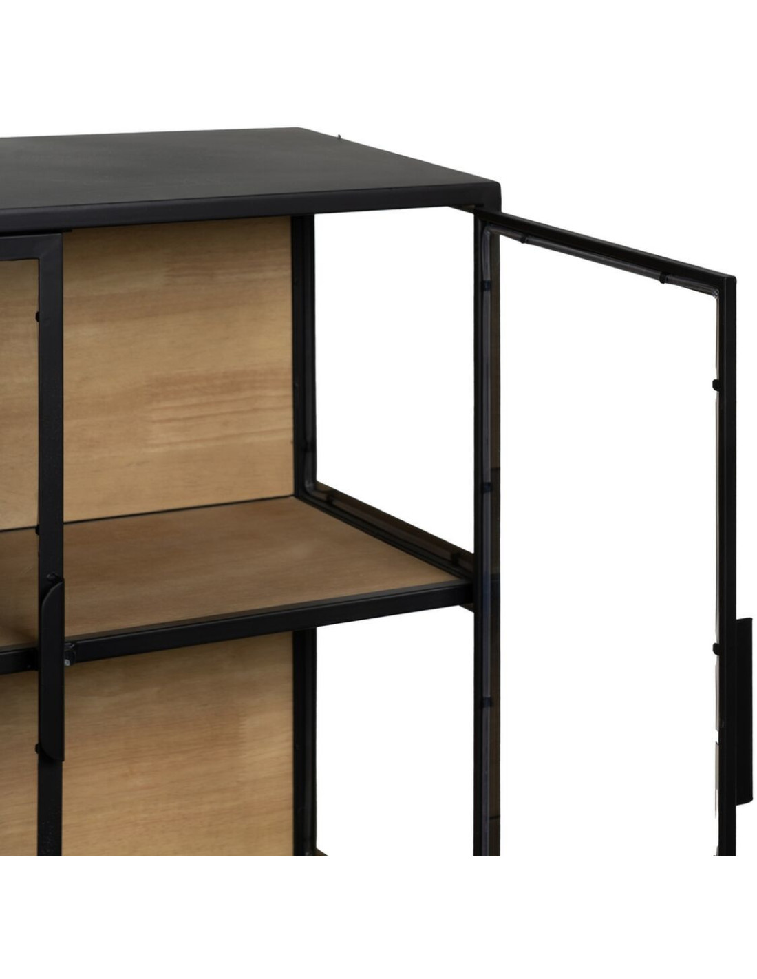 Buffet Vitrine industriel chic Bas 4 portes en Verre Transparent Métal Noir Bois MDF Naturel Barbate - 6