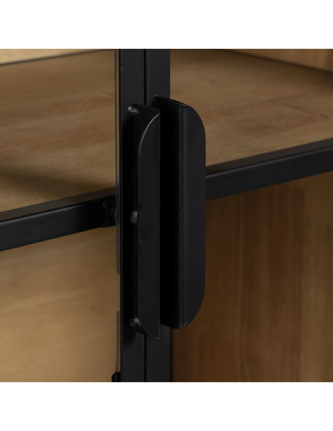 Buffet Vitrine industriel chic Bas 4 portes en Verre Transparent Métal Noir Bois MDF Naturel Barbate - 4