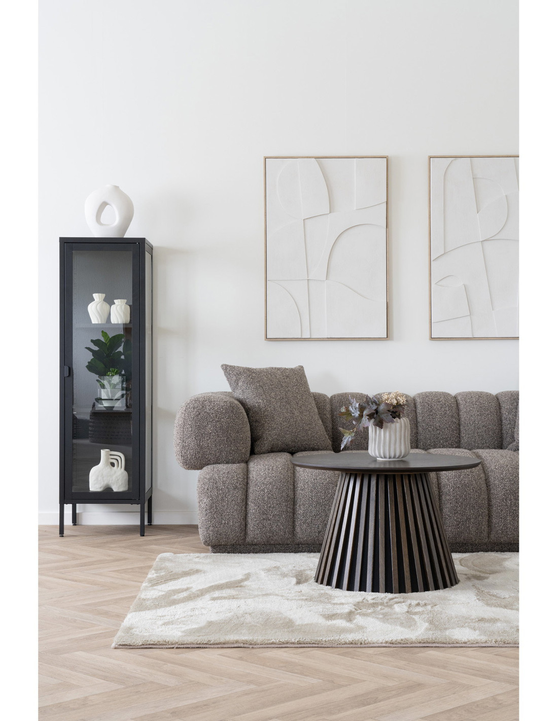 Buffet Vitrine moderne Haut 1 porte Métal Noir Verre Transparent Brisbane