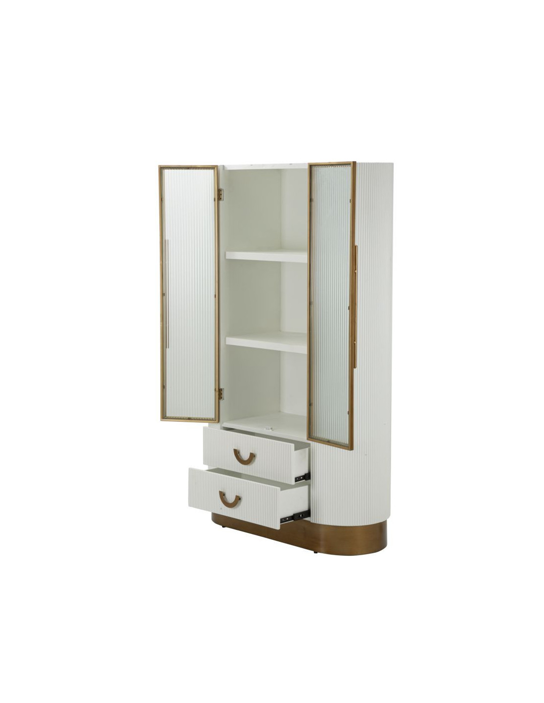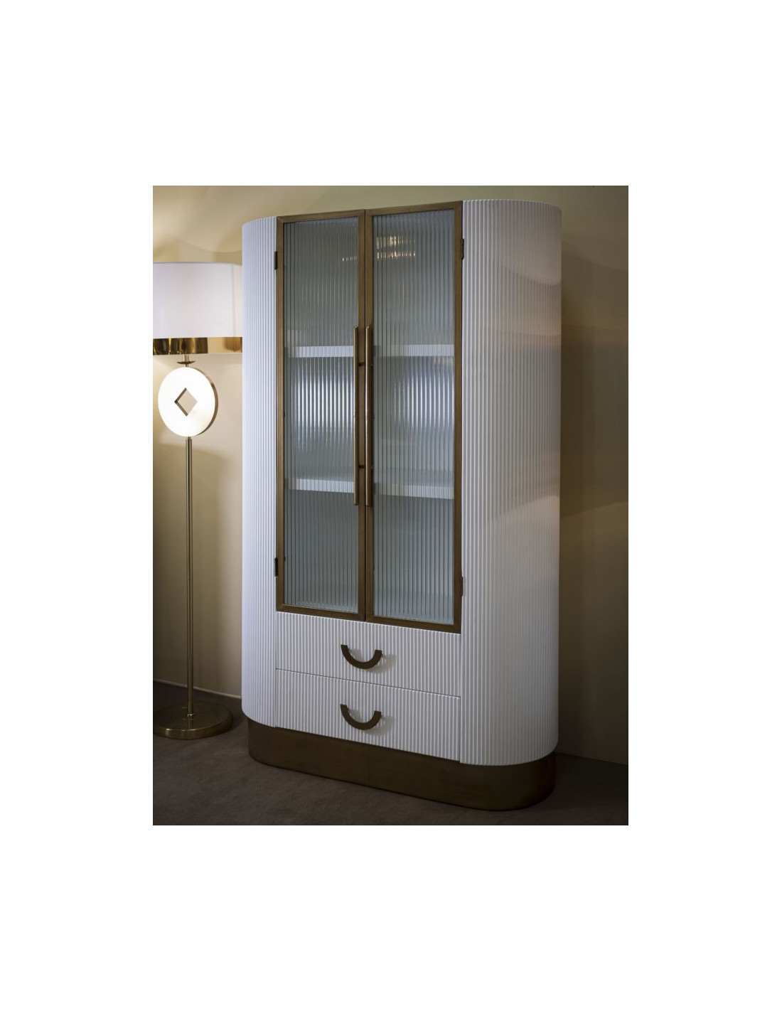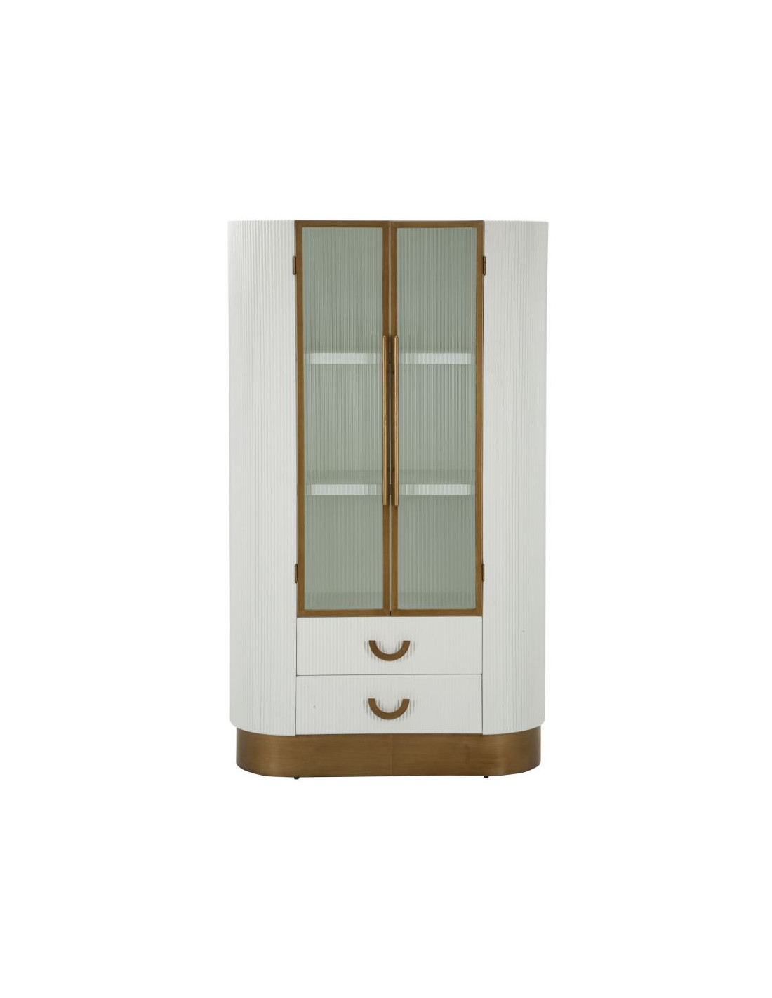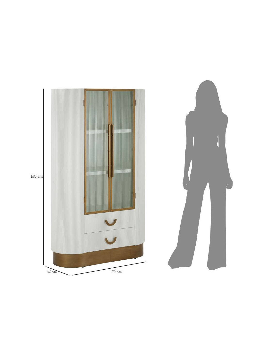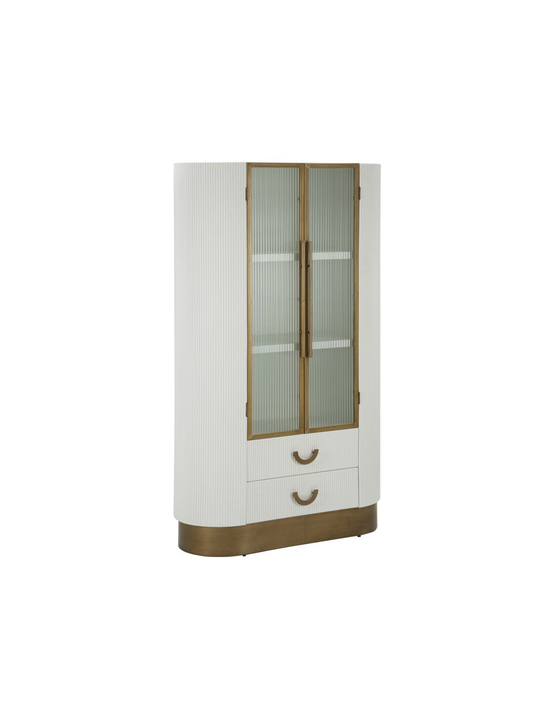 Buffet vitrine moderne Haut 2 portes 2 tiroirs en Bois de frêne Marron Blanc Métal Doré Tolosa