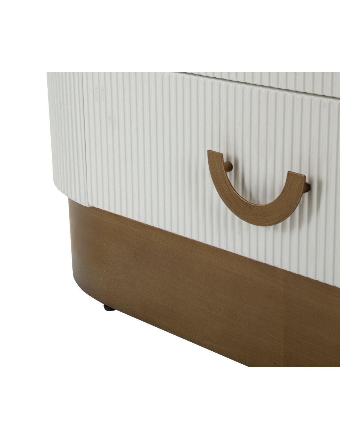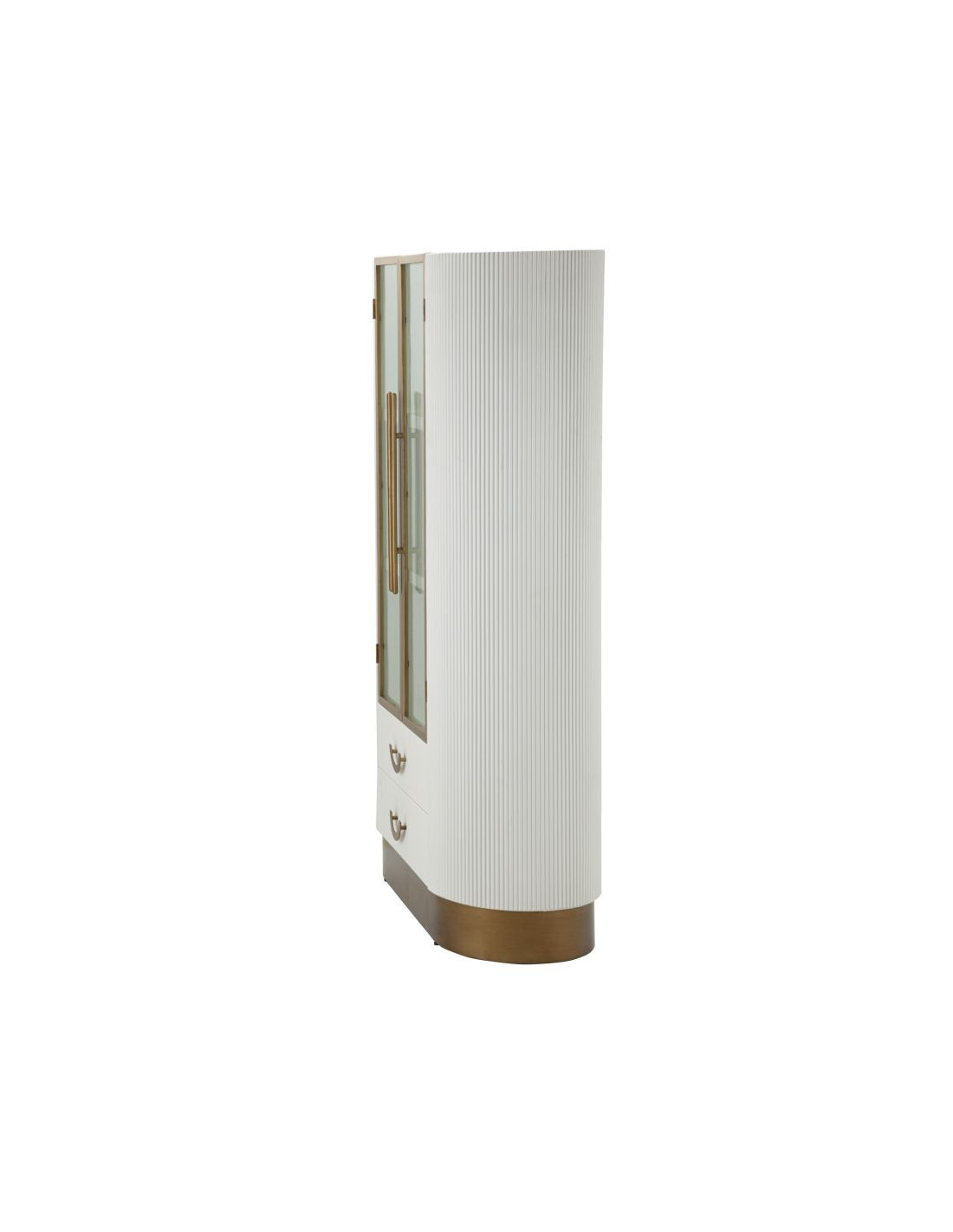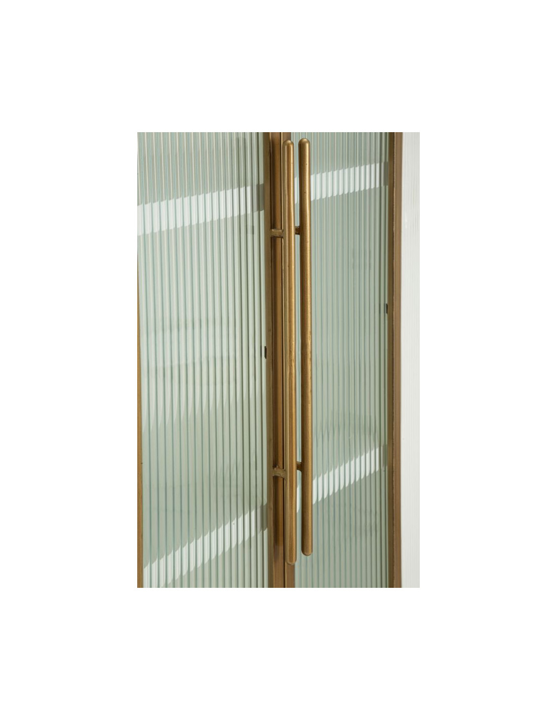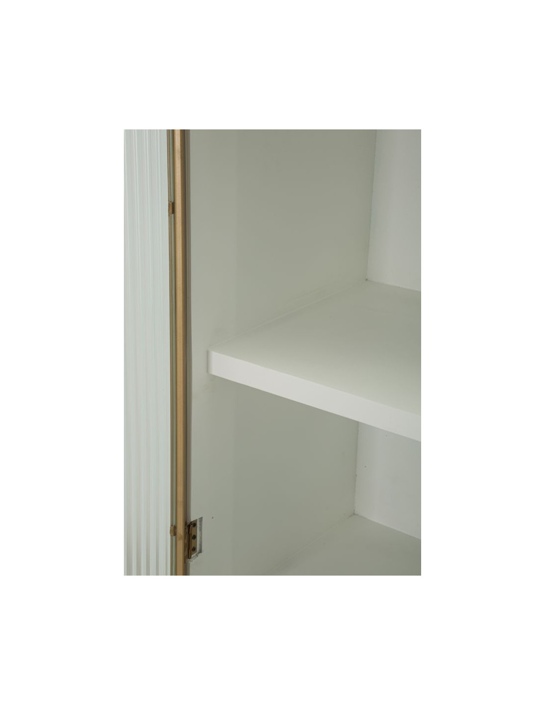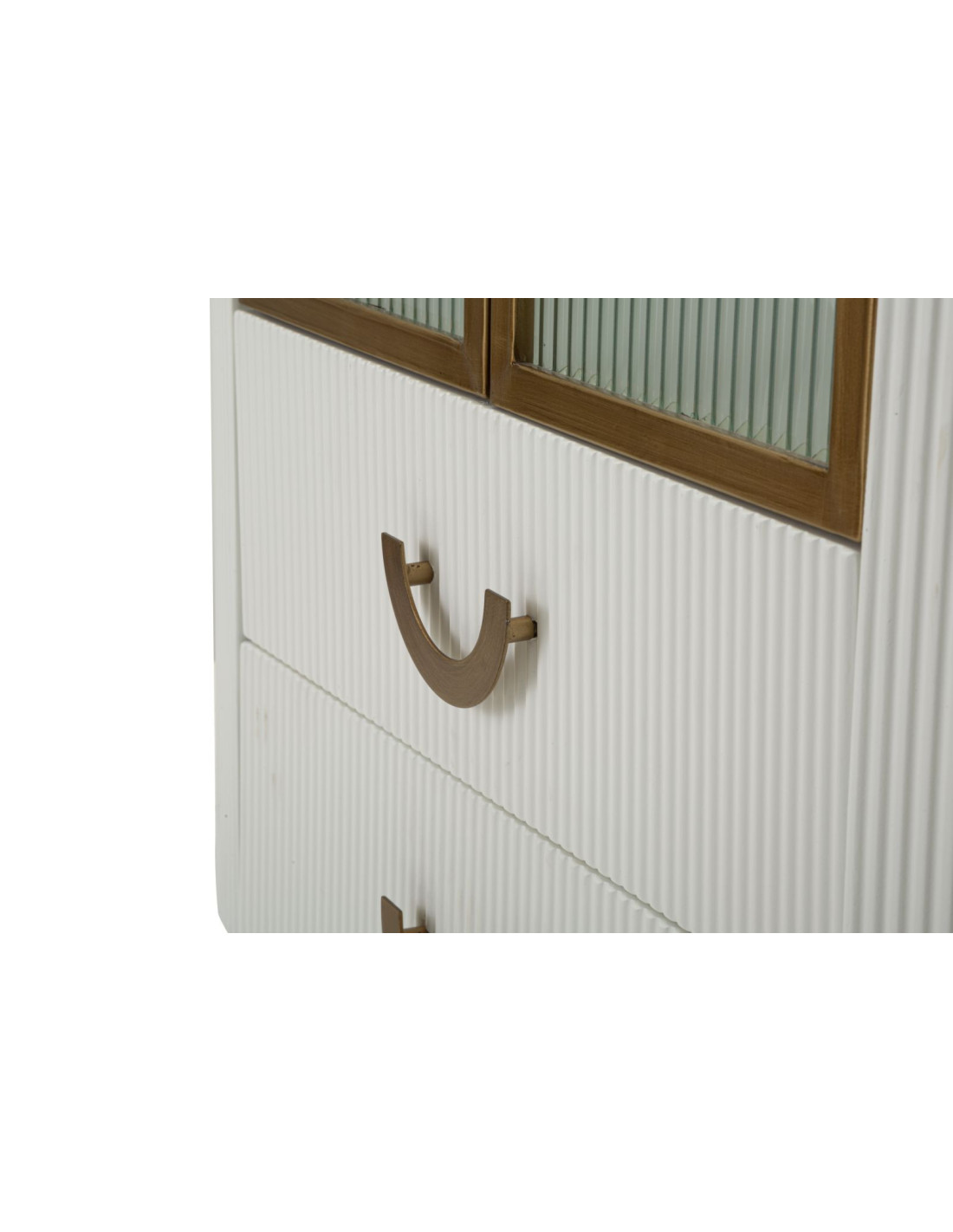 Buffet vitrine moderne Haut 2 portes 2 tiroirs en Bois de frêne Marron Blanc Métal Doré Tolosa