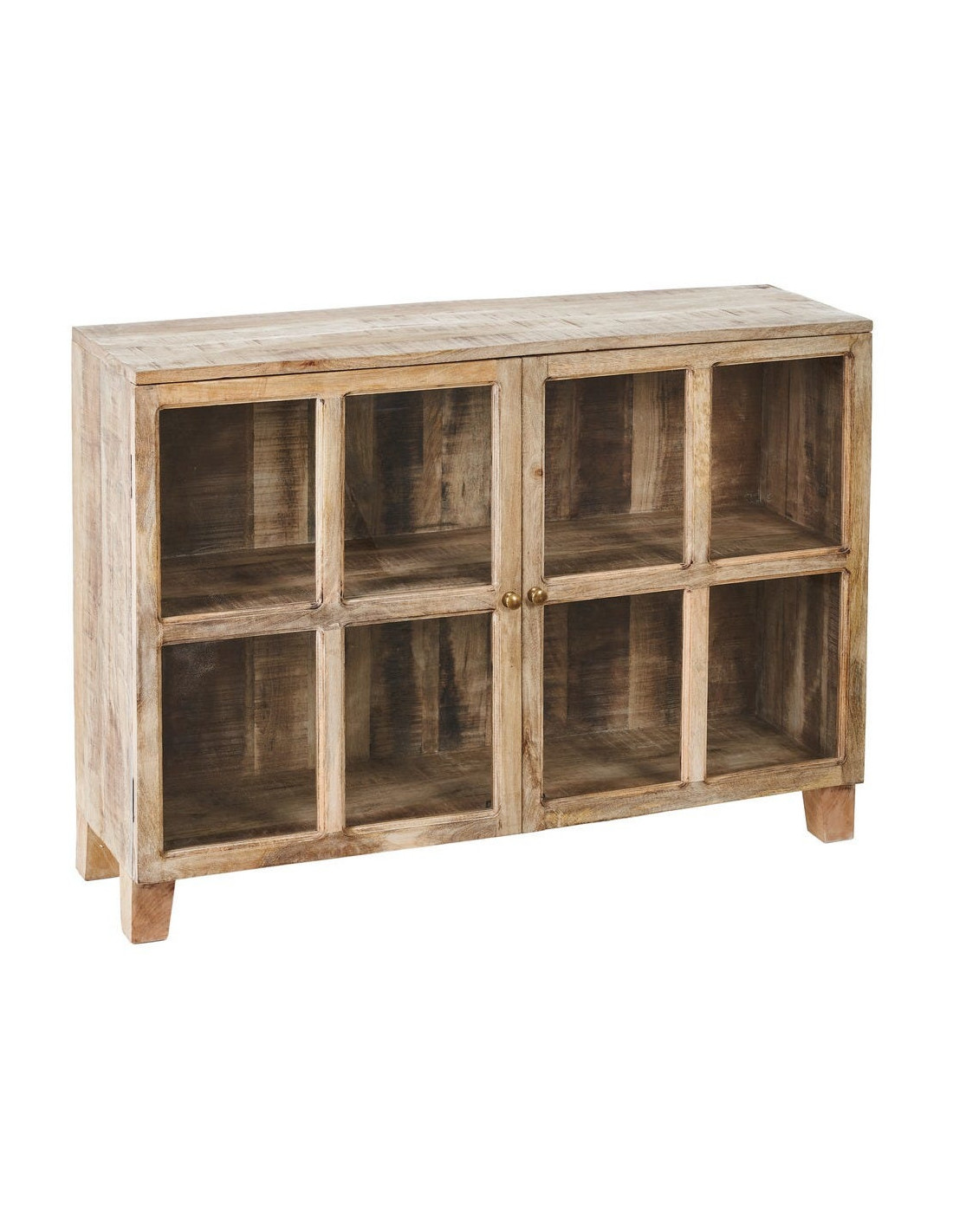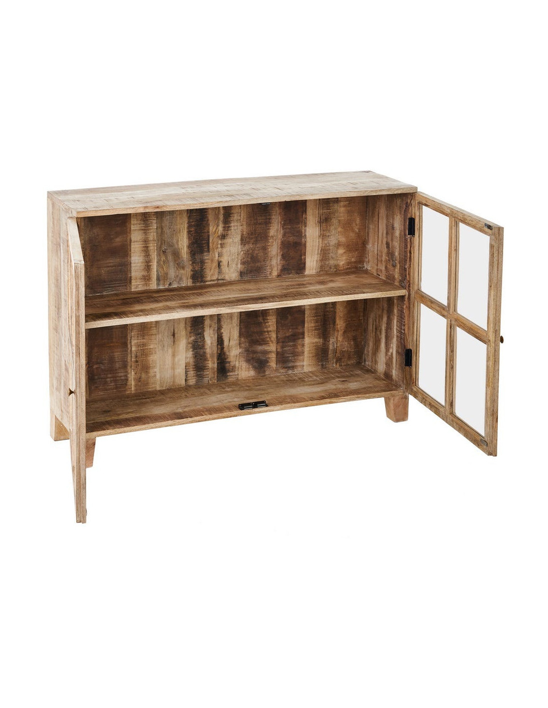 Buffet Vitrine rustique chic Bas 2 portes 2 étagères en Bois de manguier Naturel Verre Transparent Cala - 1