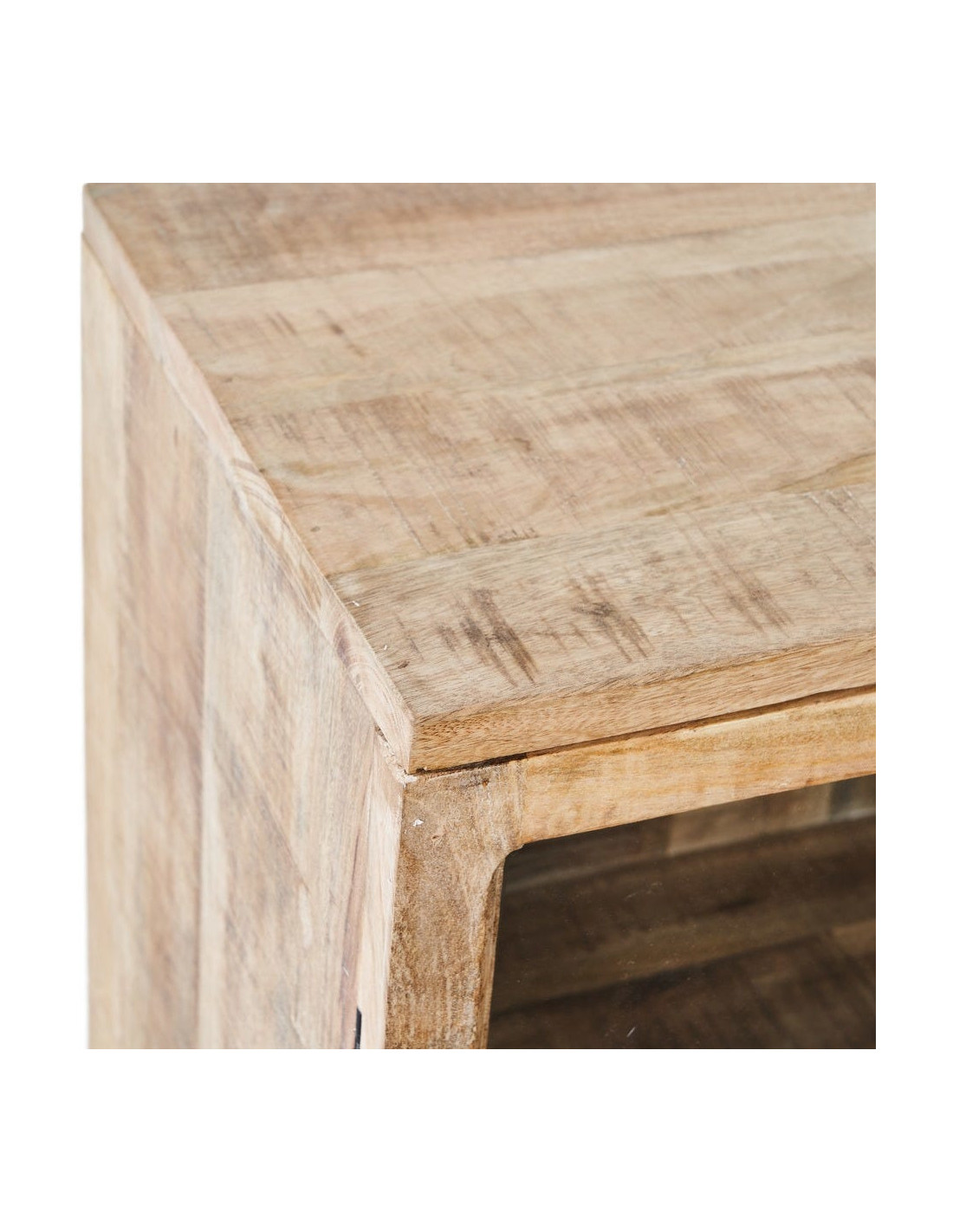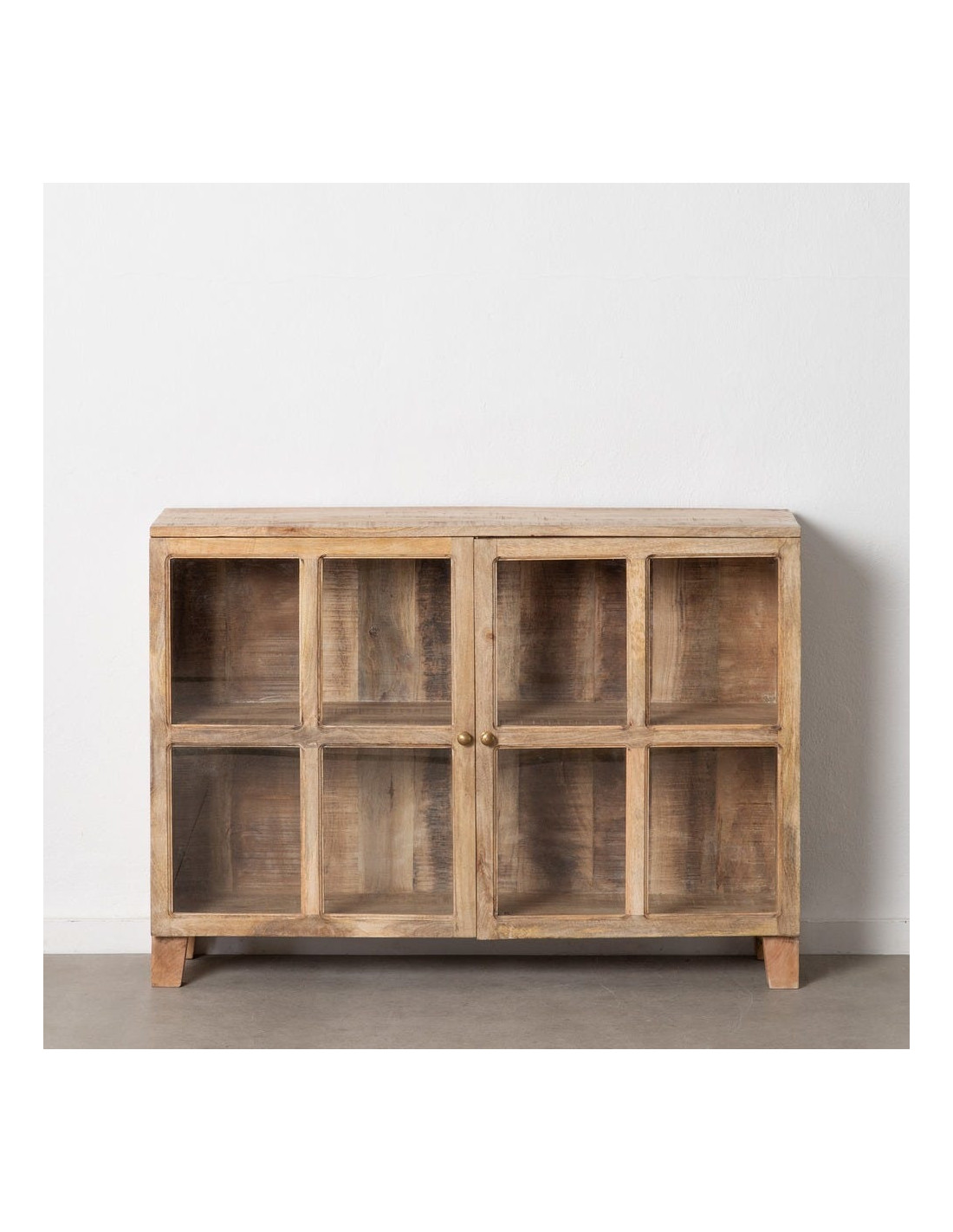 Buffet Vitrine rustique chic Bas 2 portes 2 étagères en Bois de manguier Naturel Verre Transparent Cala