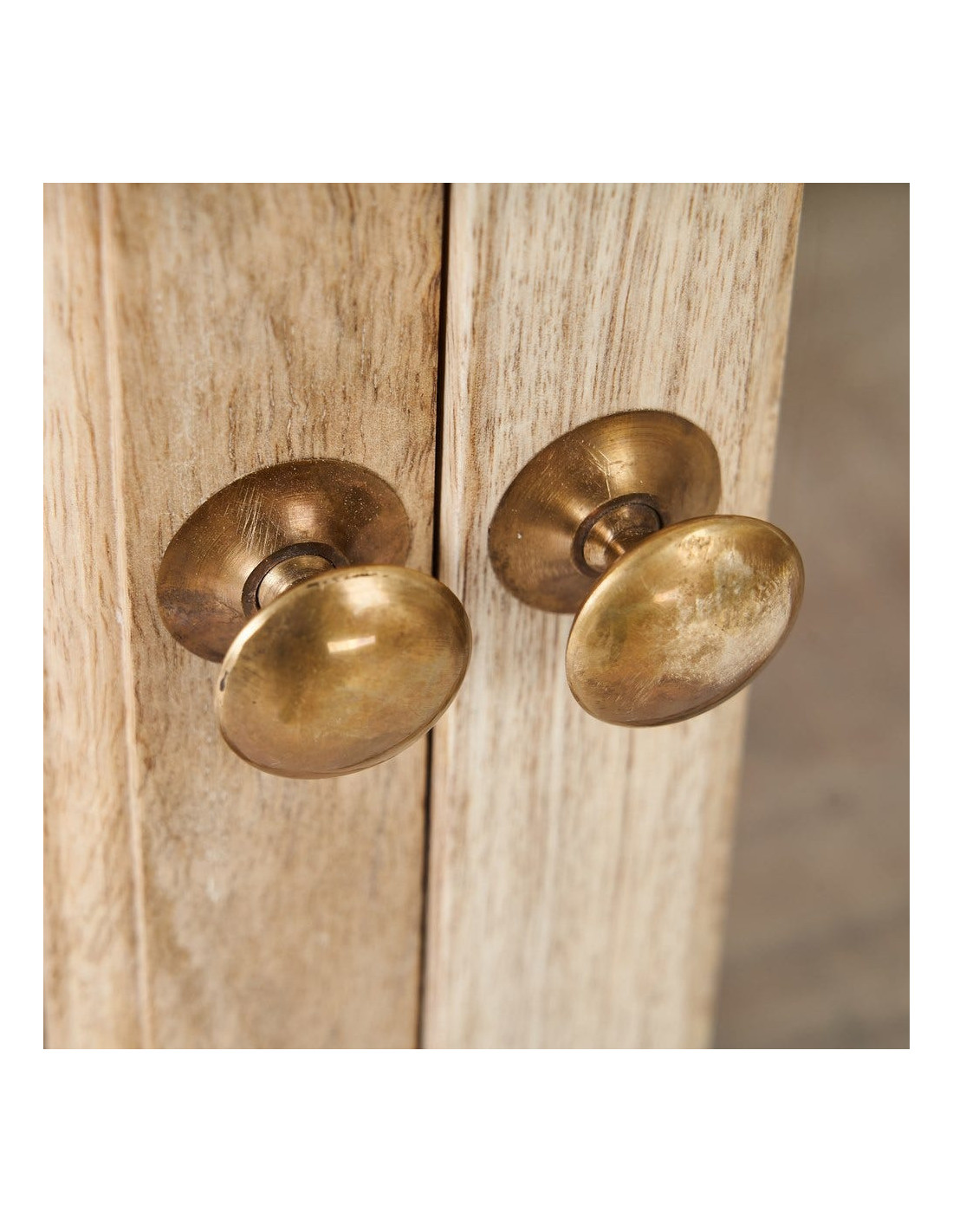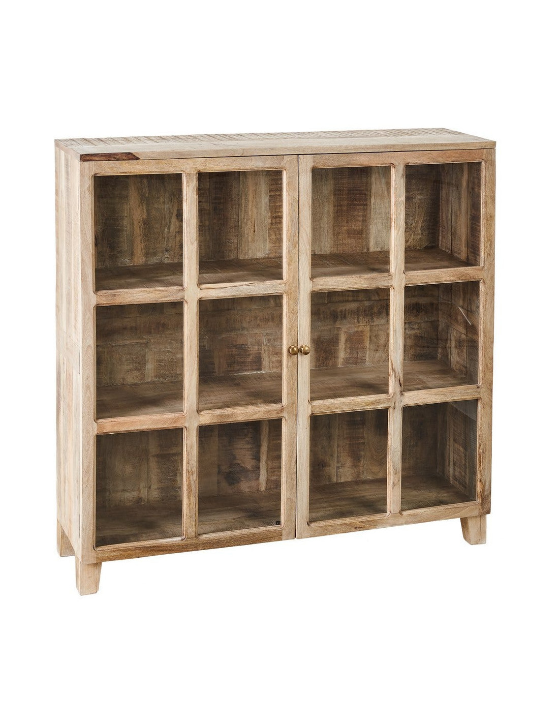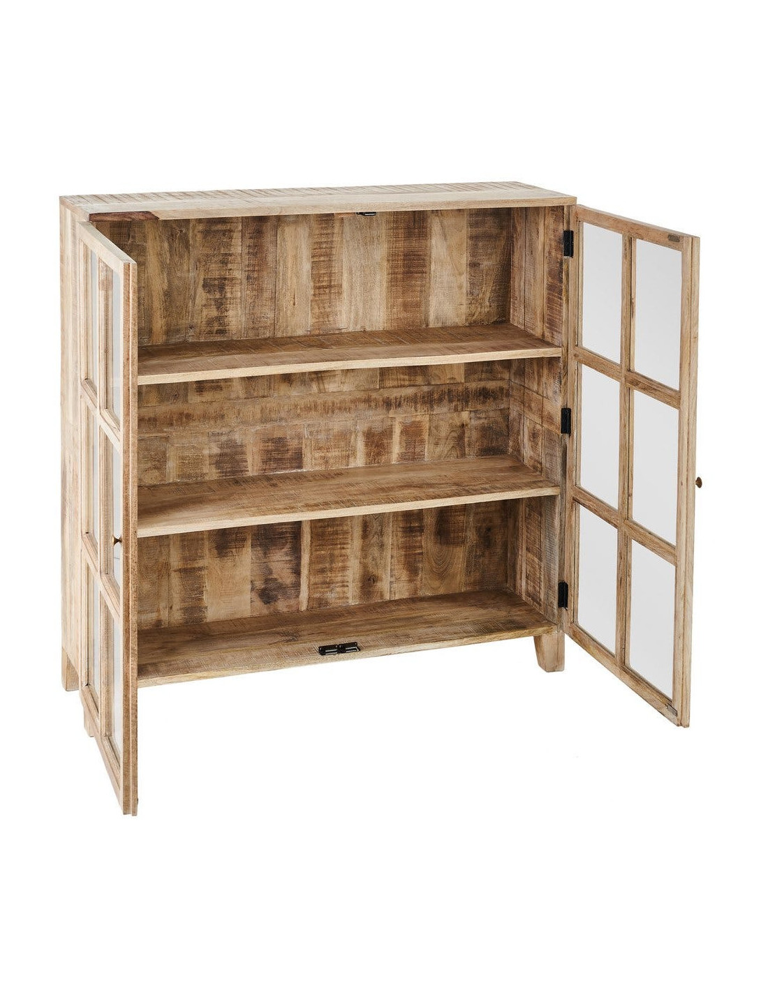 Buffet Vitrine rustique chic Bas 2 portes 3 étagères en Bois de manguier Naturel Verre Transparent Cala