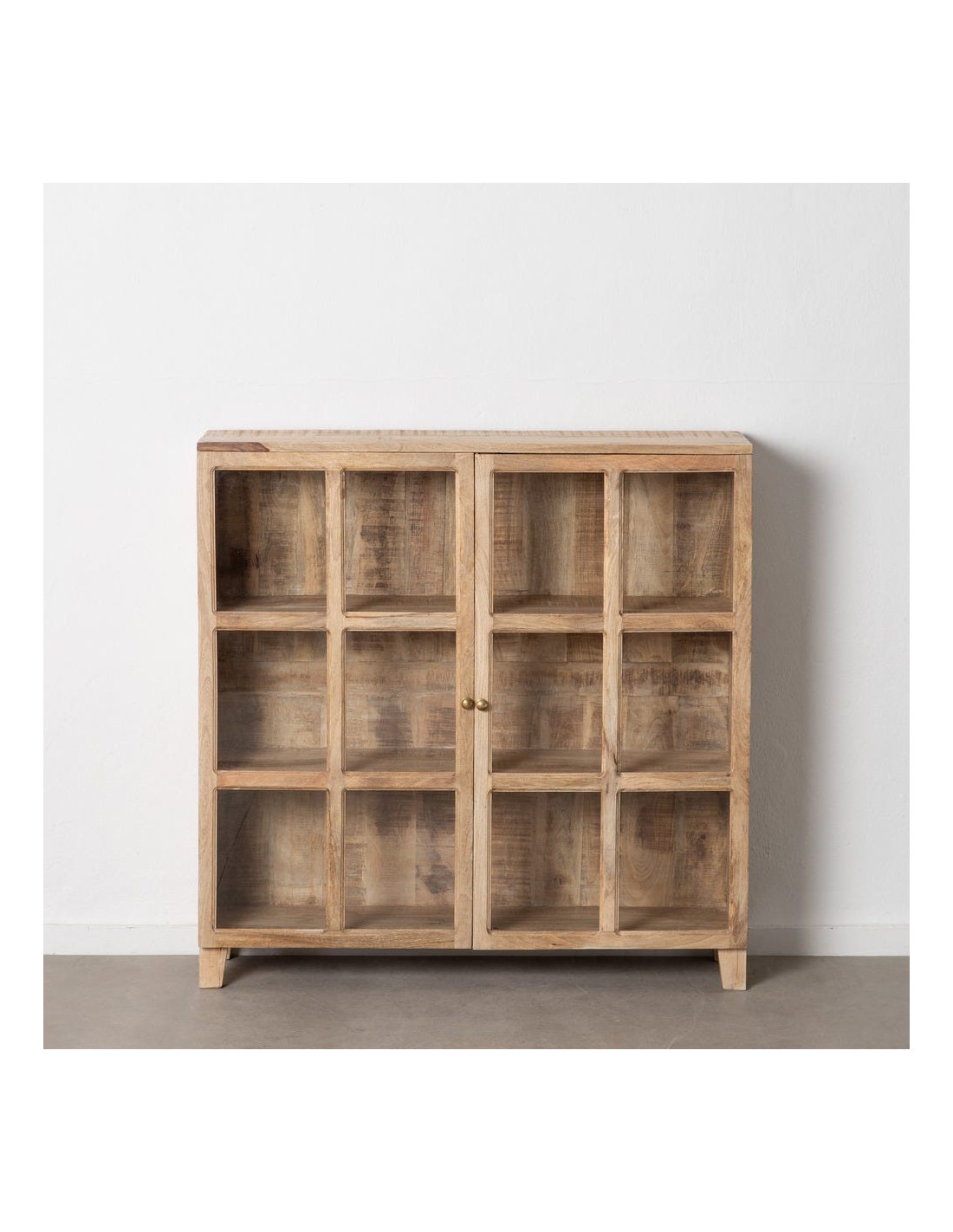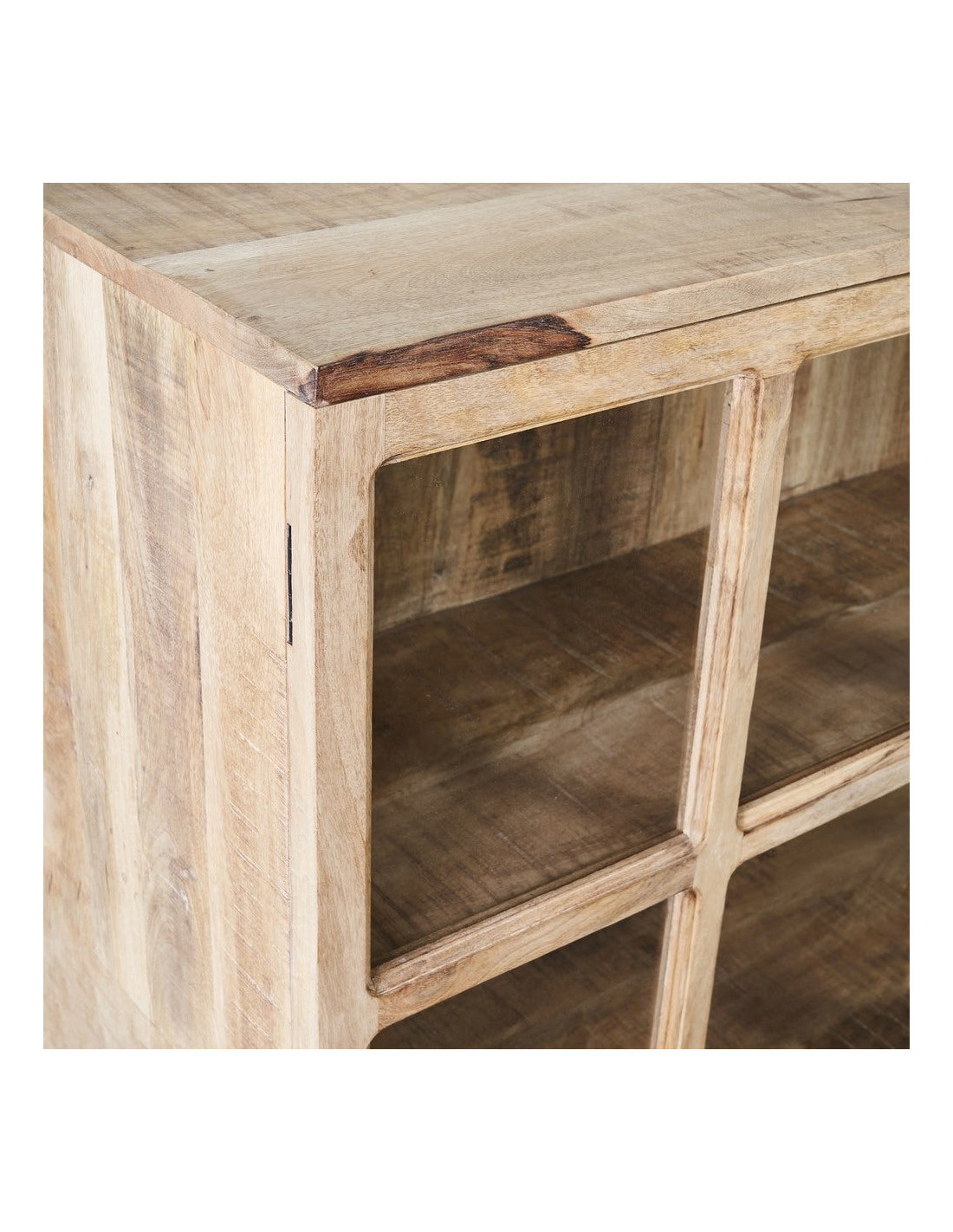 Buffet Vitrine rustique chic Bas 2 portes 3 étagères en Bois de manguier Naturel Verre Transparent Cala - 1