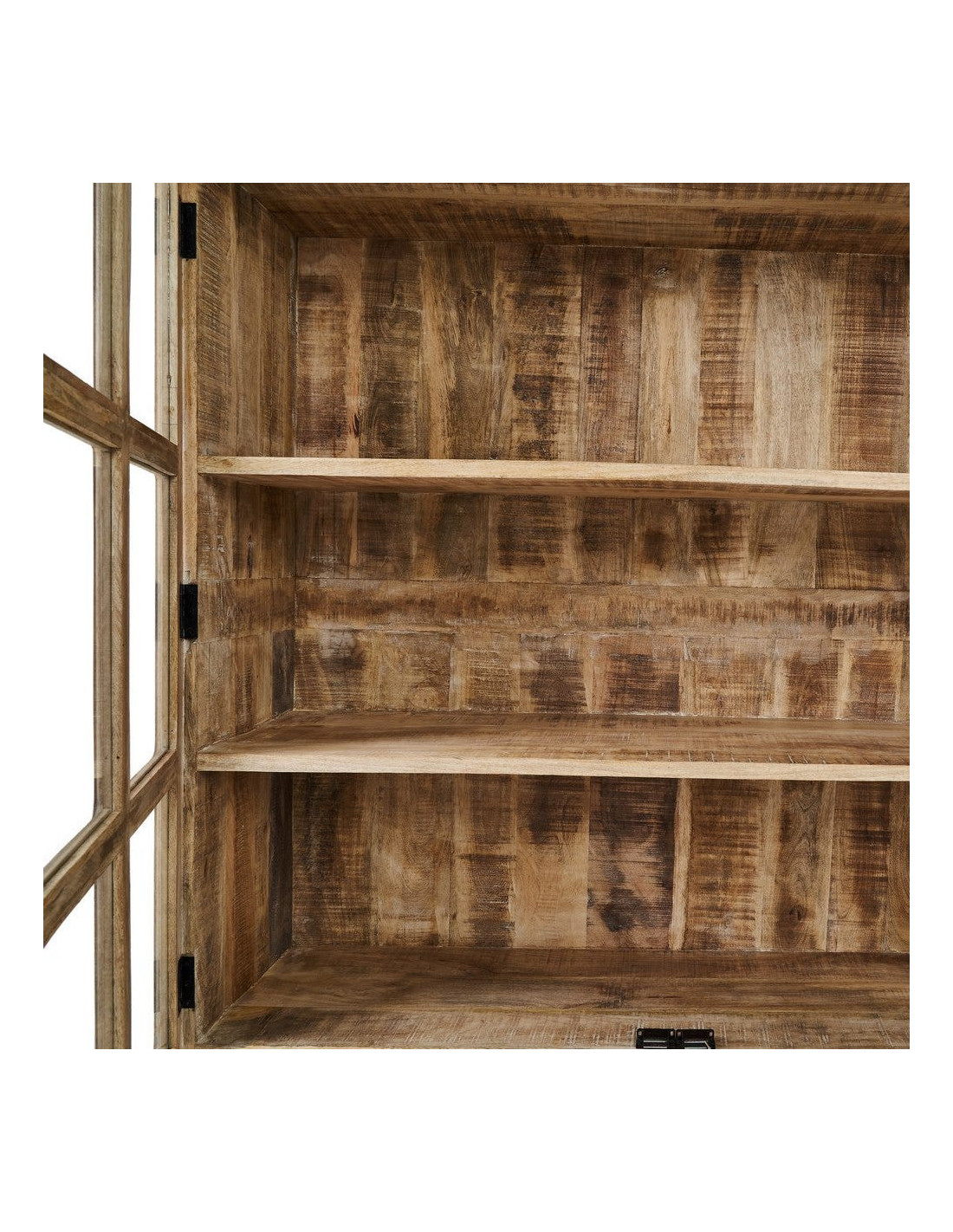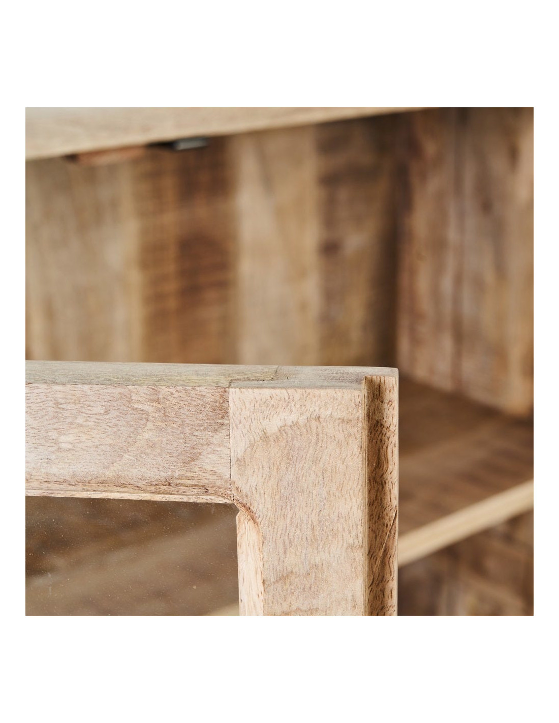 Buffet Vitrine rustique chic Bas 2 portes 3 étagères en Bois de manguier Naturel Verre Transparent Cala - 7