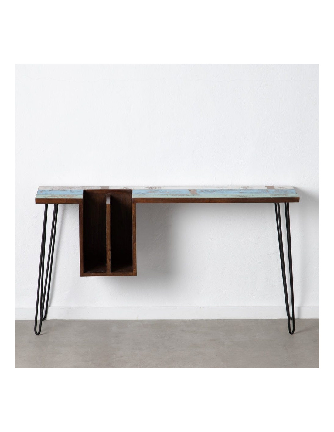 Bureau 2 niches en Bois de mindi Bleu Marron Métal Noir Malak