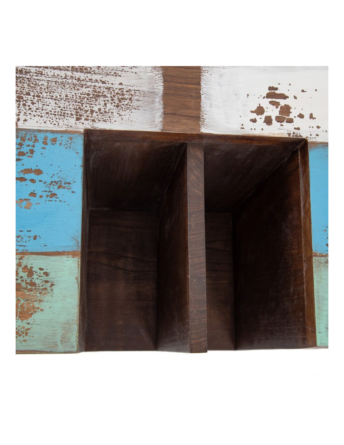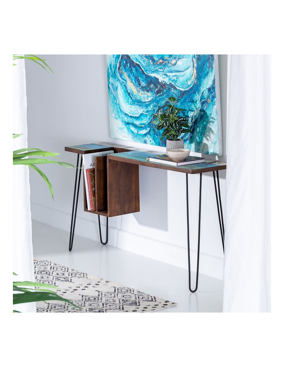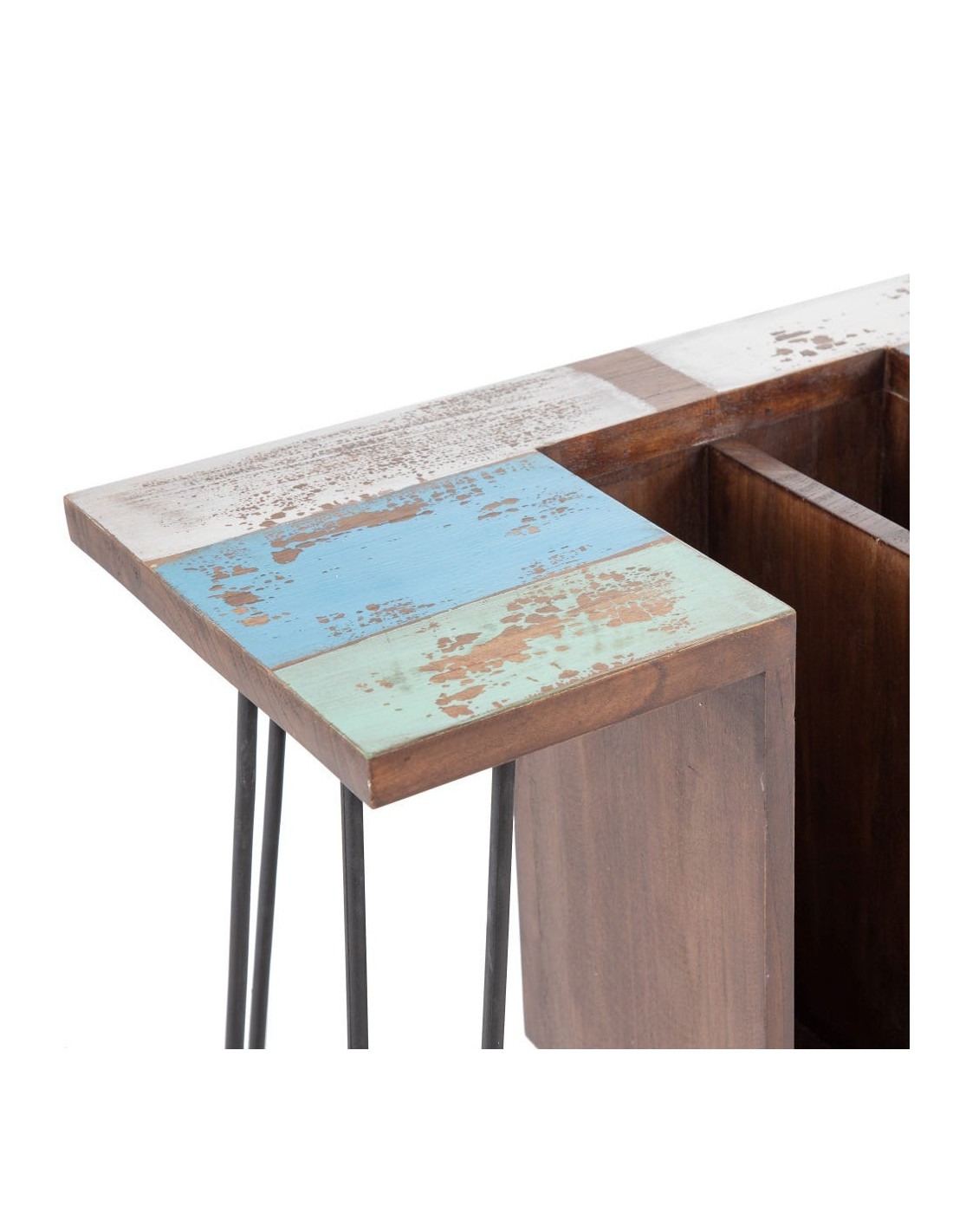 Bureau 2 niches en Bois de mindi Bleu Marron Métal Noir Malak - 5