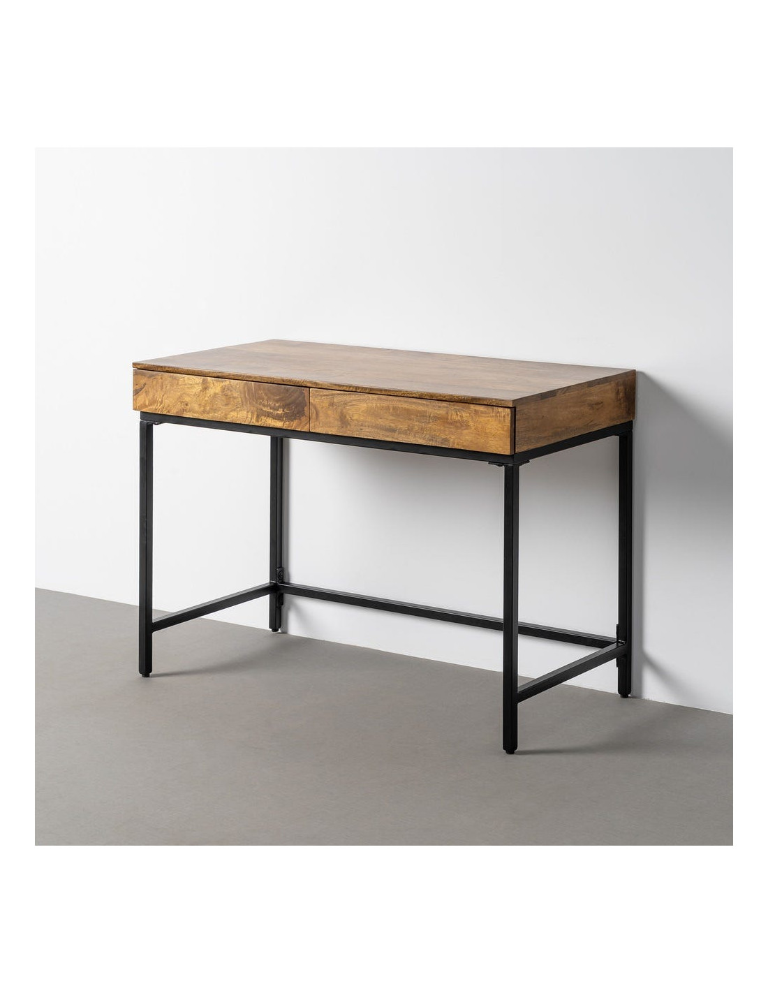 Bureau mural moderne 80 cm en Bois MDF Gris Placage chêne Métal Vert Koi
