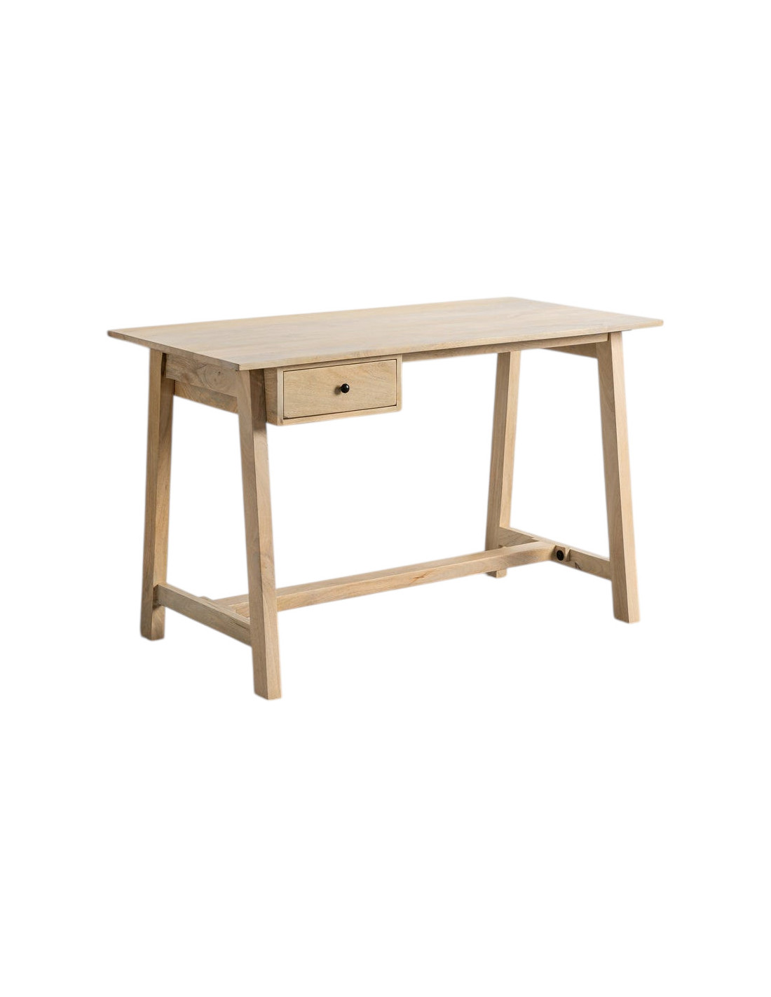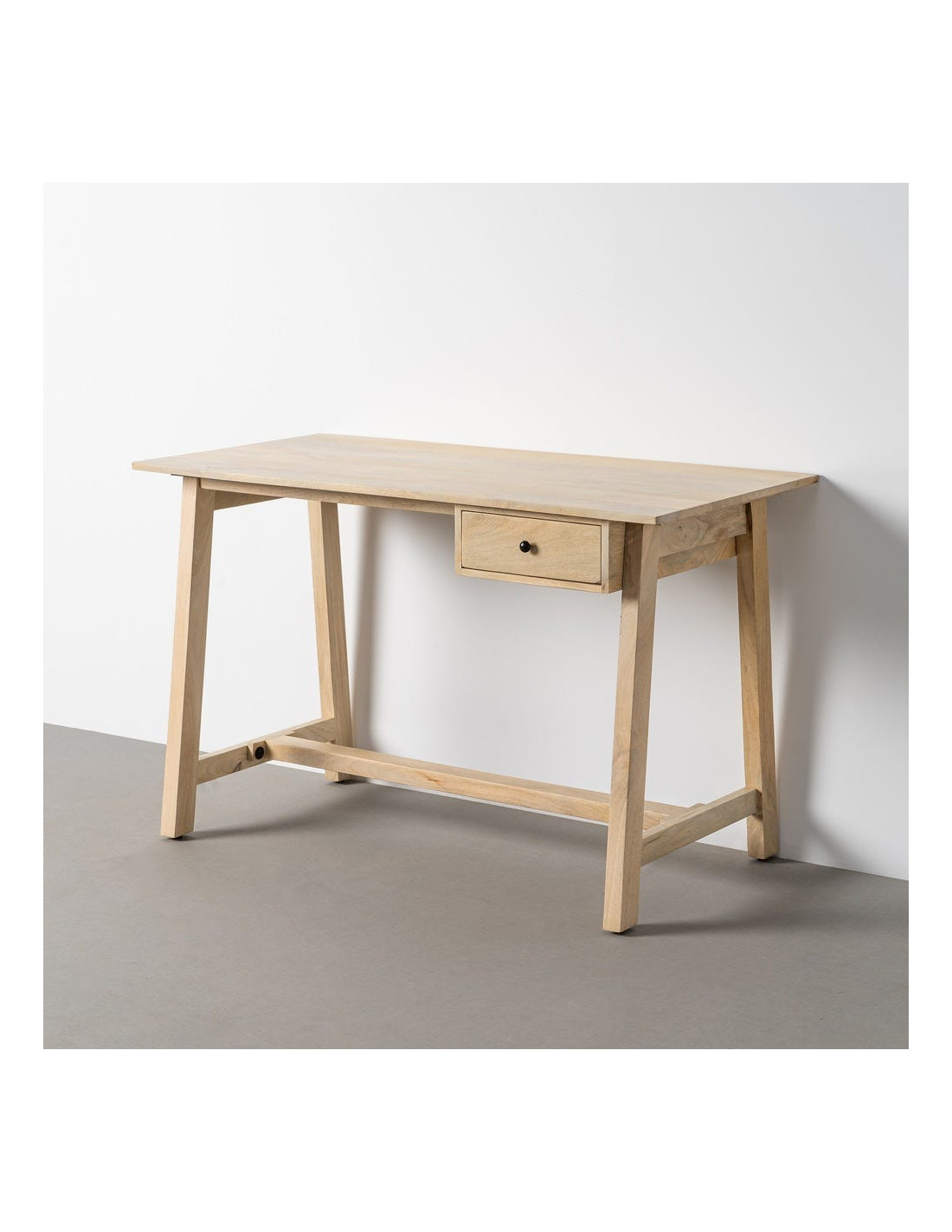 Bureau design scandinave 1 tiroir 120 cm Bois de manguier Naturel Effet teck Teka