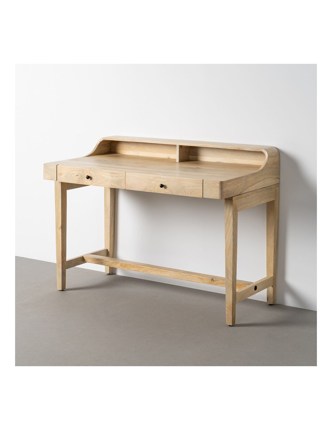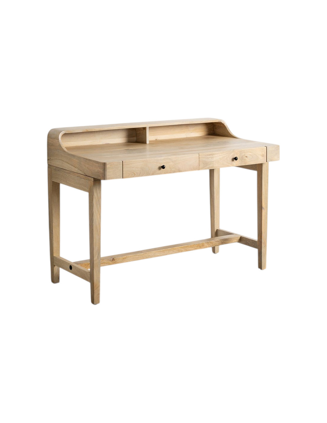 Bureau design scandinave 2 tiroirs 1 niche 1 étagère 122 cm Bois de manguier Naturel Effet teck Teka