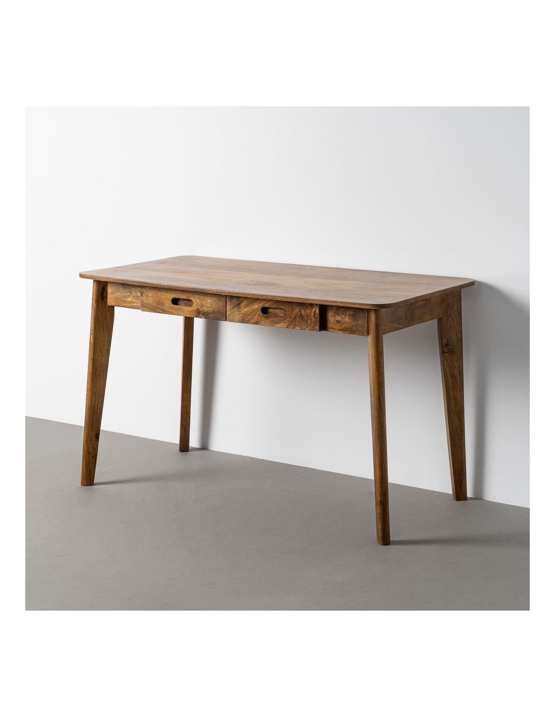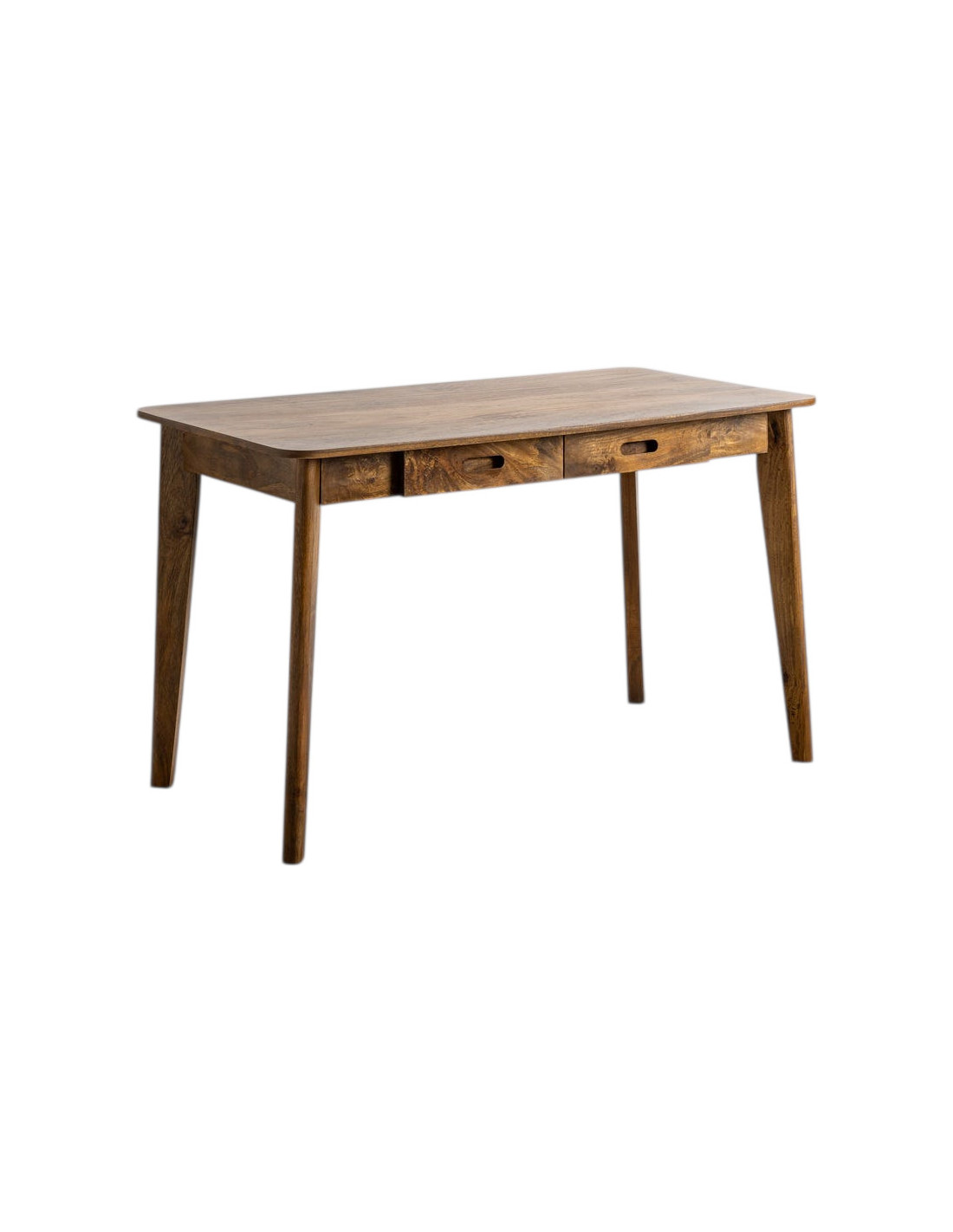 Bureau design scandinave 2 tiroirs 130 cm Bois de manguier Marron miel Métal Effet bois Atelio